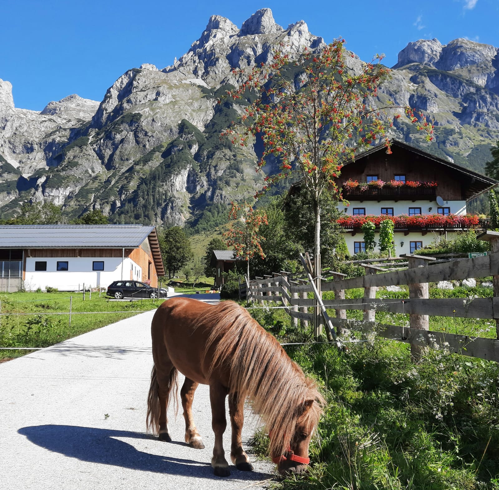 Unser Bio-Hof liegt im Talschluss der Wengerau, eines der schönsten Plätze im Salzburger Land. Hinter unserem Hof ragt imposant das Tennengebirge empor und ist sehr beliebt für Ski-Touren.