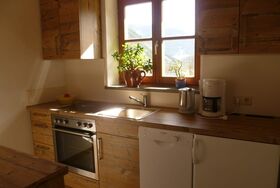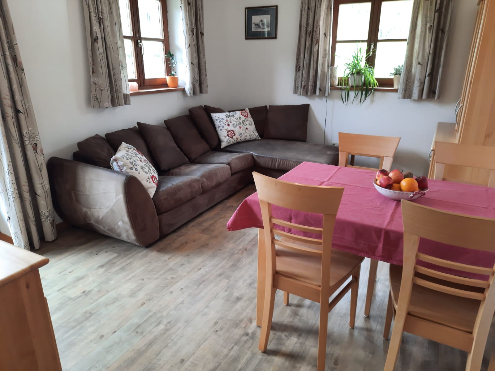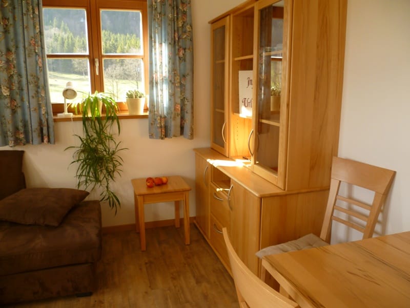 Entdecken Sie die charmante Vogeiwohnung, ein großzügiges 40 m² Apartment, das Sie mit viel Raum und Komfort empfängt. Ideal für bis zu 2 Personen bietet dieses helle und freundliche Nichtraucher-Apartment eine besondere Atmosphäre, die zum Wohlfühlen einlädt. Der lichtdurchflutete Wohnbereich ist mit liebevollen Vollholzmöbeln ausgestattet und lädt mit einer bequemen Wohnlandschaft, einem Esstisch und einem Fernseher zum Verweilen ein. Eine elegante Vollholzvitrine hält Essgeschirr und Gläser für Sie bereit. Die separate, voll ausgestattete Küche lässt keine Wünsche offen und bietet mit Geschirrspüler, E-Herd mit Backofen, Wasserkocher und Kaffeemaschine alles für kulinarische Genüsse. Für erholsamen Schlaf sorgt ein gemütliches Doppelzimmer mit einem komfortablen Doppelbett. Das moderne Badezimmer mit Dusche und WC wird Sie begeistern: Es erwartet Sie eine ebenerdige Dusche, edler Naturstein, Fußbodenheizung und ein Handtuchtrockner für kuschelwarme Handtücher. Der Süd- und westseitige Balkon ist Ihr persönlicher Logenplatz. Von hier aus genießen Sie einen atemberaubenden Blick auf die majestätische Berglandschaft und den idyllischen Garten – der perfekte Ort für genussvolle Morgenstunden oder entspannte Abende. Erleben Sie unvergessliche Tage inmitten der Natur und genießen Sie den Charme eines echten Almsommers in vollen Zügen.