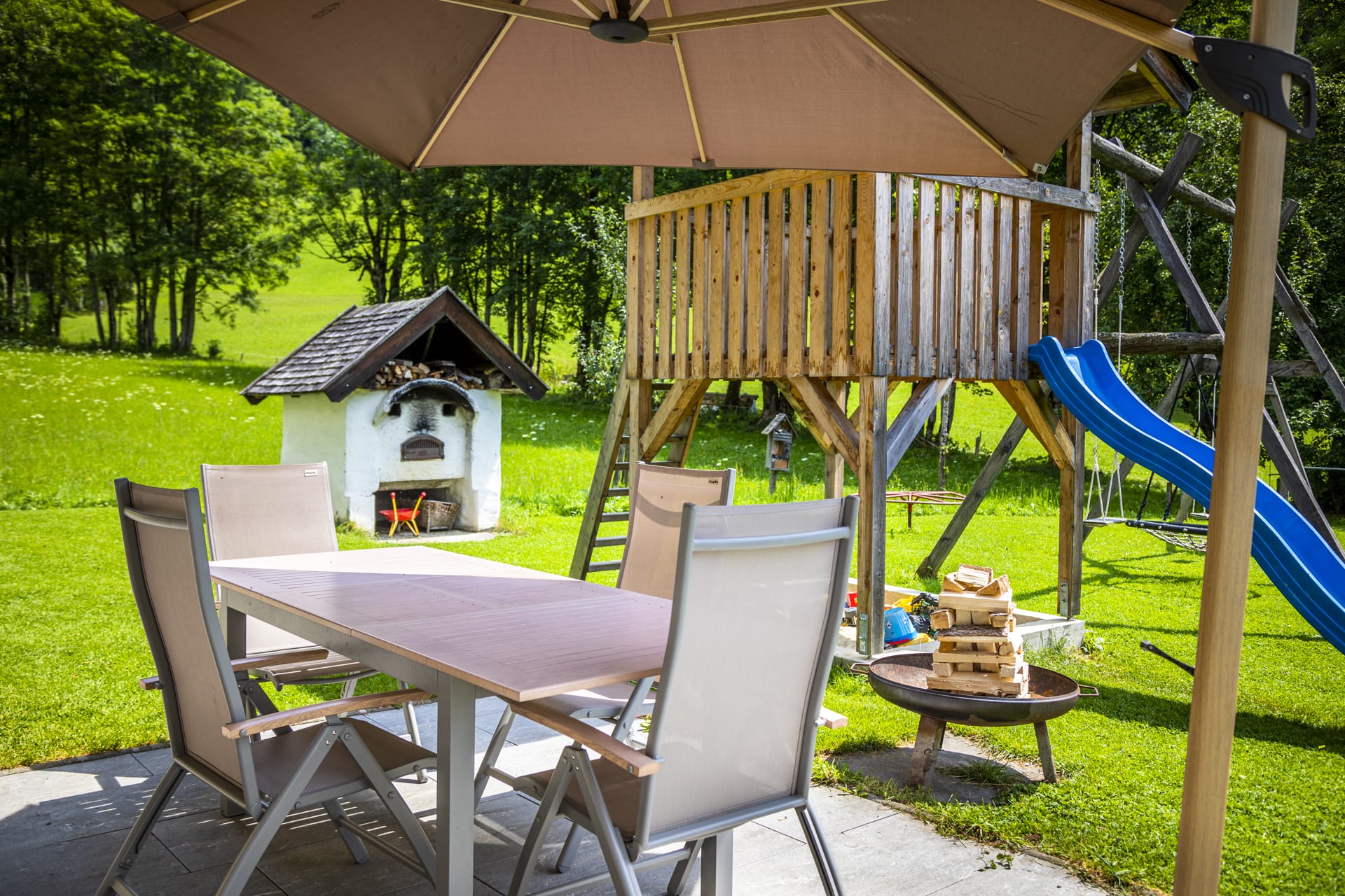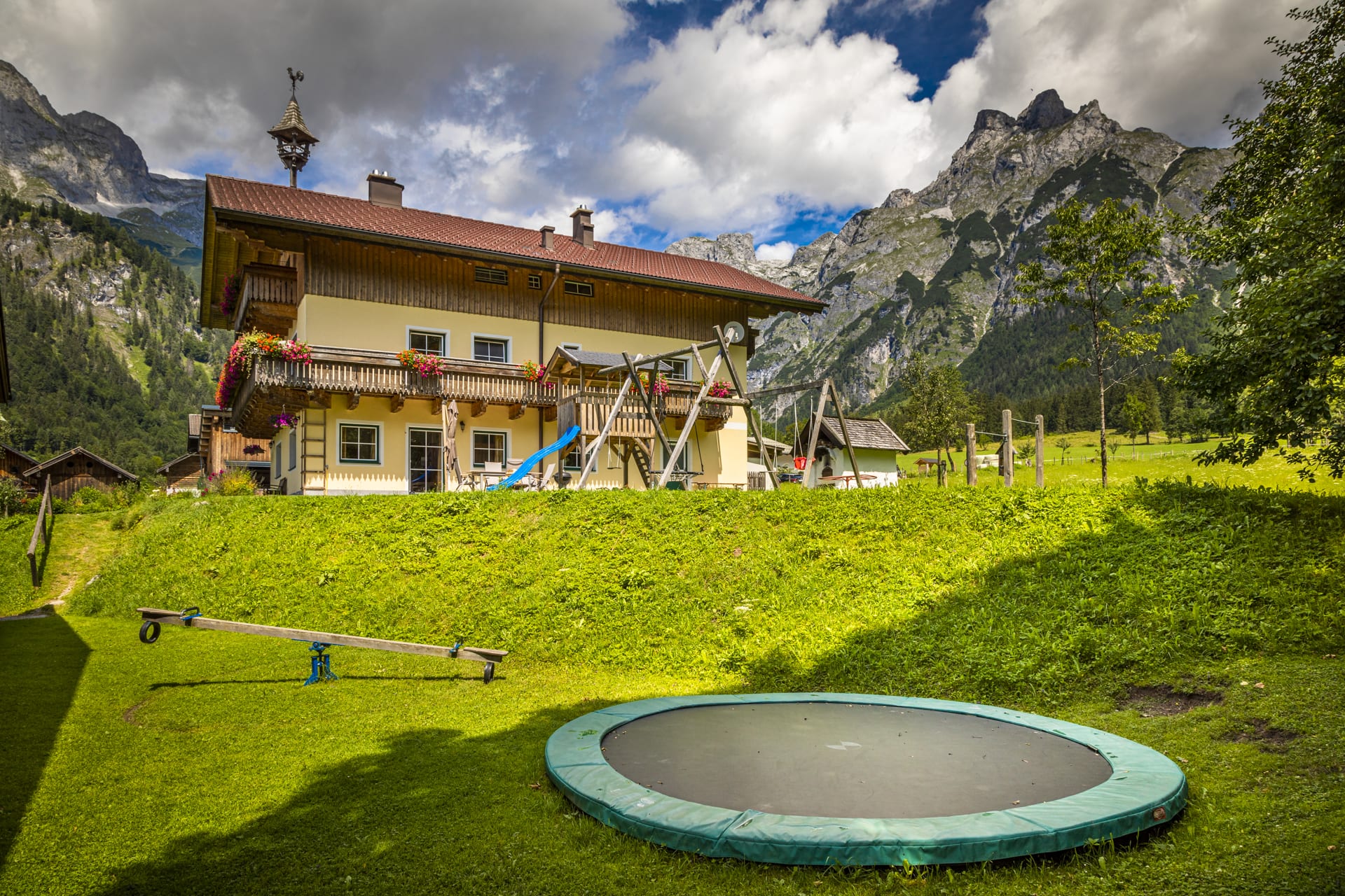 🏡 Großer Spielplatz – Trampolin, Rutsche, Schaukel & Sandkasten sorgen für Spaß und Action.