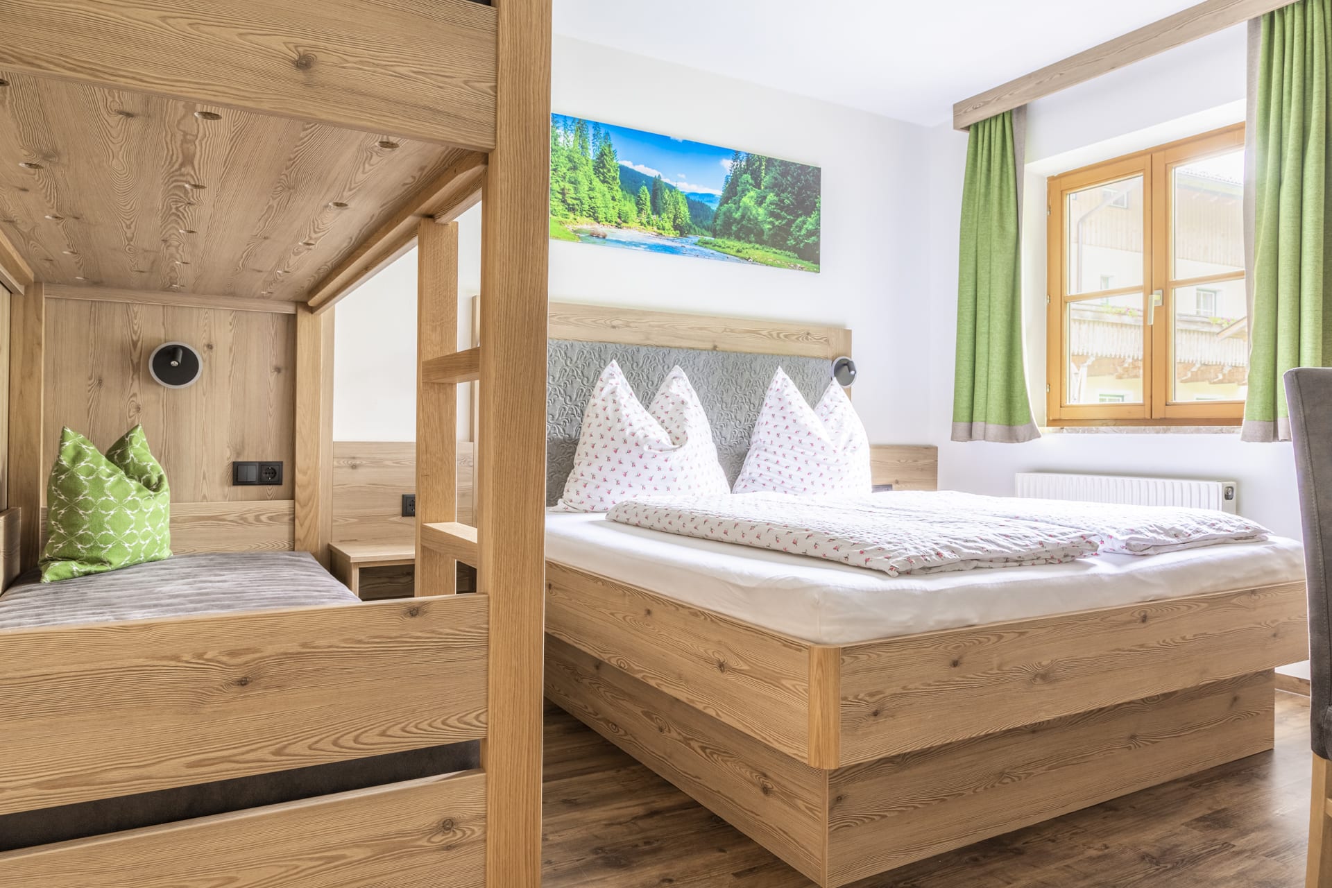 Die neu renovierte Ferienwohnung Bergblick verfügt über eine sehr gut ausgestattete Küche mit gemütlichem Essbereich. Die Wohnung ist sehr wohnlich eingerichtet und lädt zum gemütlichen Verweilen ein. Benötigen Sie nur ein Schlafzimmer (Doppelbett + Stockbett), dann ist die Wohnung Bergblick genau richtig für Sie.