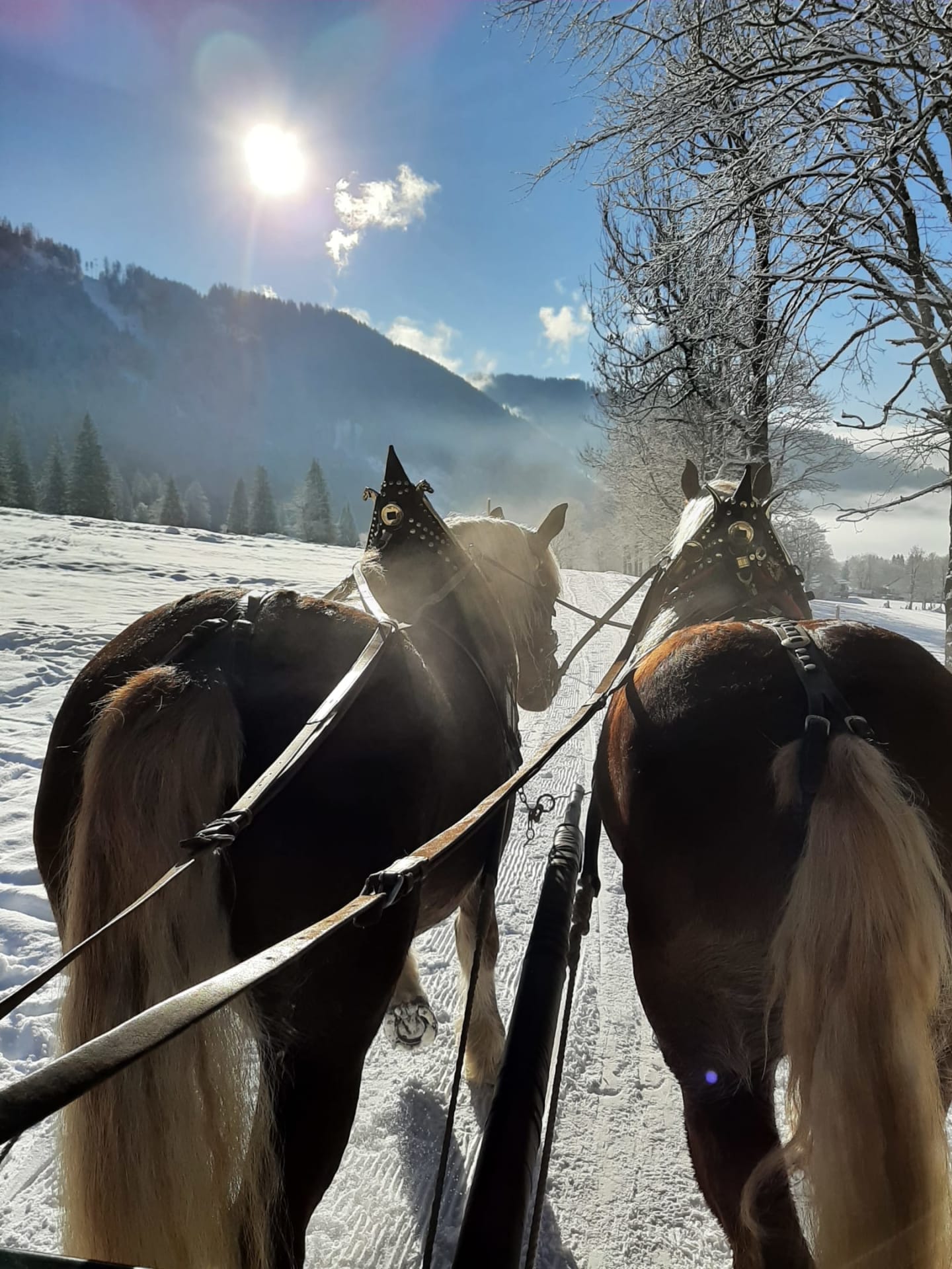🐴 Reiten & Pferdeschlittenfahrten – Genieße eine Kutschenfahrt im Sommer oder romantische Schlittenfahrten im Winter.