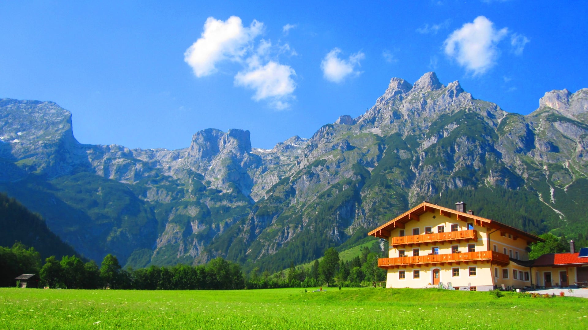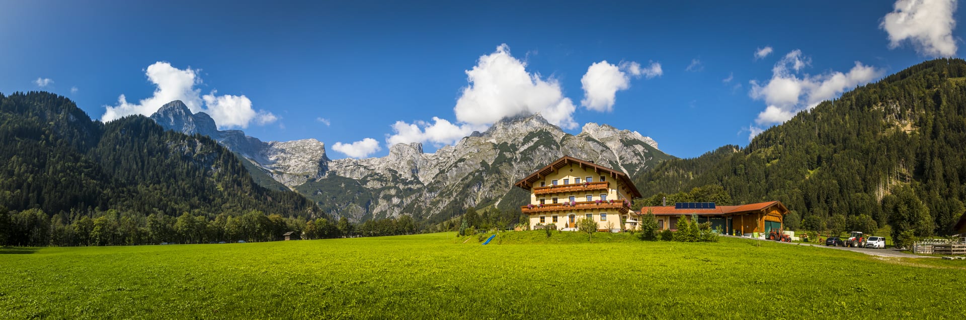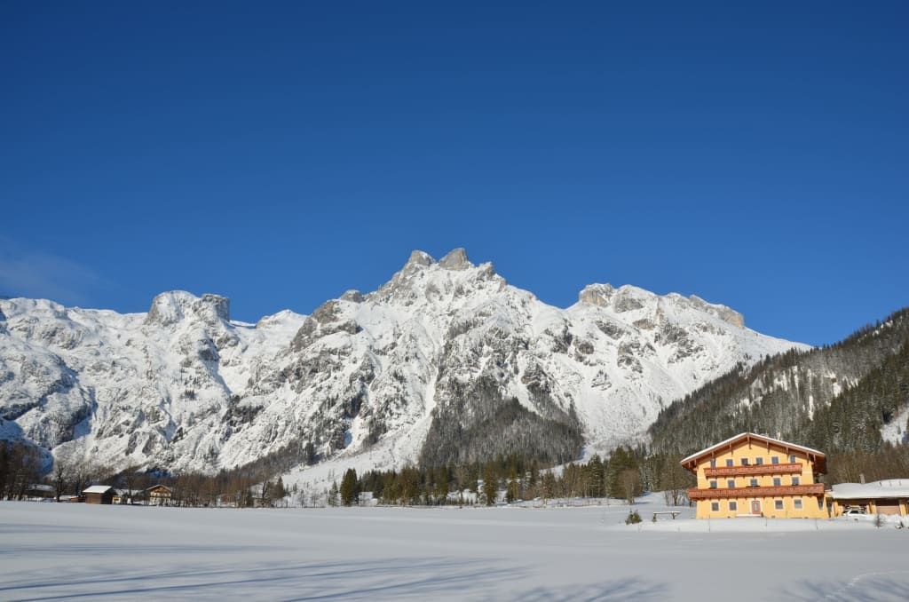 Unser Appartement-Bauernhaus liegt in sonniger, ruhiger Einzellage im Landschaftsschutzgebiet Tennengebirge, vor der imposanten Bergkulisse des Tennengebirges.
