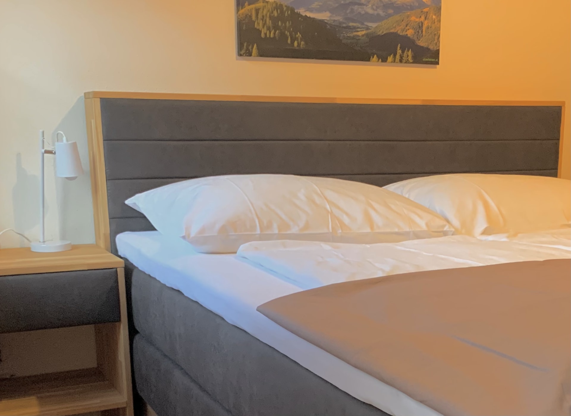 • Schlafzimmer mit neuem Boxspringbett für 2 P