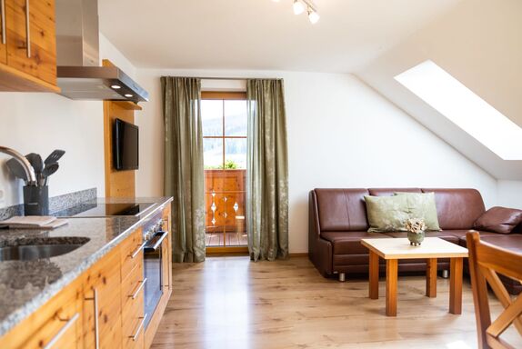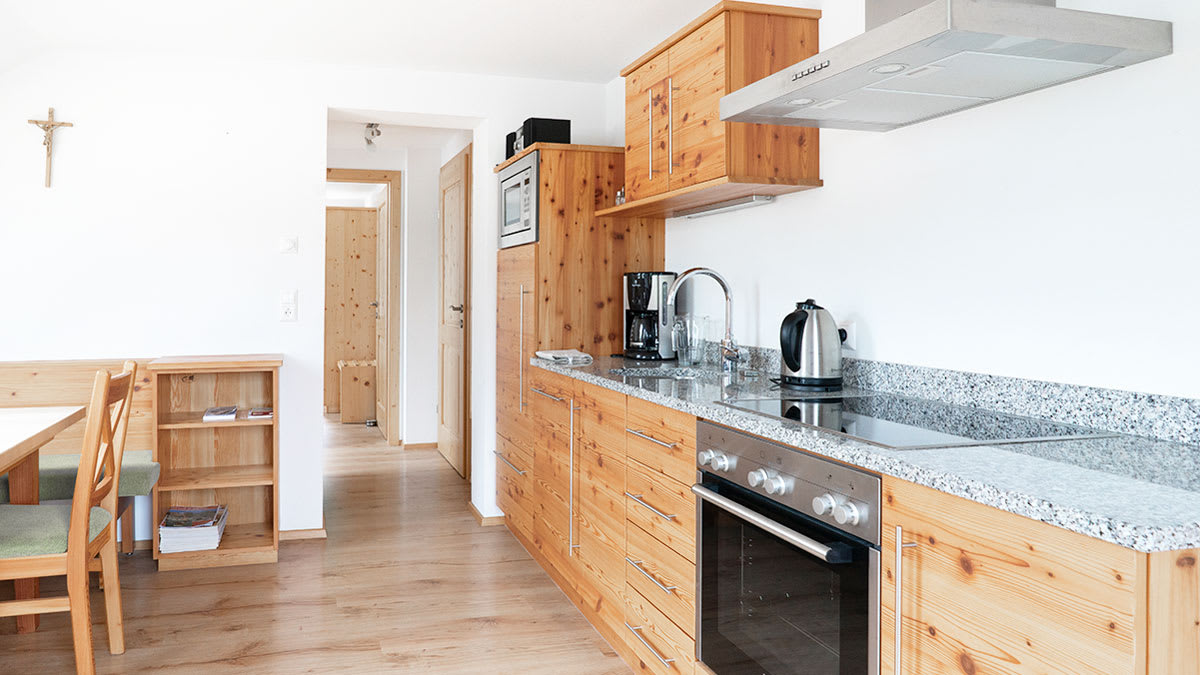 Da wir sehr viel Wert auf Wohnqualität legen sind alle unsere Ferienwohnungen ausschließlich mit Massivholzmöbeln (in Lärche, Fichte und Zirbe) ausgestattet. Jede Wohnung verfügt über einen eigenen Balkon und die Wohnküchen ist natürlich mit allem Komfort ausgestattet (Geschirrspüler, Dunstabzug, E-Herd, Mikrowelle, Kühlschrank, Kaffemaschine & Wasserkocher, Flat TV, ausziehbare Ledercouch).
