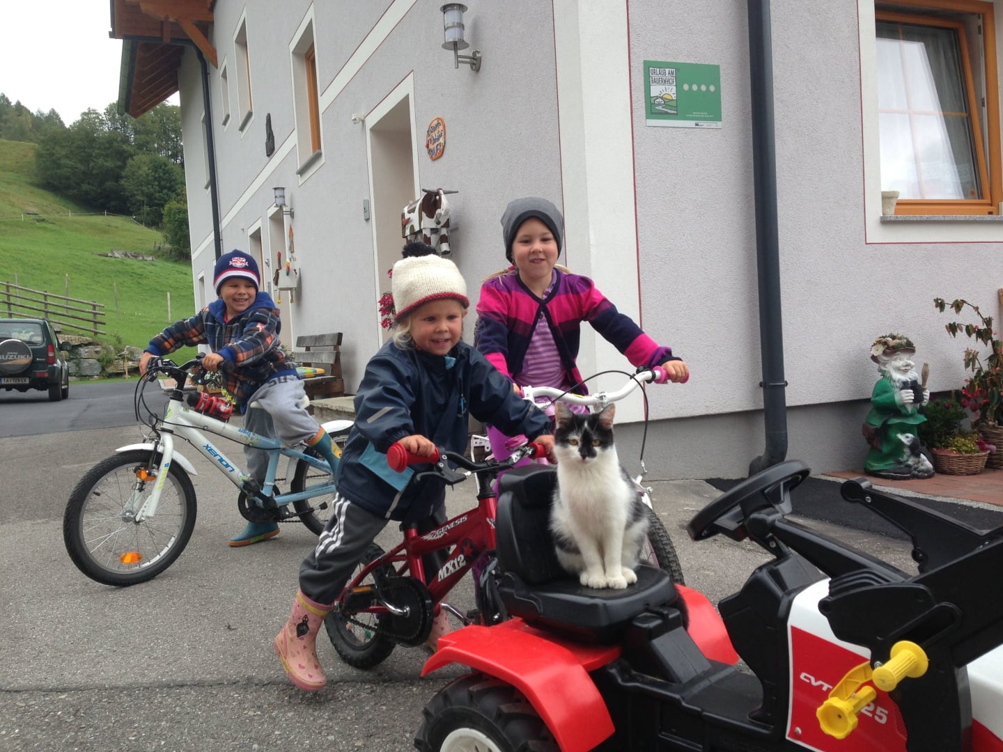 Für Kinder gibt es bei uns viel zu sehen und entdecken. In unserem Laufstall ist sowieso immer etwas los - vielleicht erblickt sogar ein Kälbchen während Ihres Urlaubs das Licht der Welt – dies ist dann nicht nur für Kinder ein schönes Erlebnis. Außerdem gibt es bei uns am Hof noch Schafe, Katzen und Hasen.