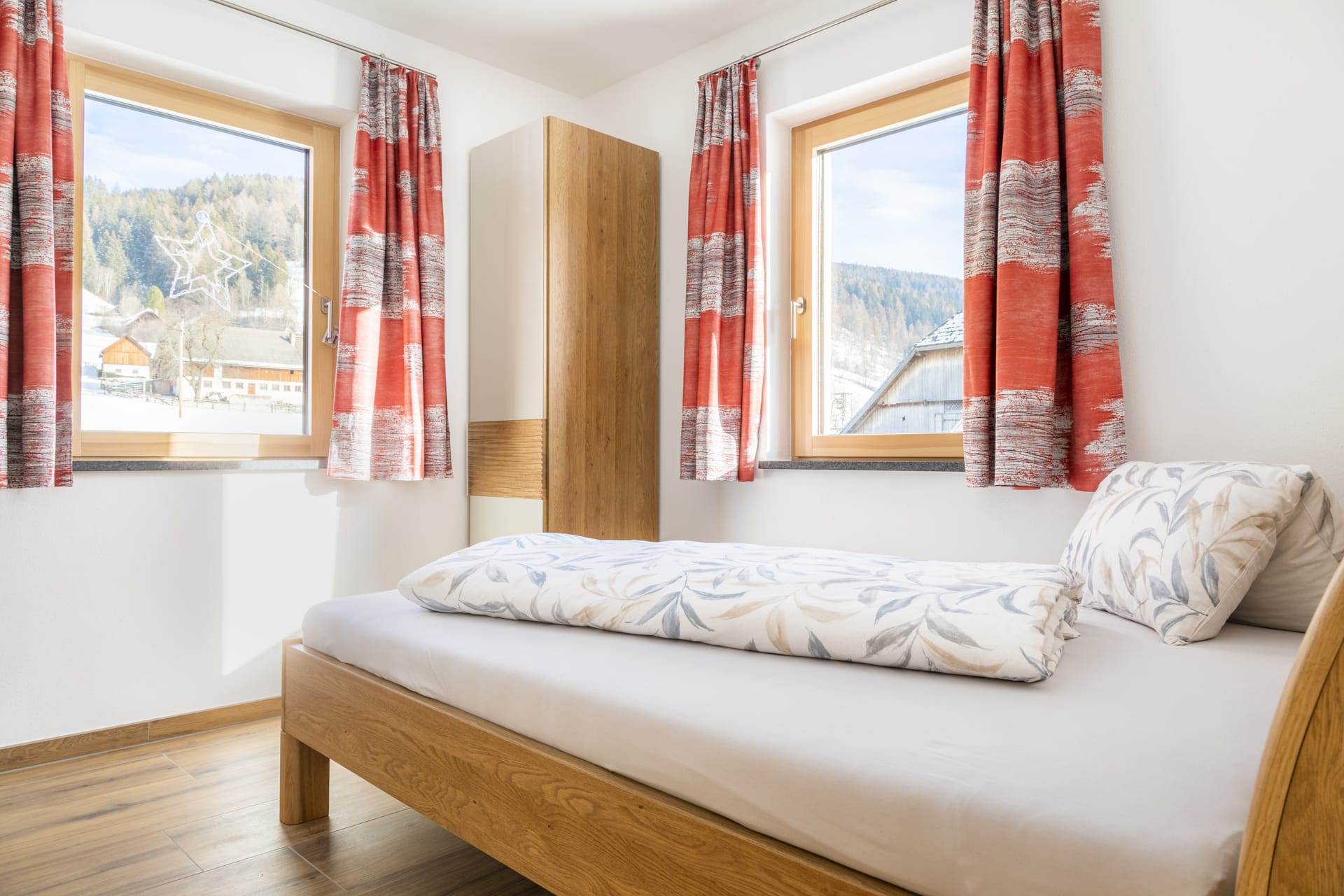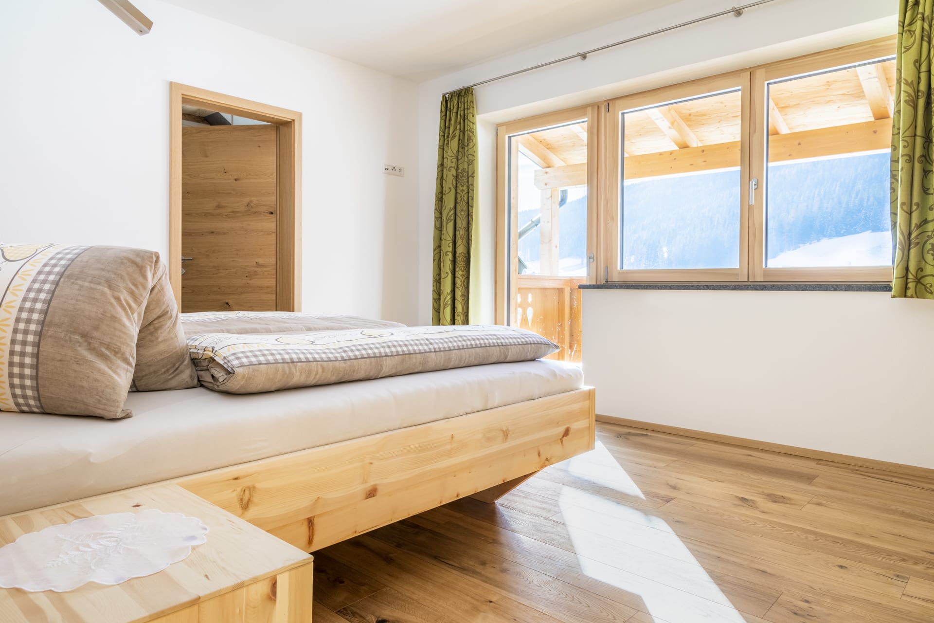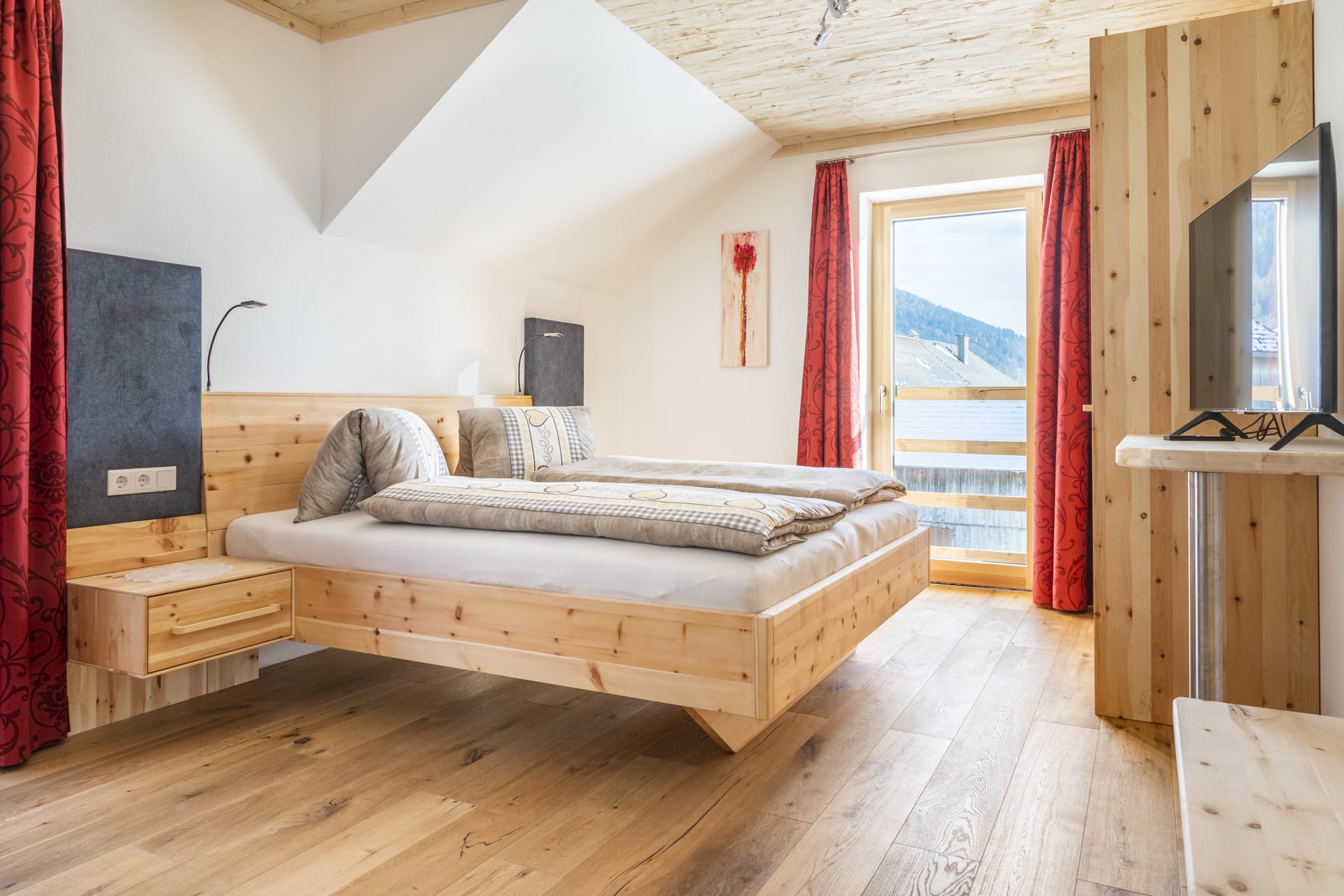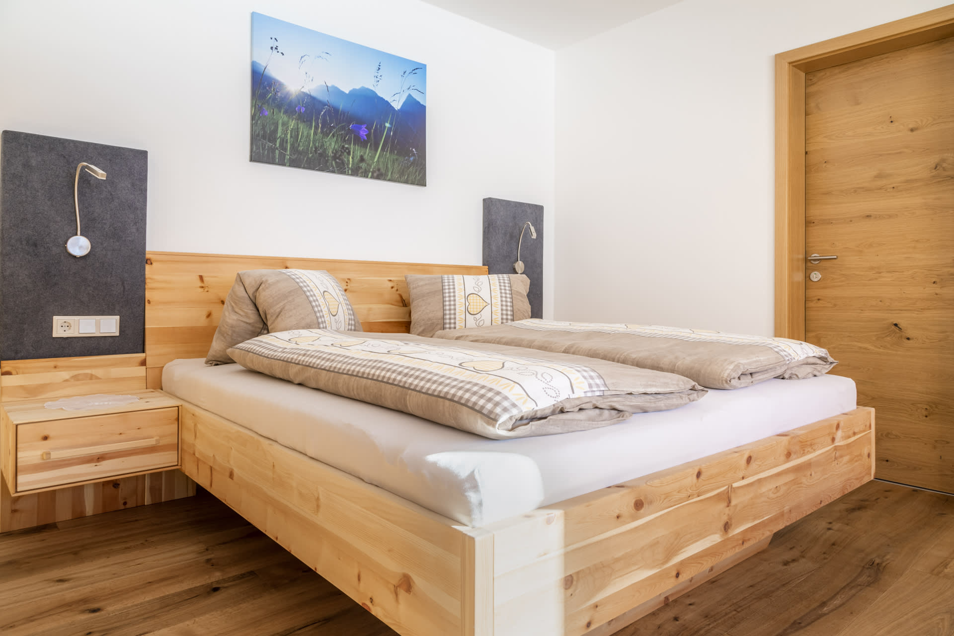 • zwei getrennte Zirbenschlafzimmer mit jeweils einem Doppelbett und Bad