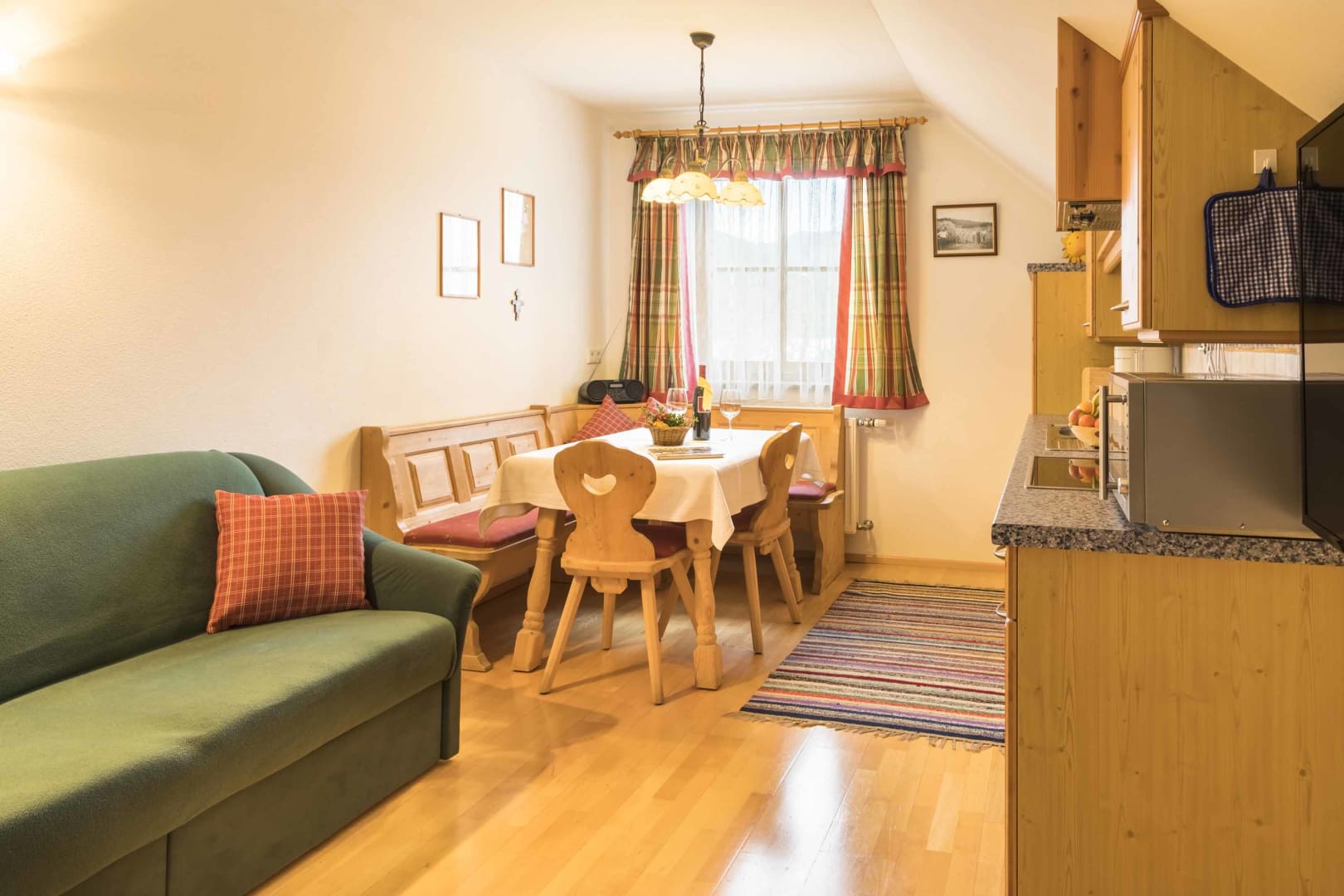 Liebevoll eingerichtetes Appartement für 2-5 Personen mit Vollholzmöbeln und Parkettboden, Doppelcouch im Wohnraum, Hochstuhl und Reisegitterbett.Bad mit D/WC getrennt, Wohnküche ausgestattet mit allem Komfort vom Wasserkocher, Kaffeemaschine, E-Herd mit Backrohr, Geschirrspüler bis zum Kabelfernsehen, Radio, Bettwäsche und Handtücher , Internetanschluss möglich, Teekräuter zur freien Entnahme. Bestens geignet für Allergiker, Familien mit Kindern,Senioren, Geschäftsleute...