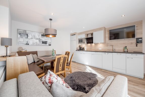 • Vollausgestattete Wohnküche (Spülmaschine, Mikrowelle, Kühlschrank, Pad -Kaffeemaschine, Induktionsherd)IPTV.
