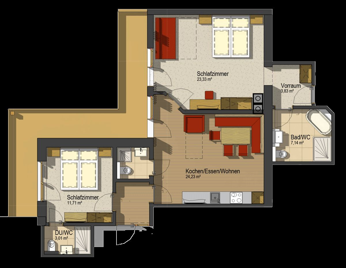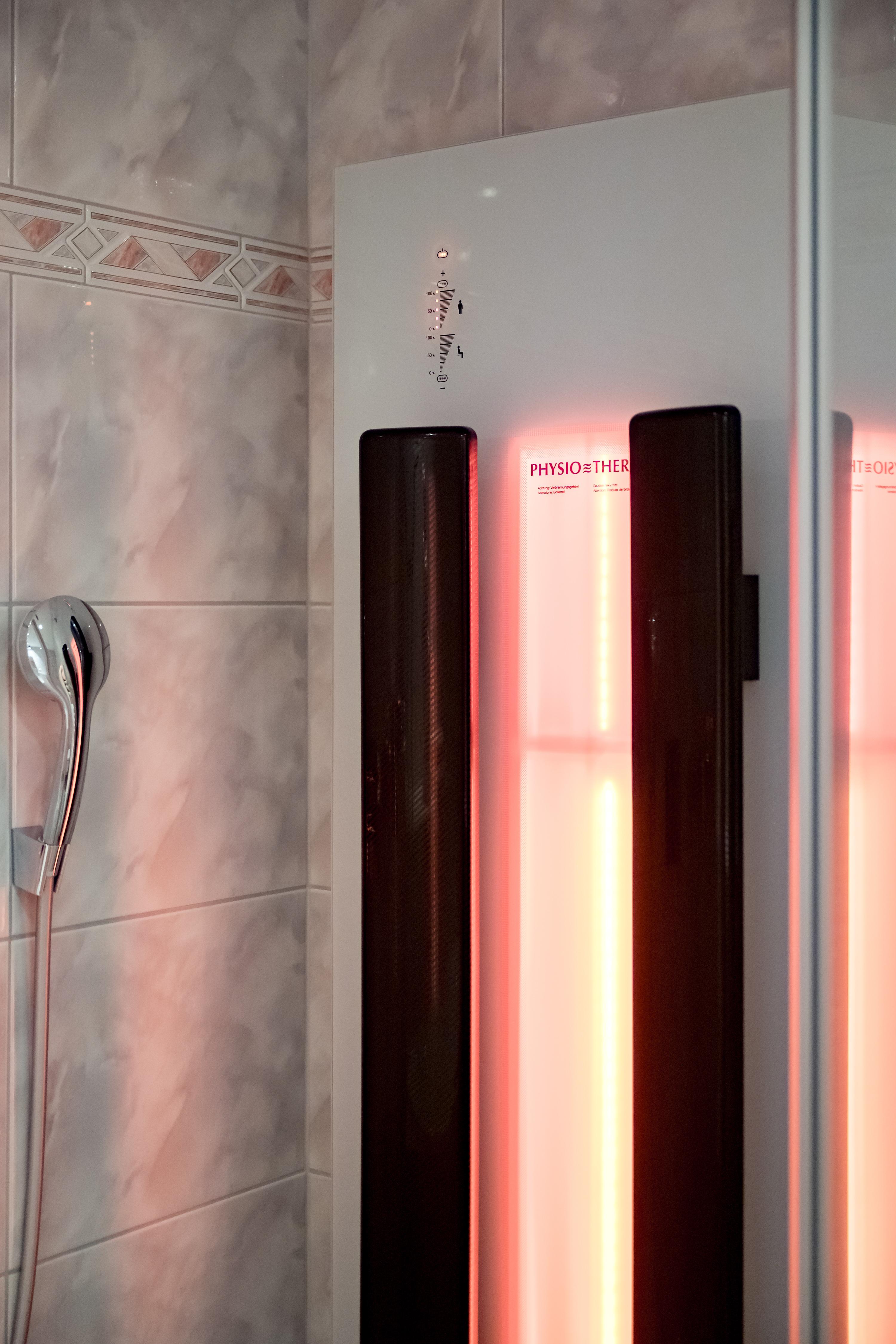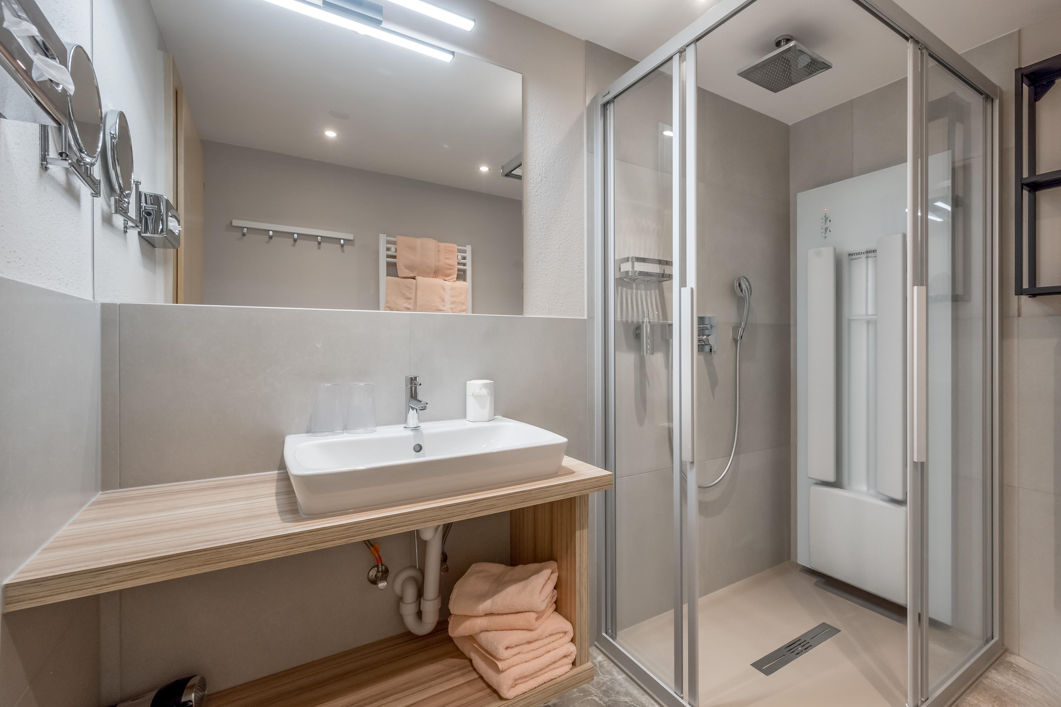 • 3 Badezimmer mit Dusche/WC, Infrarotelement, Fön (ein Bad mit Badewanne)