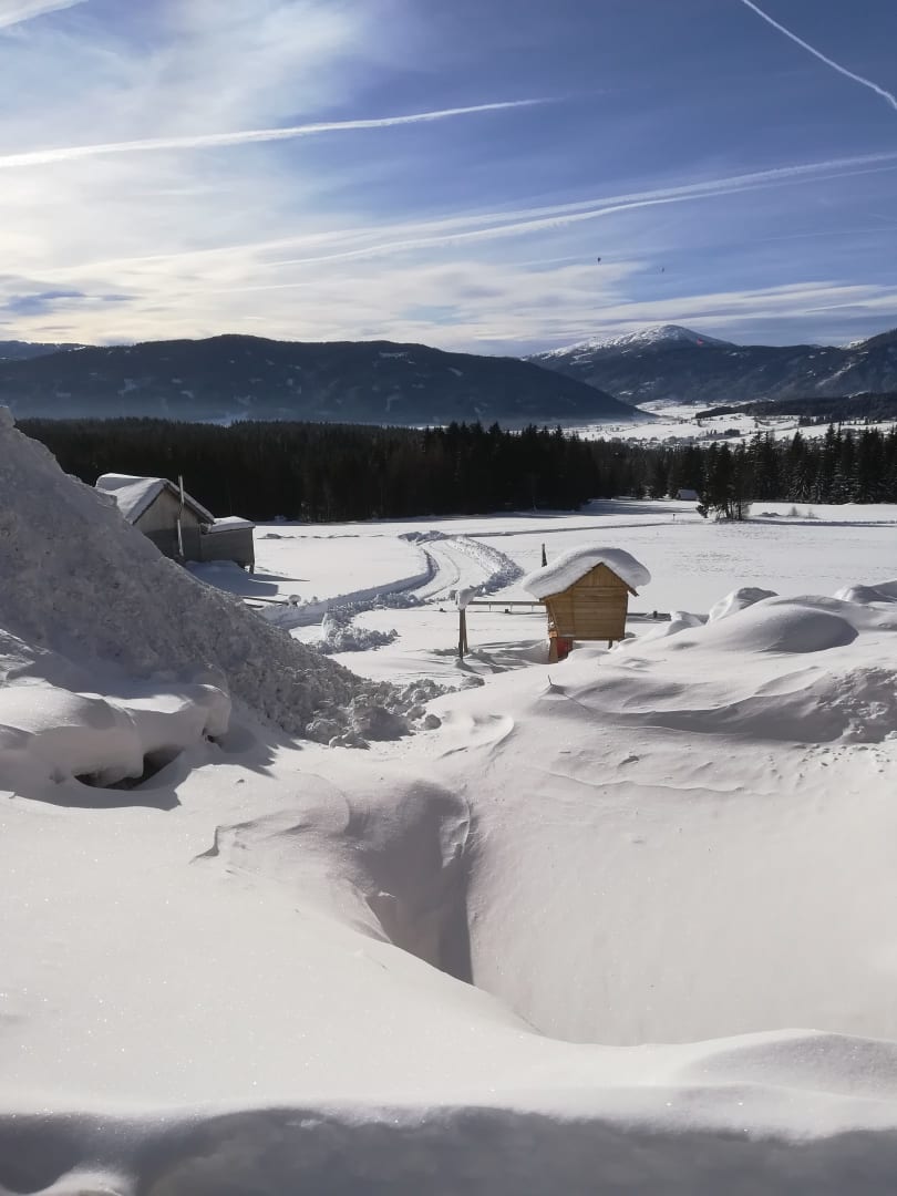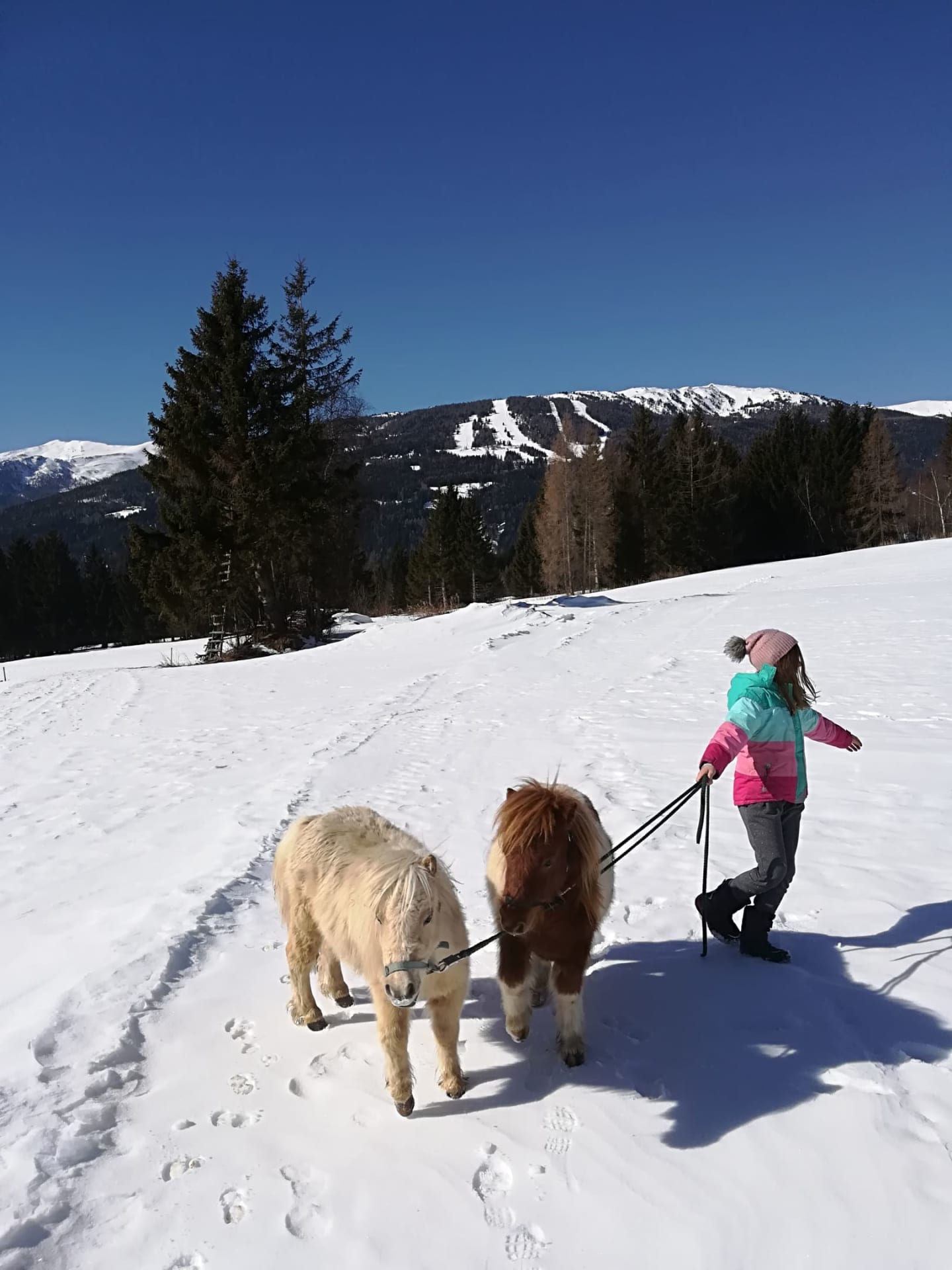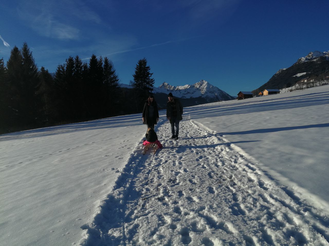 Für die Kleinen schiebt Bauer Hans schonmal eine eigene Schlittenbahn mit dem Traktor auf der Wiese direkt vor unserem Ferienhaus aus. Im eigenen Garten einen Schneemann bauen, im Schnee toben, Burgen kreieren, was gibt es schöneres für ein Kind!