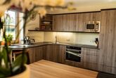 Die Wohnung ist ausgestattet mit einem Schlafzimmer mit Doppelbett ohne Fußteil, eine Ausziehcouch im Wohnbereich für 2 Personen, ein Badezimmer mit ebenerdiger Dusche und ein extra WC. Bettwäsche und Handtücher werden bereitgestellt. In der Küche sind Geschirr, Gläser und Kochutensilien vorhanden. Es gibt eine Kaffeemaschine, Wasserkocher, Toaster und Eierkocher. Im Kühlschrank ist ein Gefrierfach integriert, ein Geschirrspüler ist vorhanden und ebenso eine gemütliche Essecke. Sie haben direkten Zugang zum Balkon mit Sitzmöbeln. Es gibt einen Flachbild-TV mit Kabelkanälen und kostenfreies WLAN.