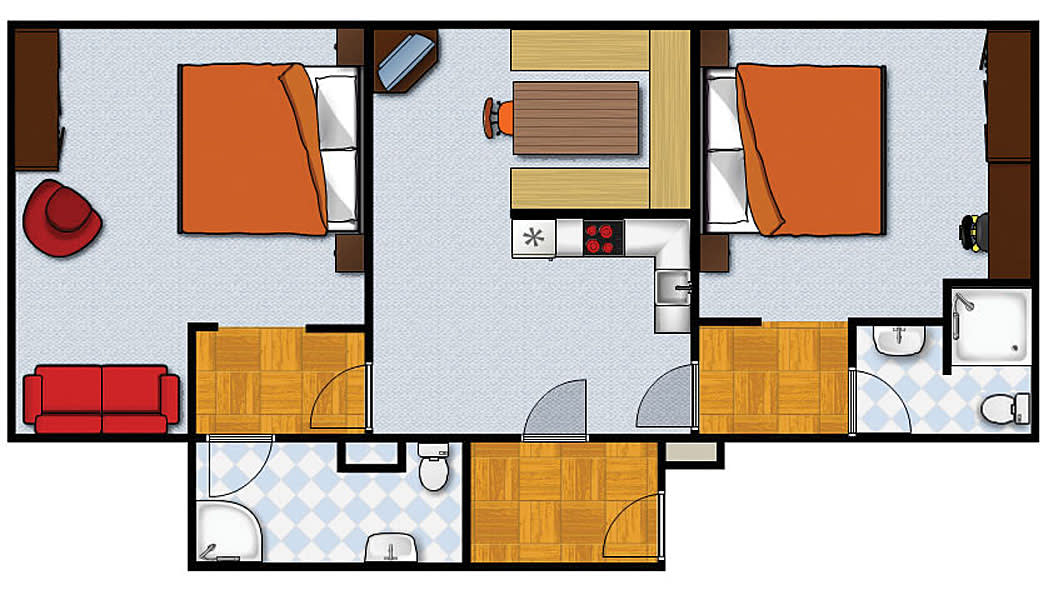 Das Appartement I bietet Platz für 2 bis 6 Personen und ist ausgestattet mit SAT-TV, Vorraum, Küche mit Geschirrspüler, Esszimmer. Jedes Schlafzimmer (2 getrennte Schlafzimmer) ist mit eigenem Bad & WC ausgestattet.