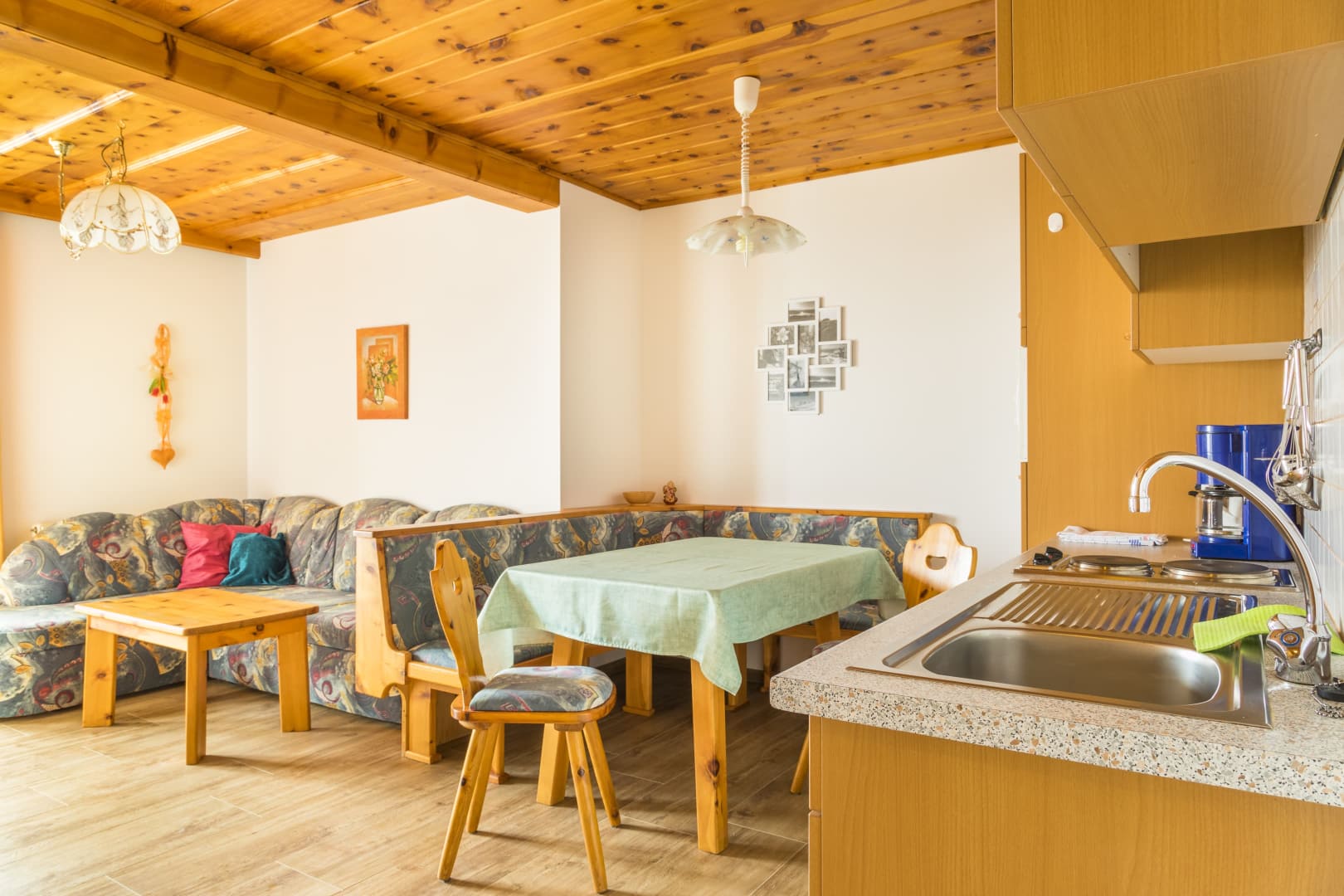 Wohnzimmer mit Küche und Ausziehcouch