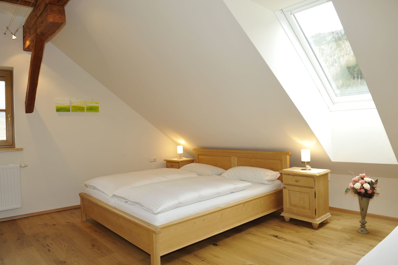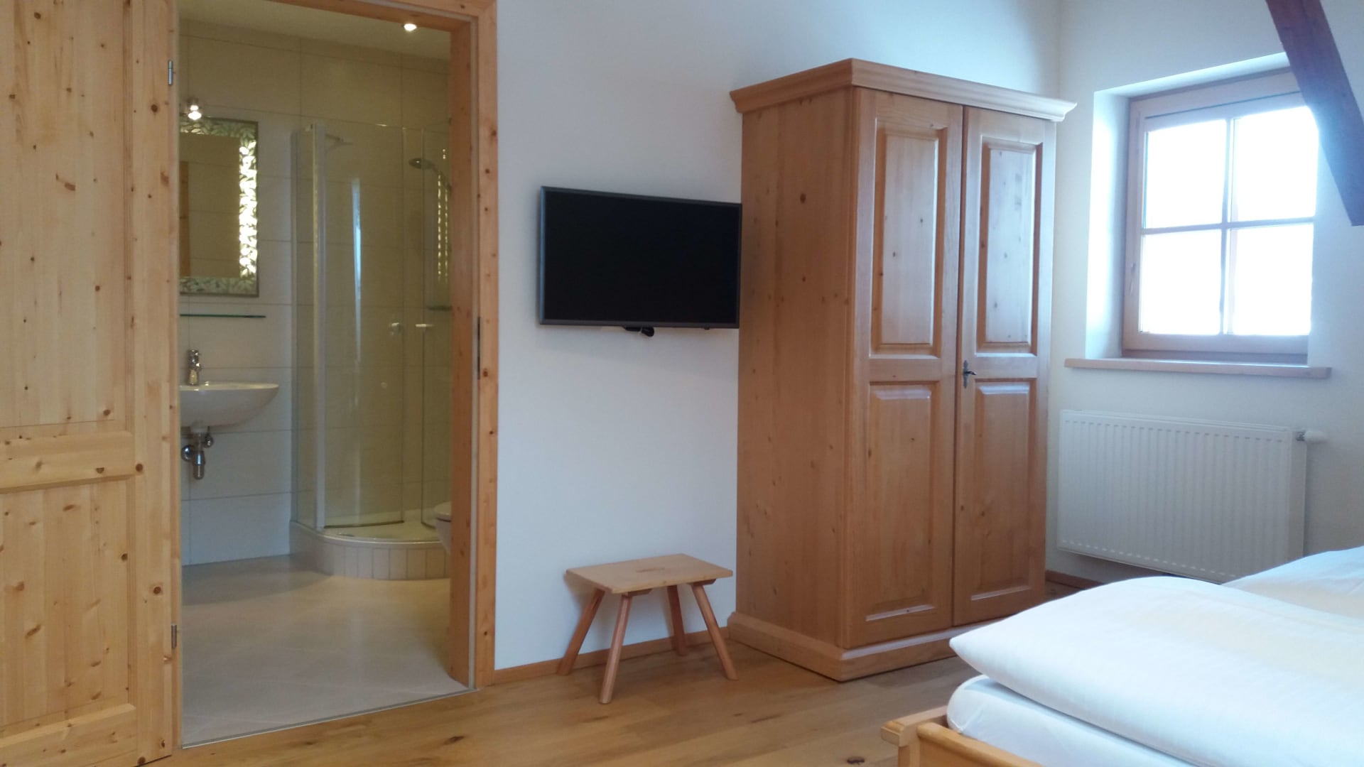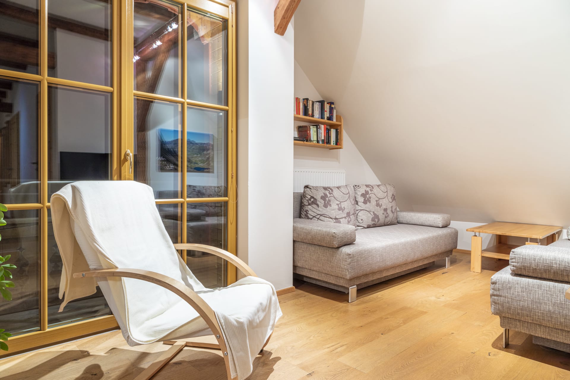 Wunderschöne, sehr geräumige, sonnige Wohnung mit ca. 120 m2. Küche mit kompletter Ausstattung (Kühlschrank mit Gefrierfach, 4-Platten-E-Herd mit Backofen, Mikrowelle, Geschirrspüler, Toaster, Kaffeemaschine) gemütliches Wohnzimmer mit schöner Aussicht auf den Garten und die Landschaft, 3 Schlafzimmer, 2 Dusche/WC, Vollholzmöbel, hell und freundlich, allergikergeeignet, 2 Balkone Süd und West.