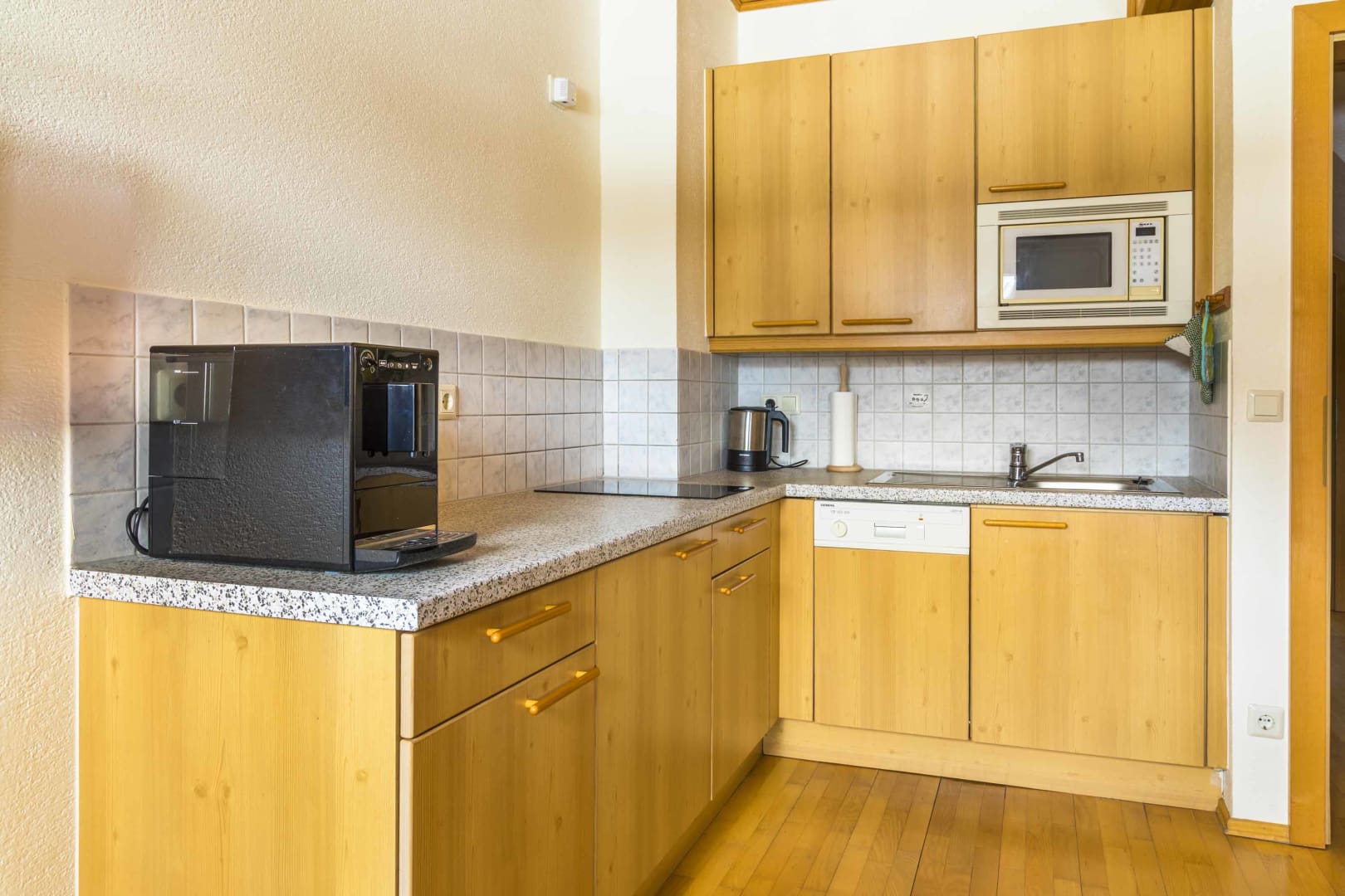 1 Doppelzimmer & 1 Zimmer (wo 2 Betten hintereinander sind), Vorraum, Dusche, WC seperat, Balkon, Küche, Geschirrspüler,  Mikrowelle, Geschirr vorhanden, Handtücher vorhanden, Toaster, Kaffeemaschine, Wasserkocher, SAT-TV, gratis W-LAN!
