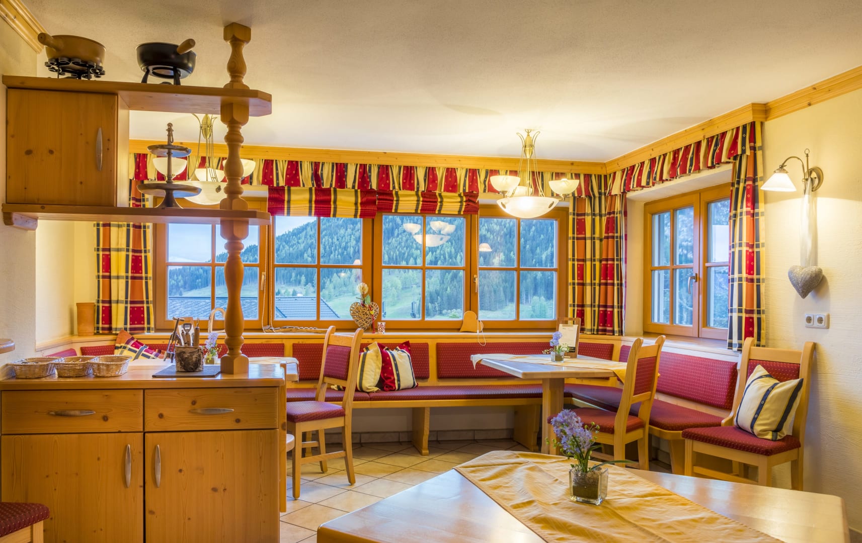 Bei uns genießen Sie eine wunderschöne Aussicht, wie zum Beispiel auf die Hausberge Karnereck und Gurpitscheck, die schönsten Sonnenuntergänge inklusive.