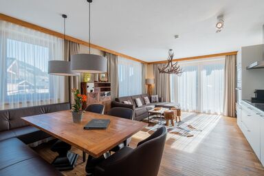 • Helle und großzügige Räume mit Panoramafenstern, die den Blick auf die umliegende Bergwelt freigeben.
