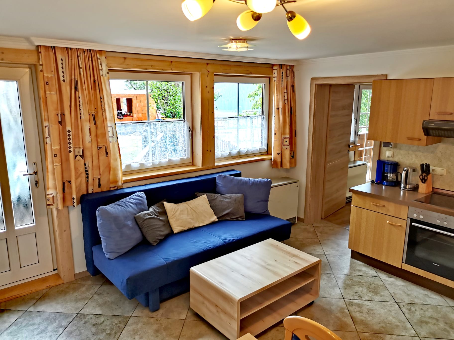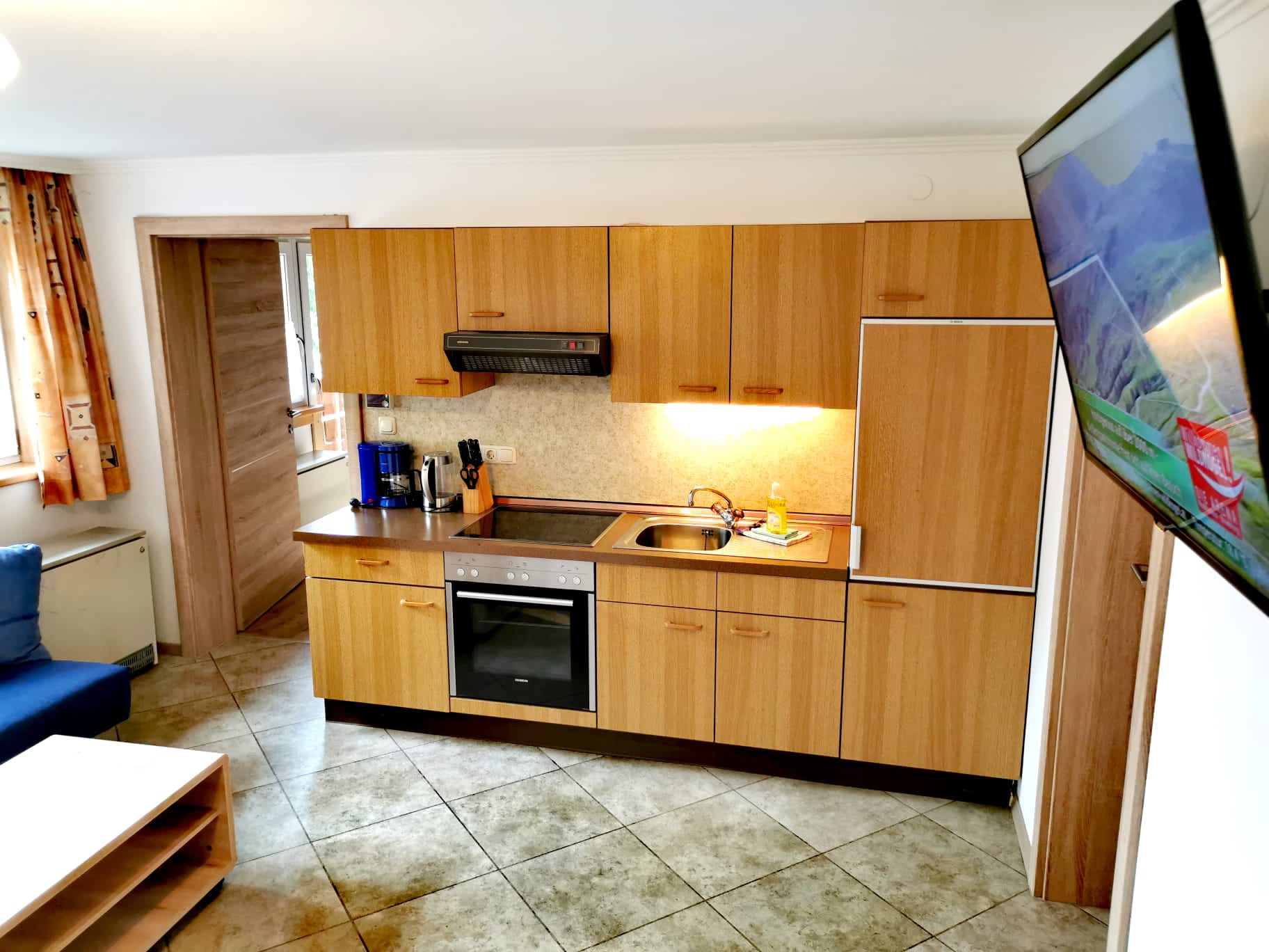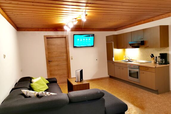 • Wohnliche Ausstattung: Eine großzügige vollausgestattete Wohnküche mit Essbereich und Ausziehcouch lädt zum Verweilen ein.