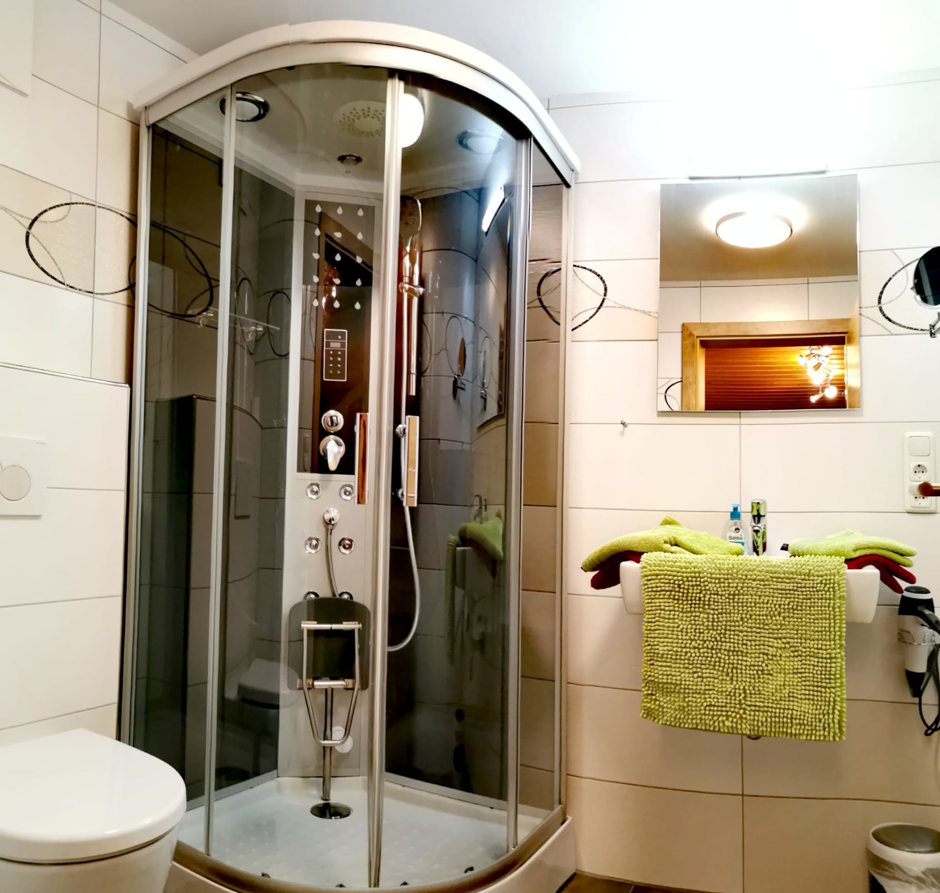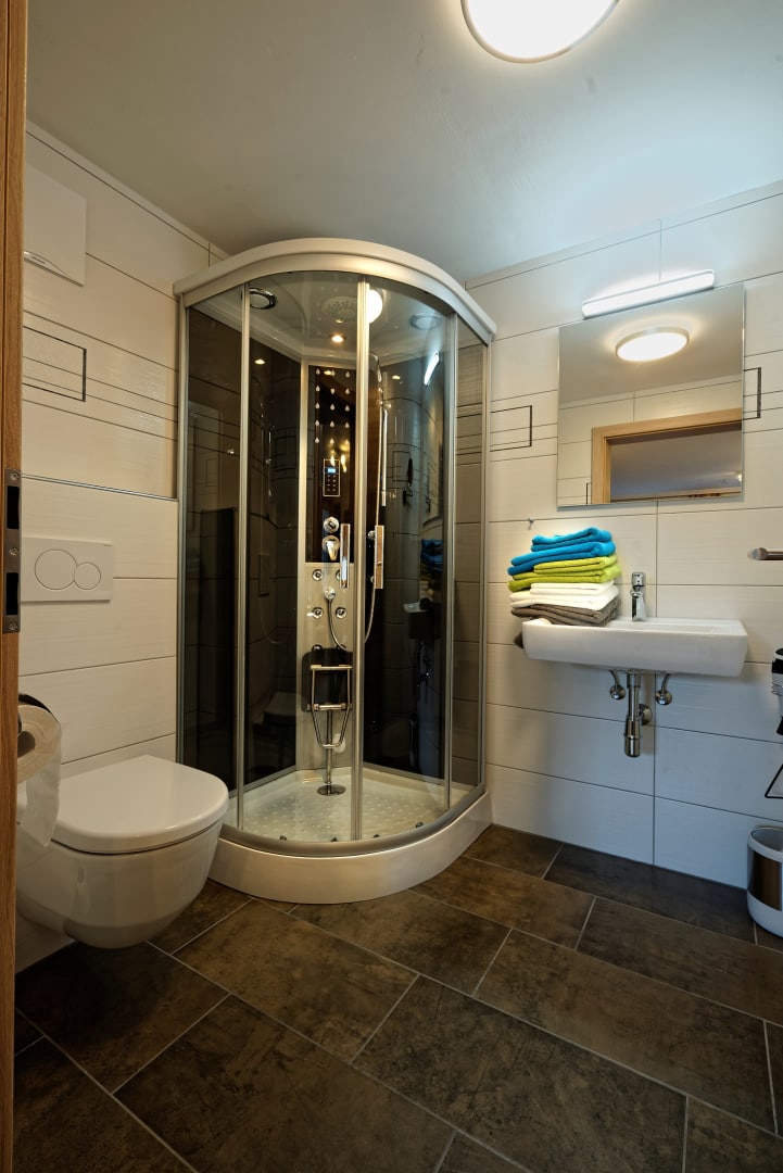 • Ein modernes Bad: mit Dusche, WC und ausreichend Handtüchern