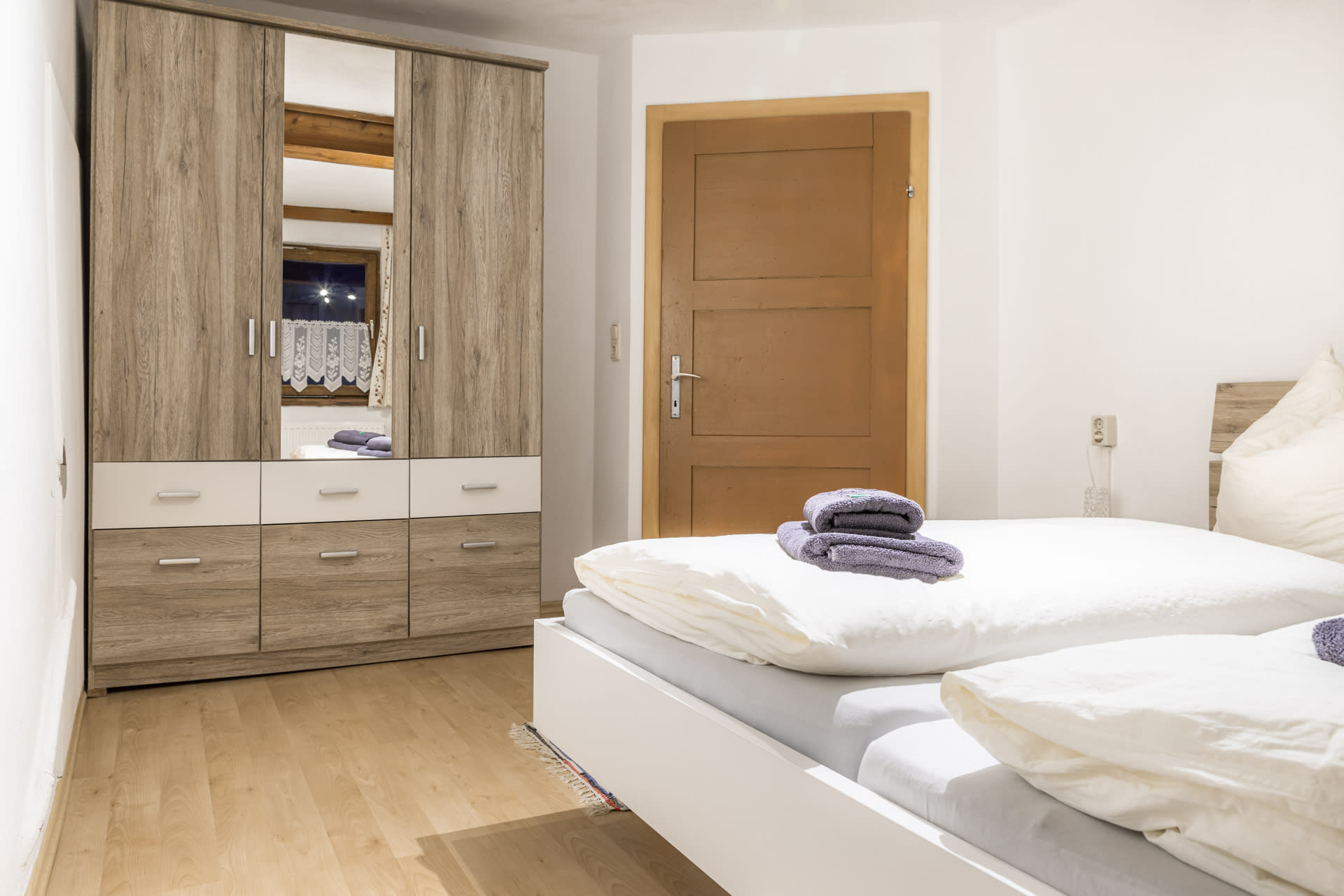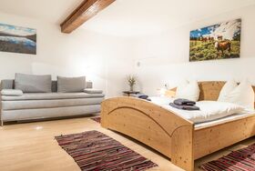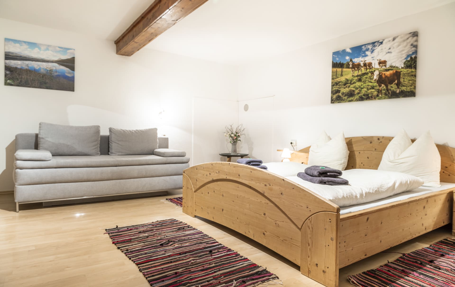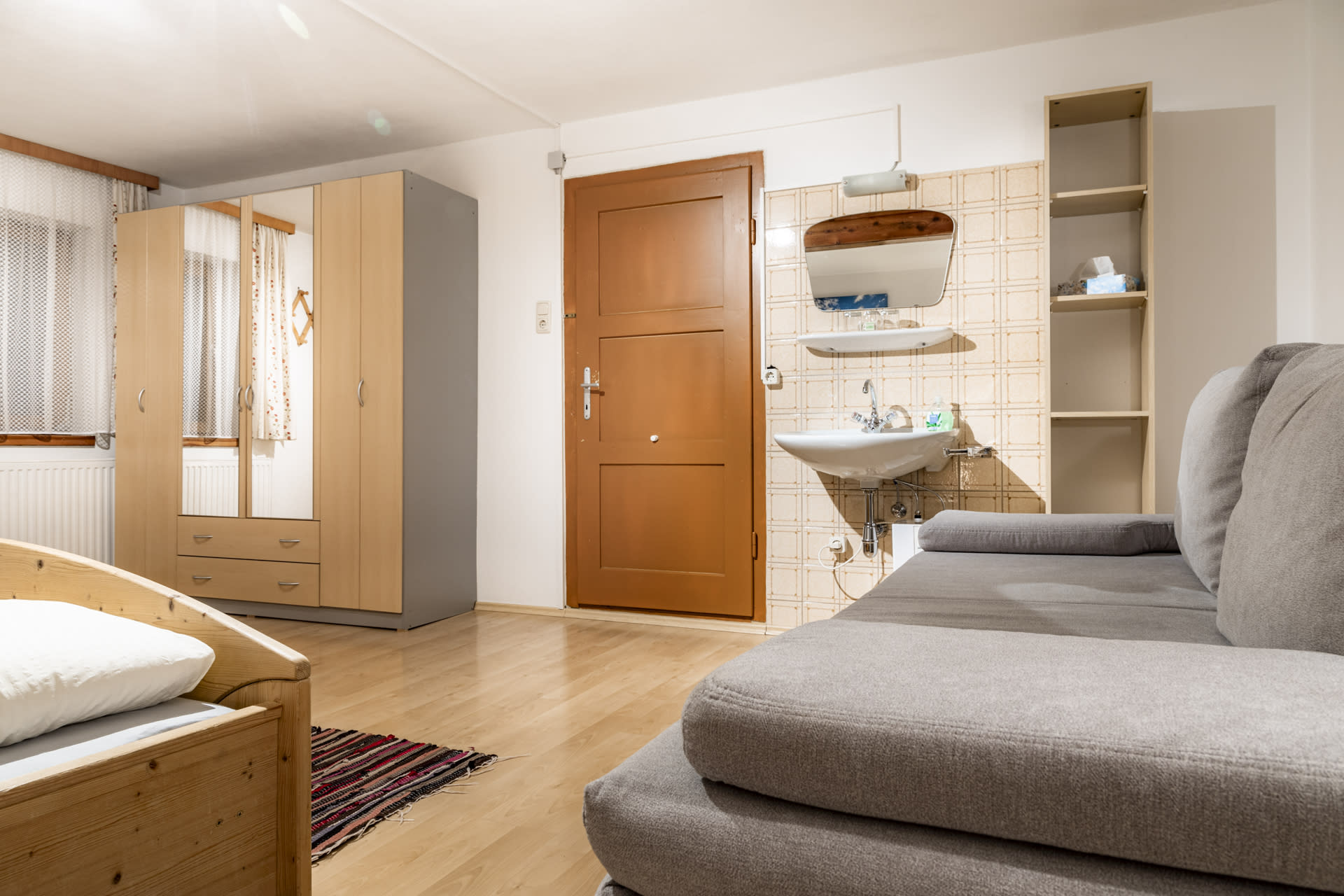 Zimmer 2: Fünfbettzimmer mit 1 Doppelbett, 1 Einzelbett, 1 Ausziehcouch