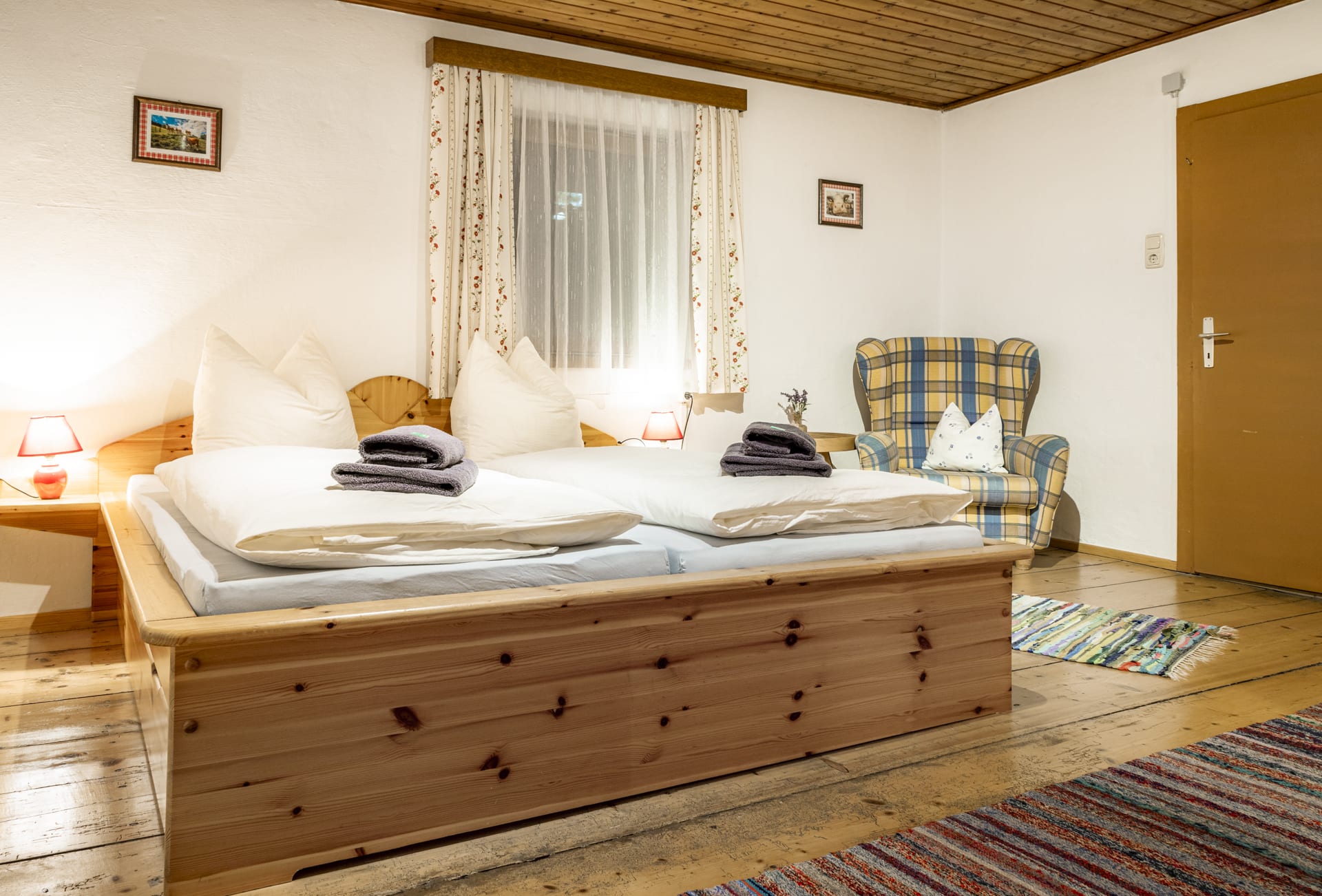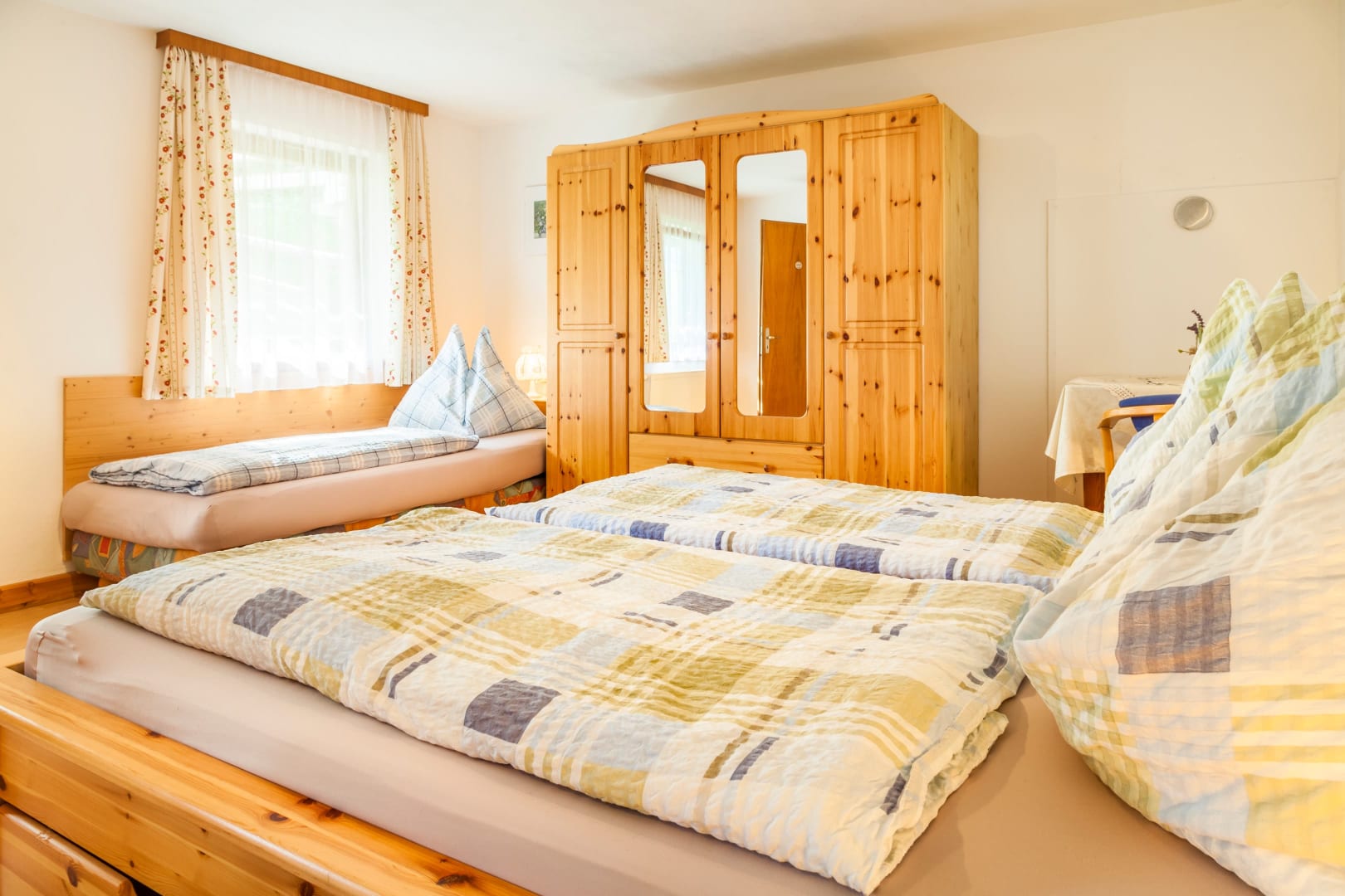 Zimmer 1: Dreibettzimmer mit 1 Doppelbett, 1 Einzelbett