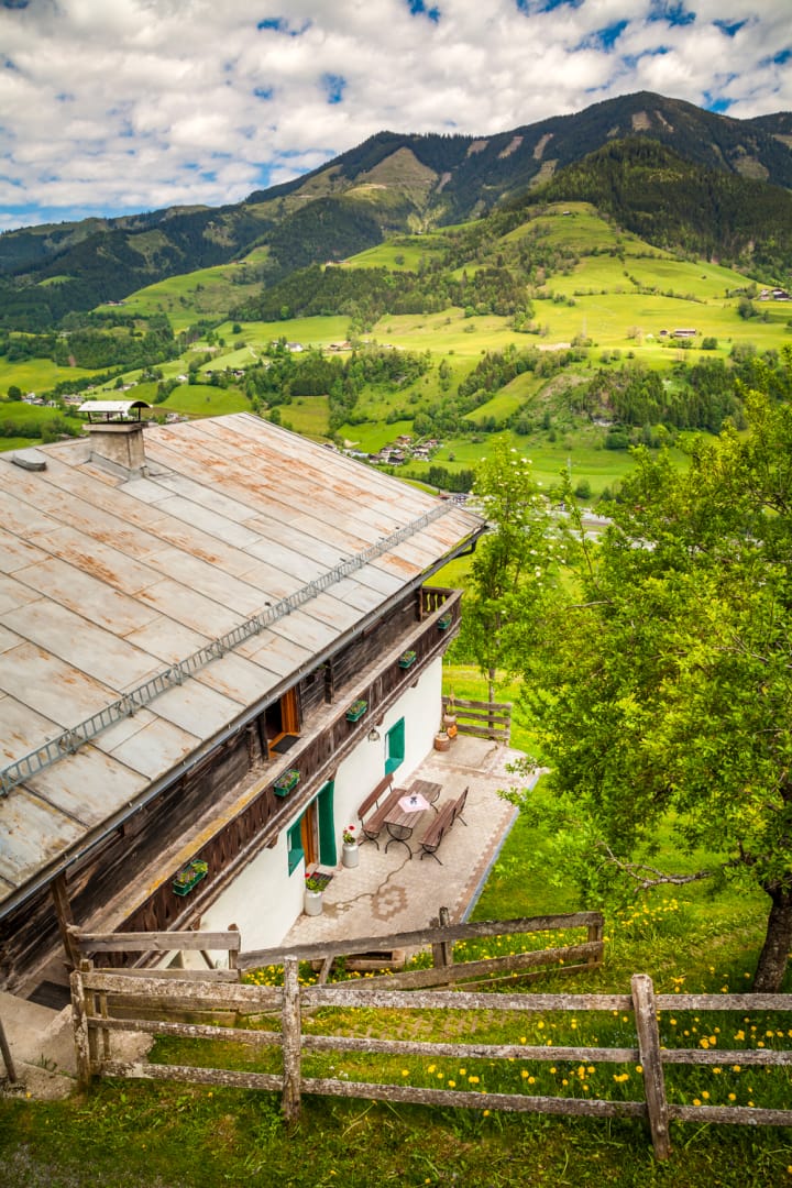 Unser ehemaliges Bergbauernhaus befindet sich auf 900m Seehöhe unter unserem Bauernhof am Hang mit herrlicher Aussicht.