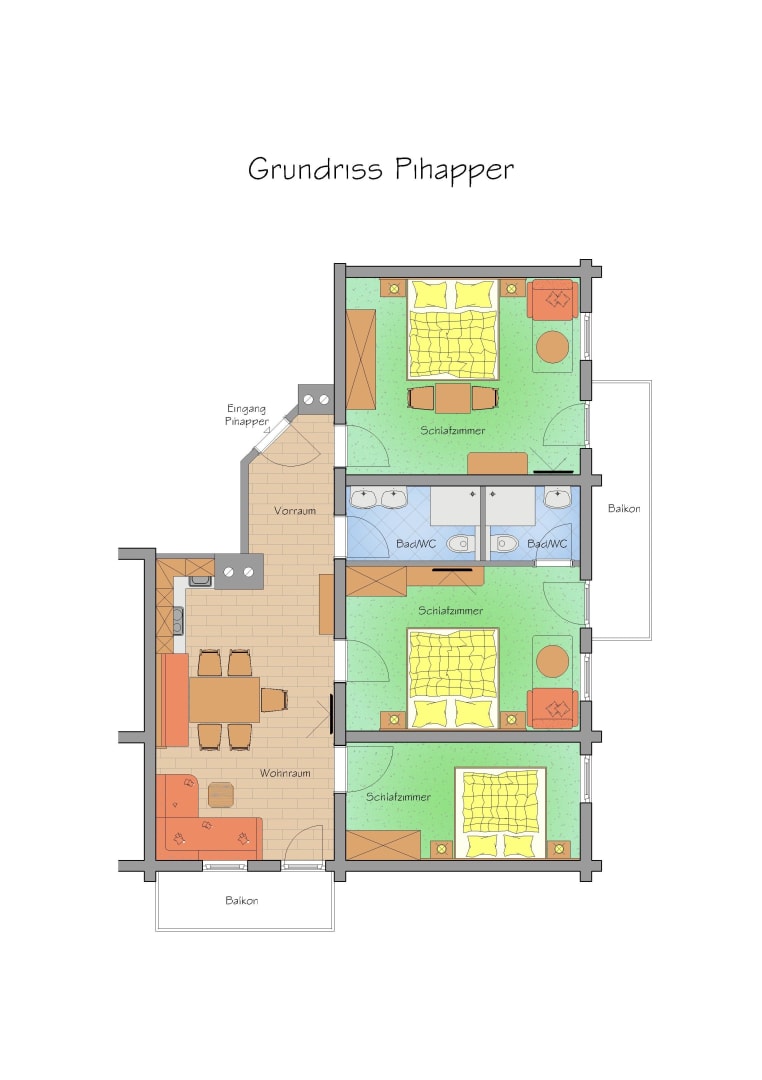 Unsere Ferienwohnung Pihapper ist ideal für die große Familie oder eine Auszeit mit Freunden. Das Beste: Auf den beiden Balkonen nach Süden und Osten kann man den ganzen Tag die Sonne genießen.
