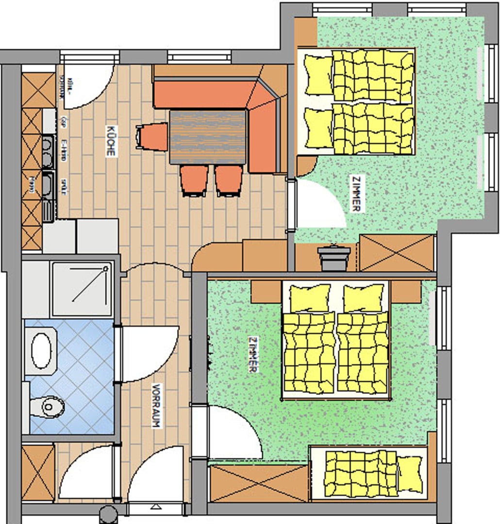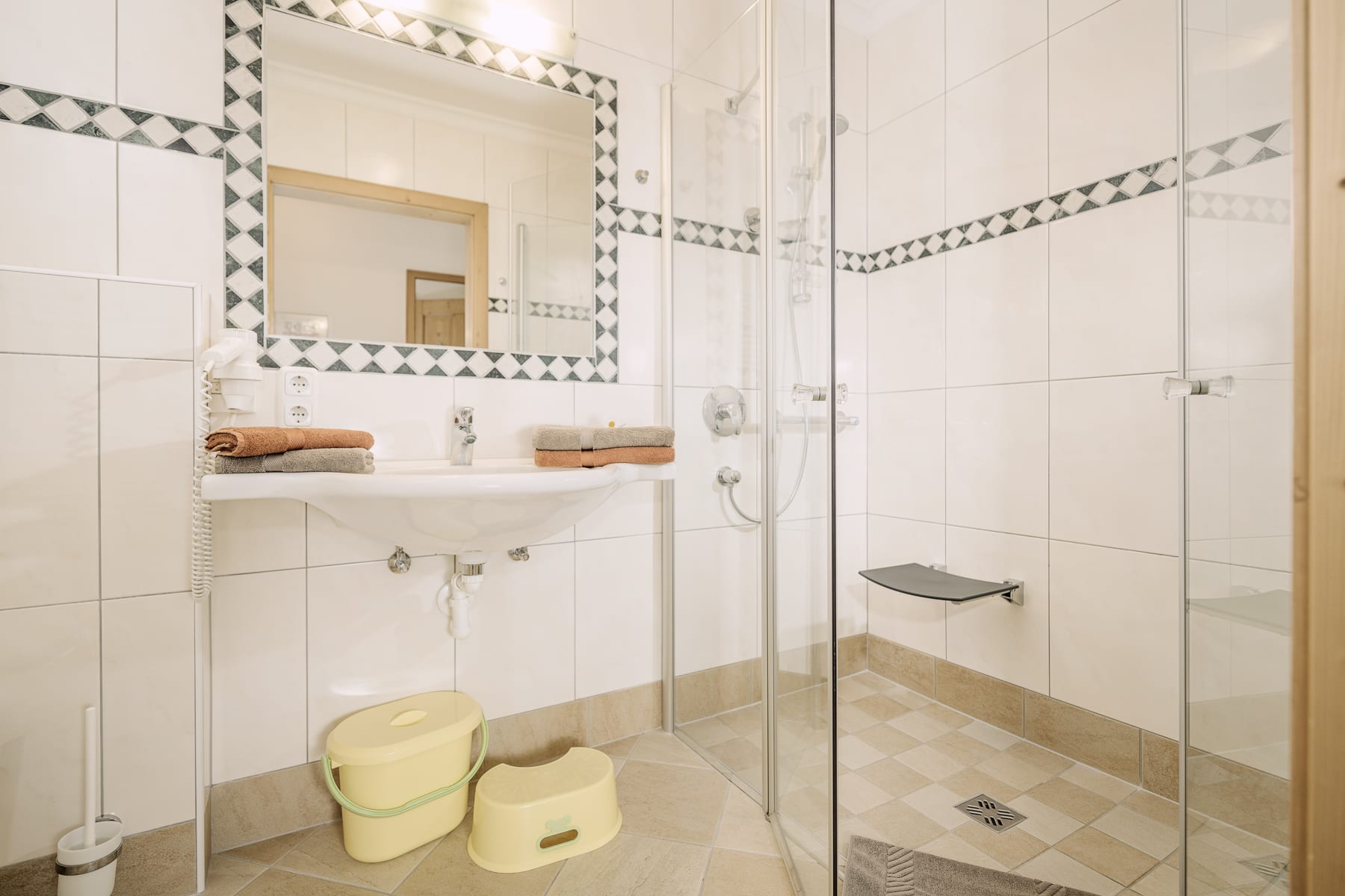 • 1 barrierefreies Dreibettzimmer mit Vollholzmöbel