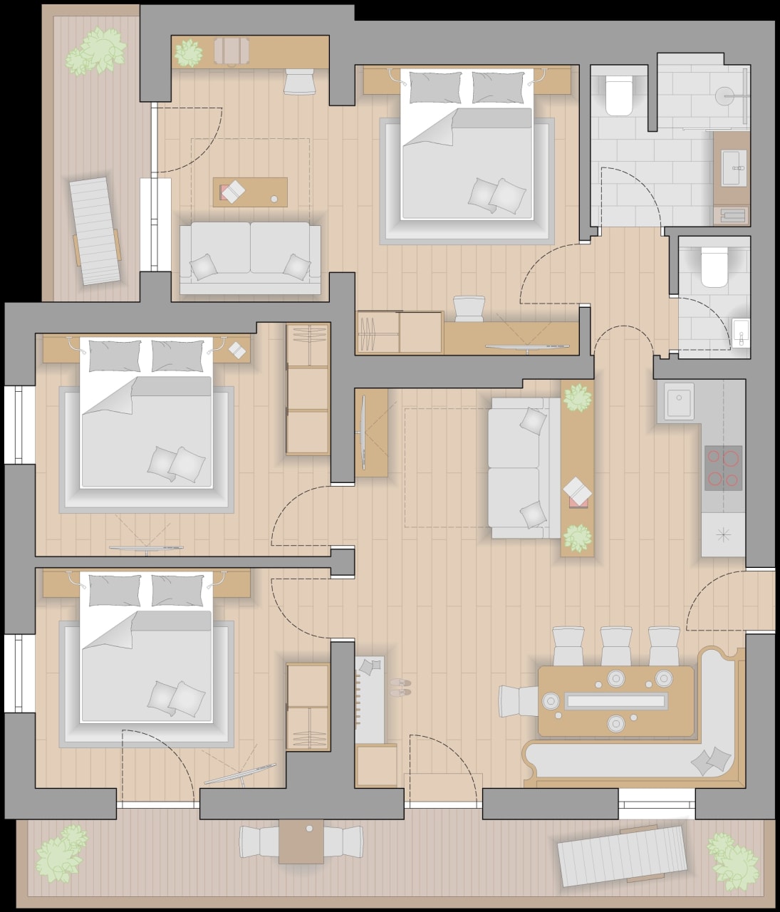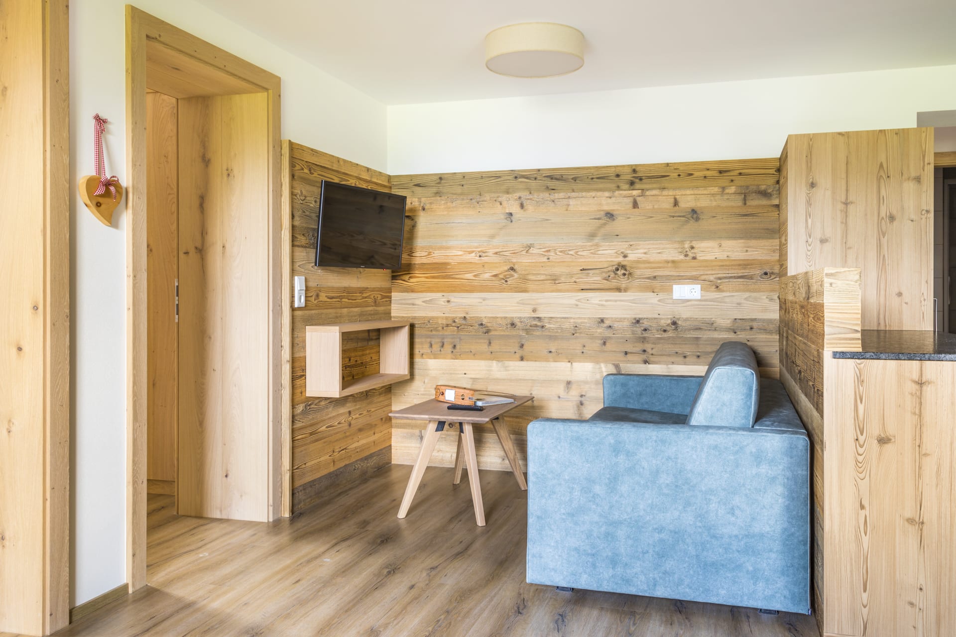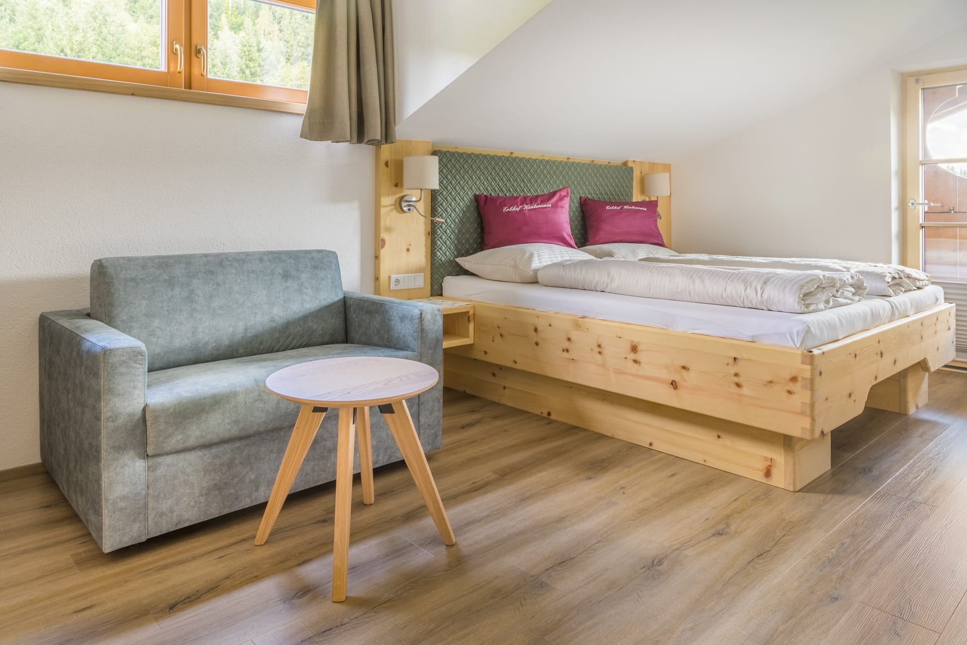 Das Nichtraucher-Apartment verfügt über zwei separate Schlafzimmer mit Zirbenbetten, die Ihnen maximale Privatsphäre bieten. Ein zusätzliches hochwertiges Ausziehsofa in einem Schlafzimmer ermöglicht eine flexible Belegung für bis zu 5 Personen.
