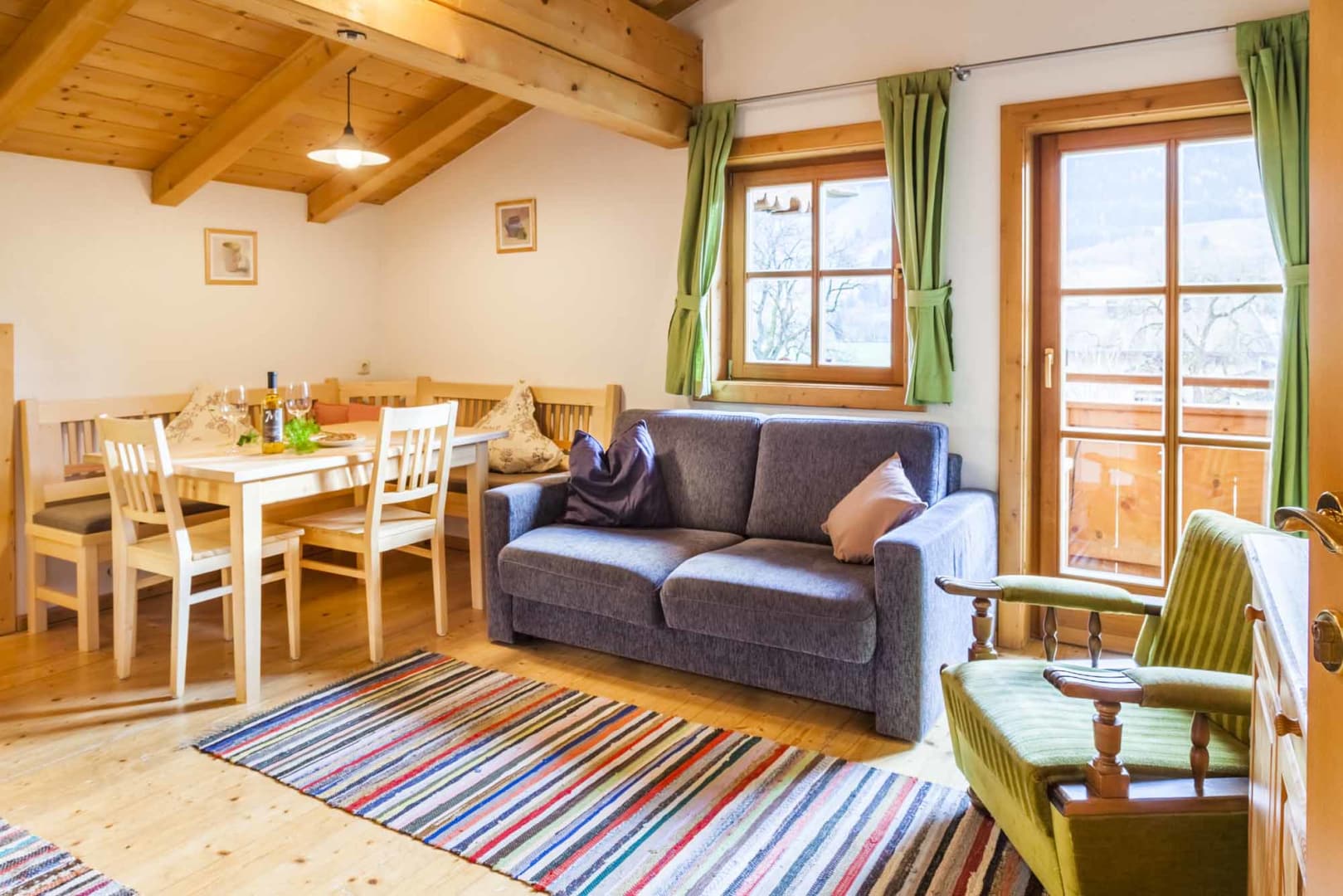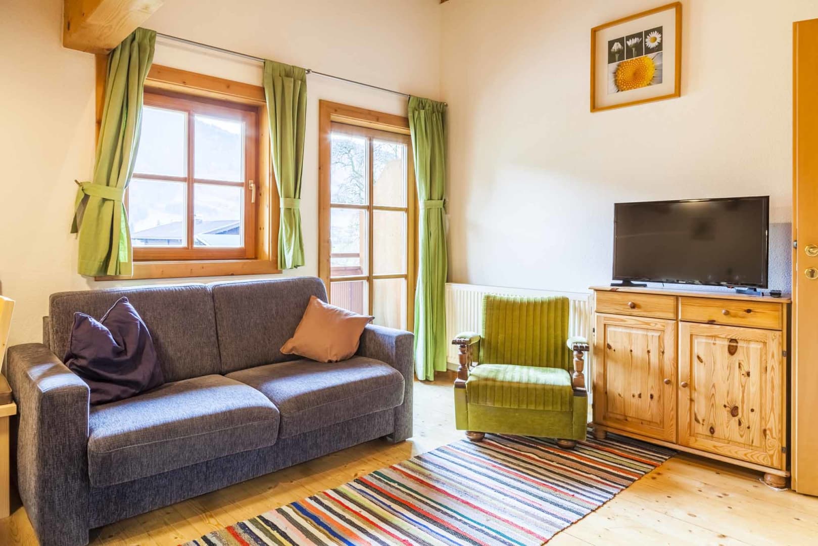 Gemütliche Wohnung mit Balkon und Blick auf den Spielplatz.