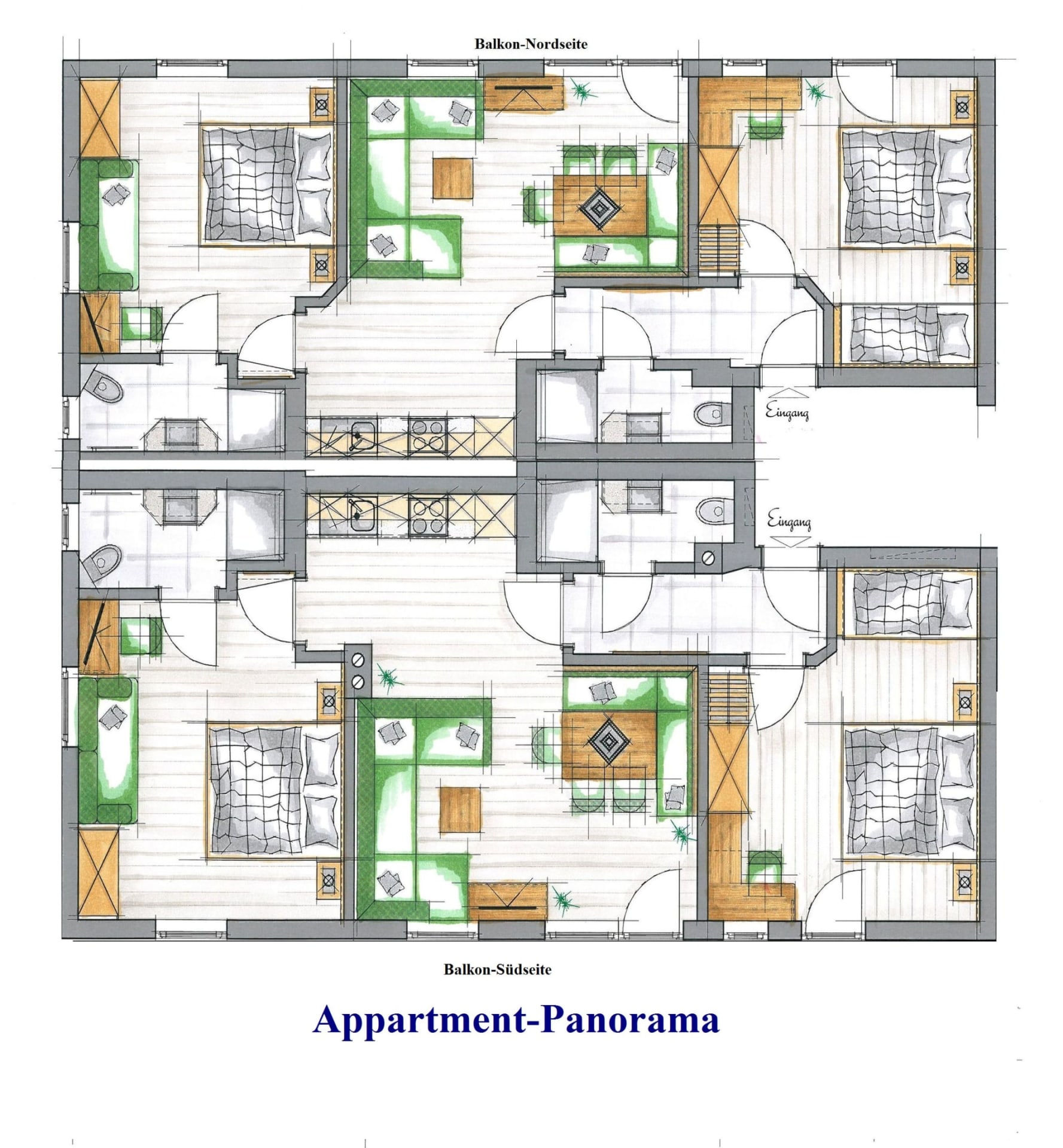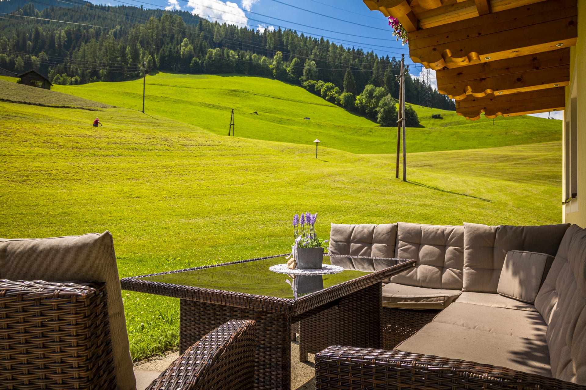 Die große Ferienwohnung Panorama mit 140 m² bietet Platz für eine große Familie oder Freundesgruppen und setzt sich aus den Wohnungen Pihapper und Sonnberg zusammen. Die Ferienwohnung befindet sich im gesamten 2. Stock. Die Balkone bieten einen schönen Ausblick auf die umliegende Bergwelt.