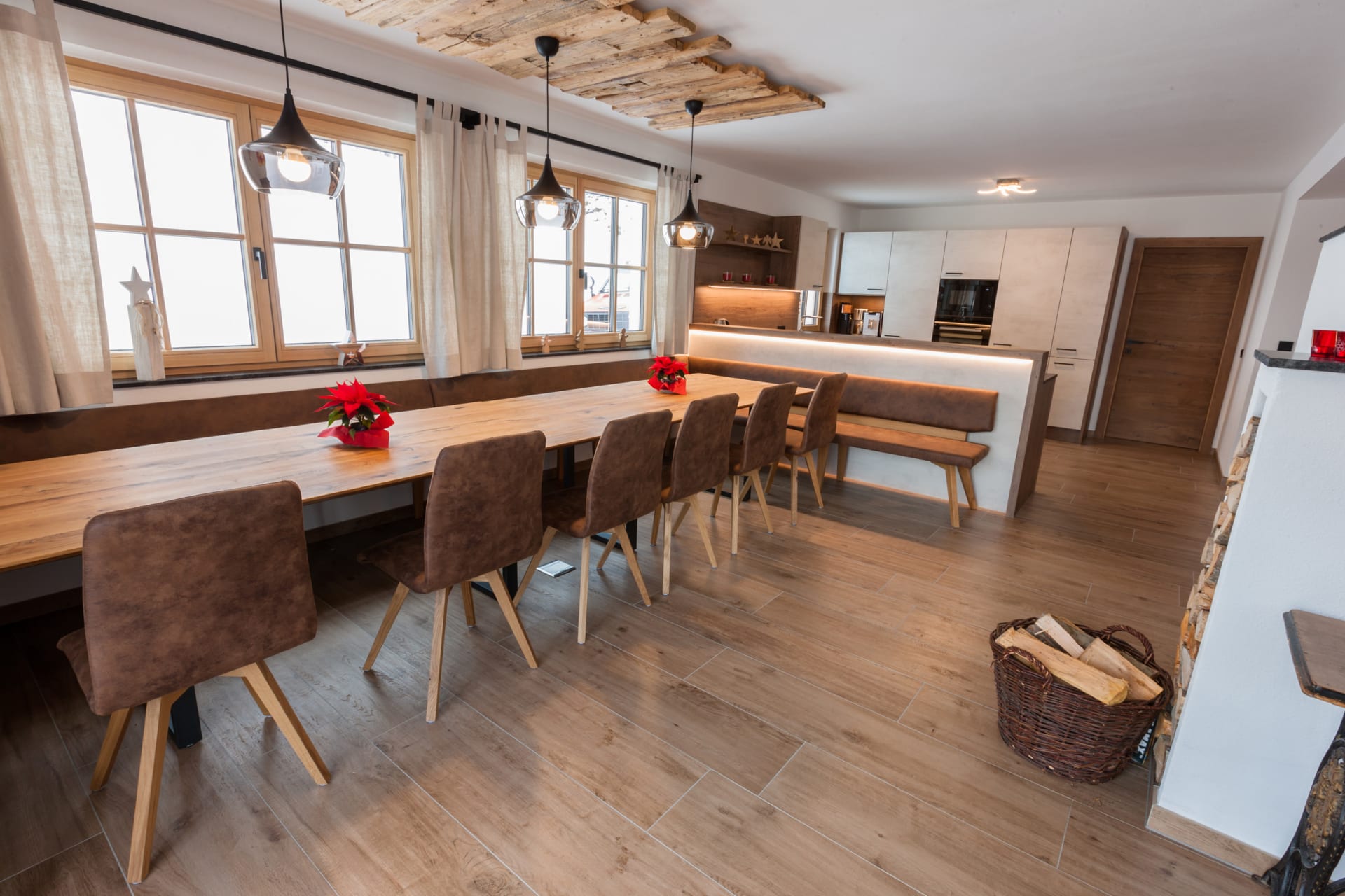 • großzügiges Wohnzimmer mit großem Esstisch für alle