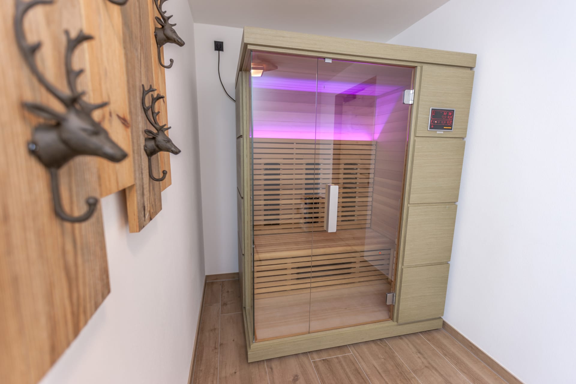 Genießt nach einem anstrengenden Skitag in der Infrarotkabine oder in unserer Blocksauna hinter dem Haus. Keine Dusche zur Abkühlung!! - lasst euch fallen, in den frisch geschneiten Pulverschnee.