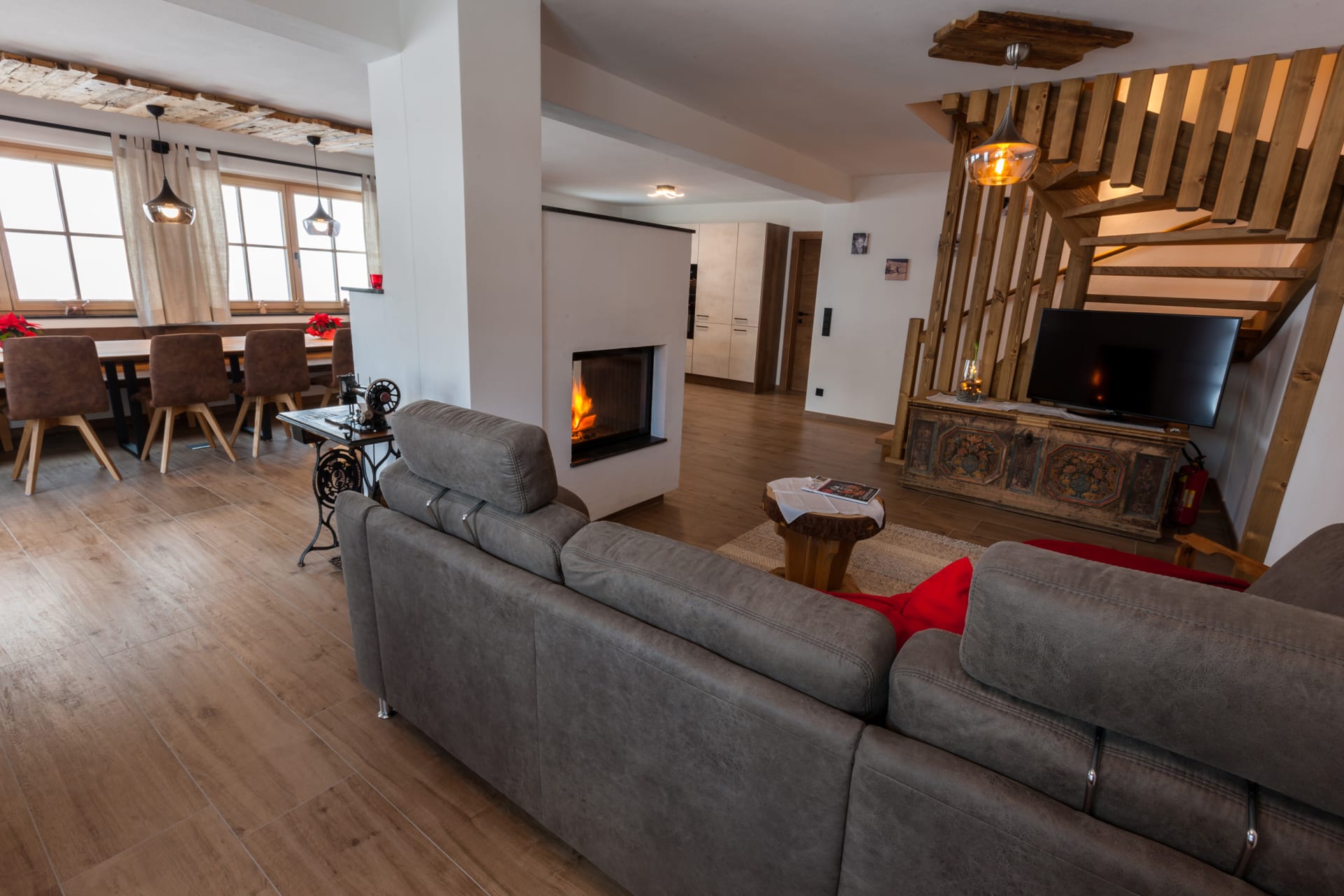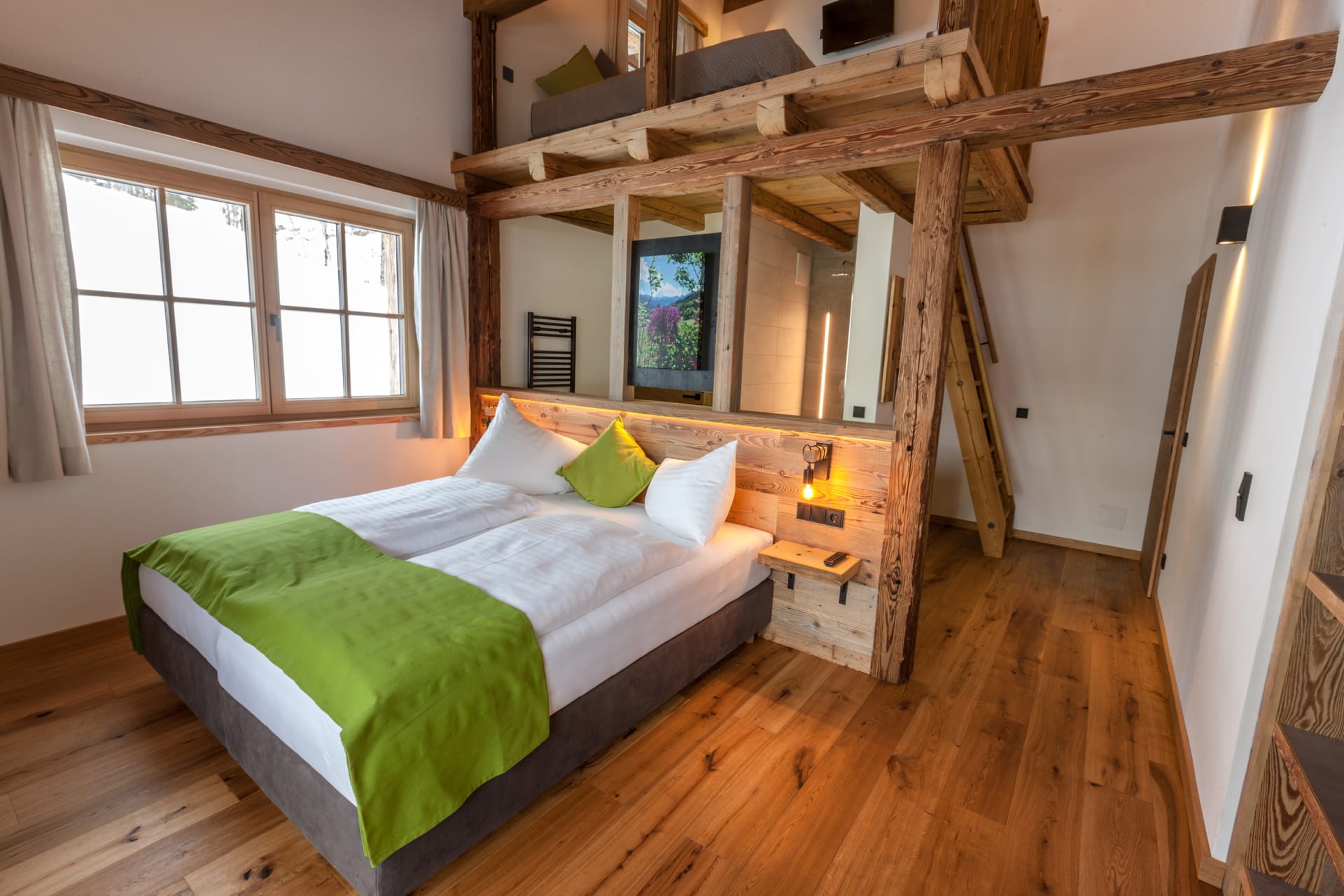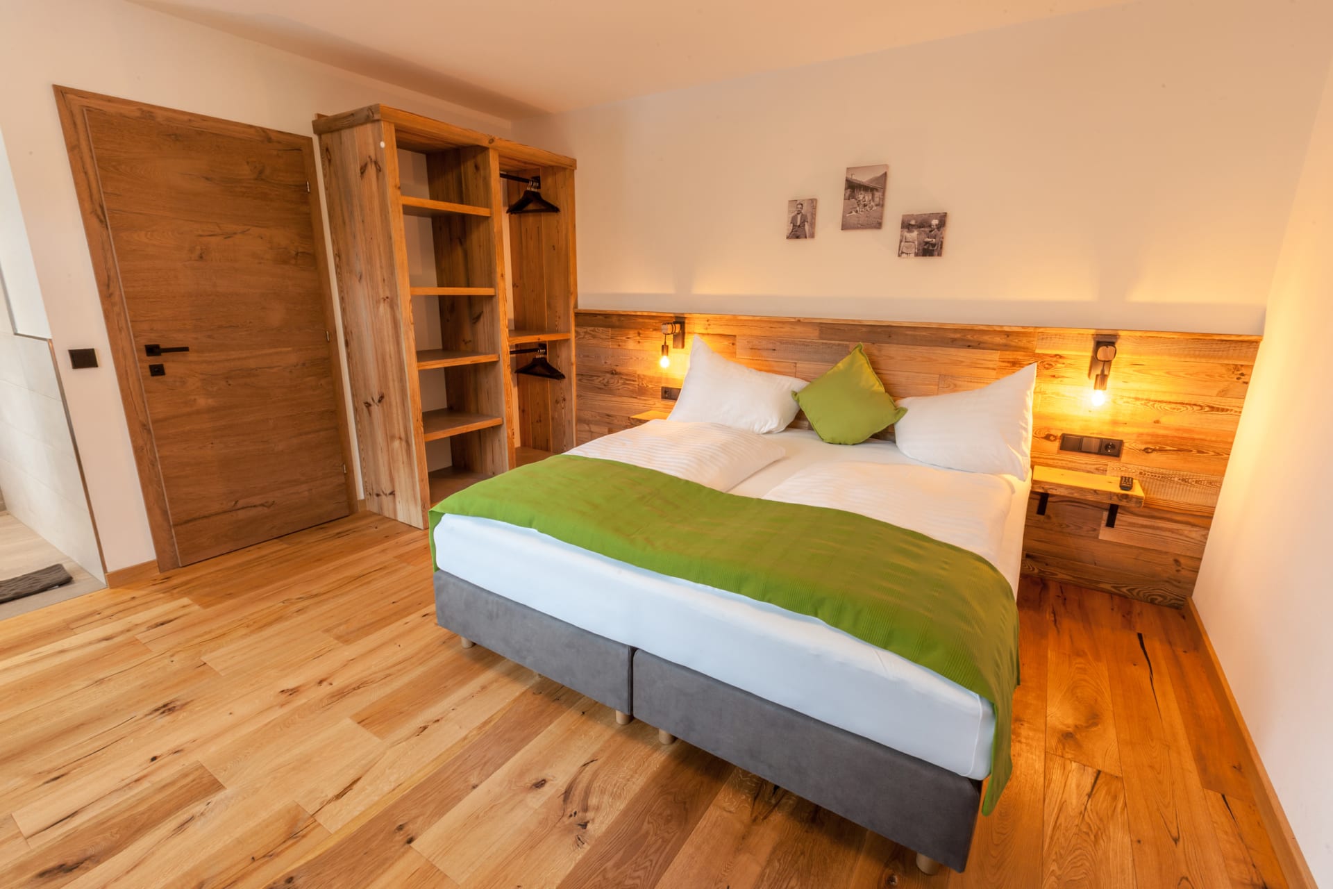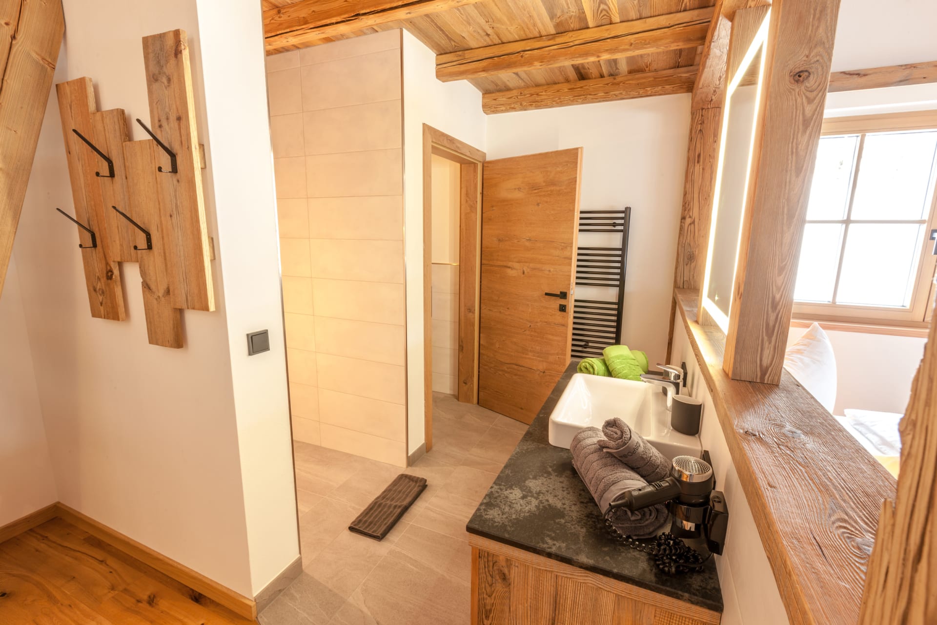 Das Chalet Sepp wurde 2019 neu errichtet und mit natürlichen Materialien wie Altholz, Naturstein und handgewebtem Bauernleinen gestaltet. Alles Dinge, die du berühren willst. Der alte Dielenboden und das gesamte Holz vom alten Stall wurde in Handarbeit geschnitten, gehobelt, gebürstet. Unser Vater Sepp hatte eine große Liebe und Wertschätzung für eine zeitgemäße aber traditionelle Lebensweise. Ihm und seiner Arbeit als Tischler und Waldarbeiter zu Ehren, haben wir diese Räume nach ihm benannt. Einige Gegenstände erinnern uns tagtäglich an ihn. Das erwartet euch: