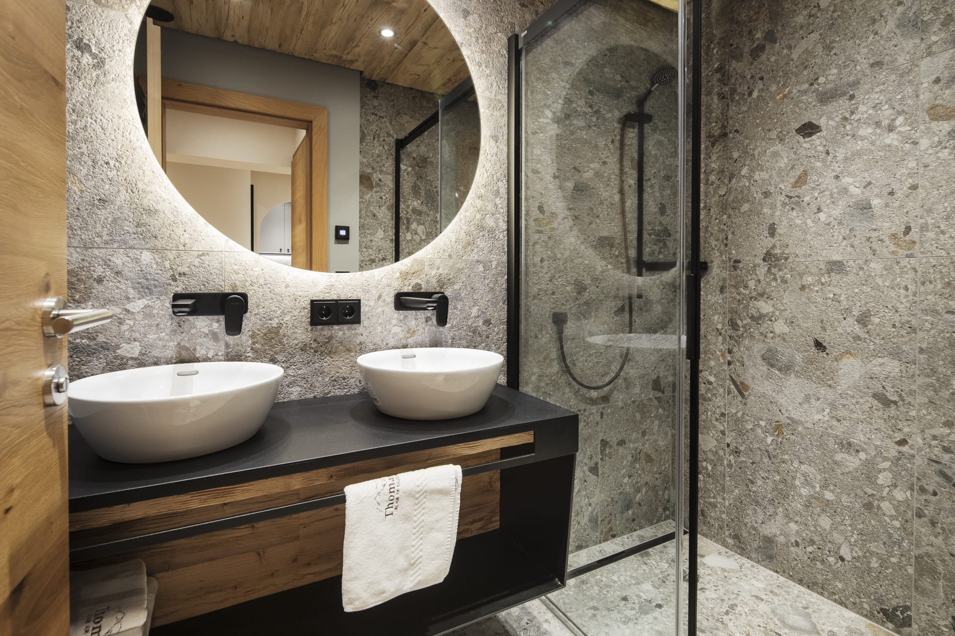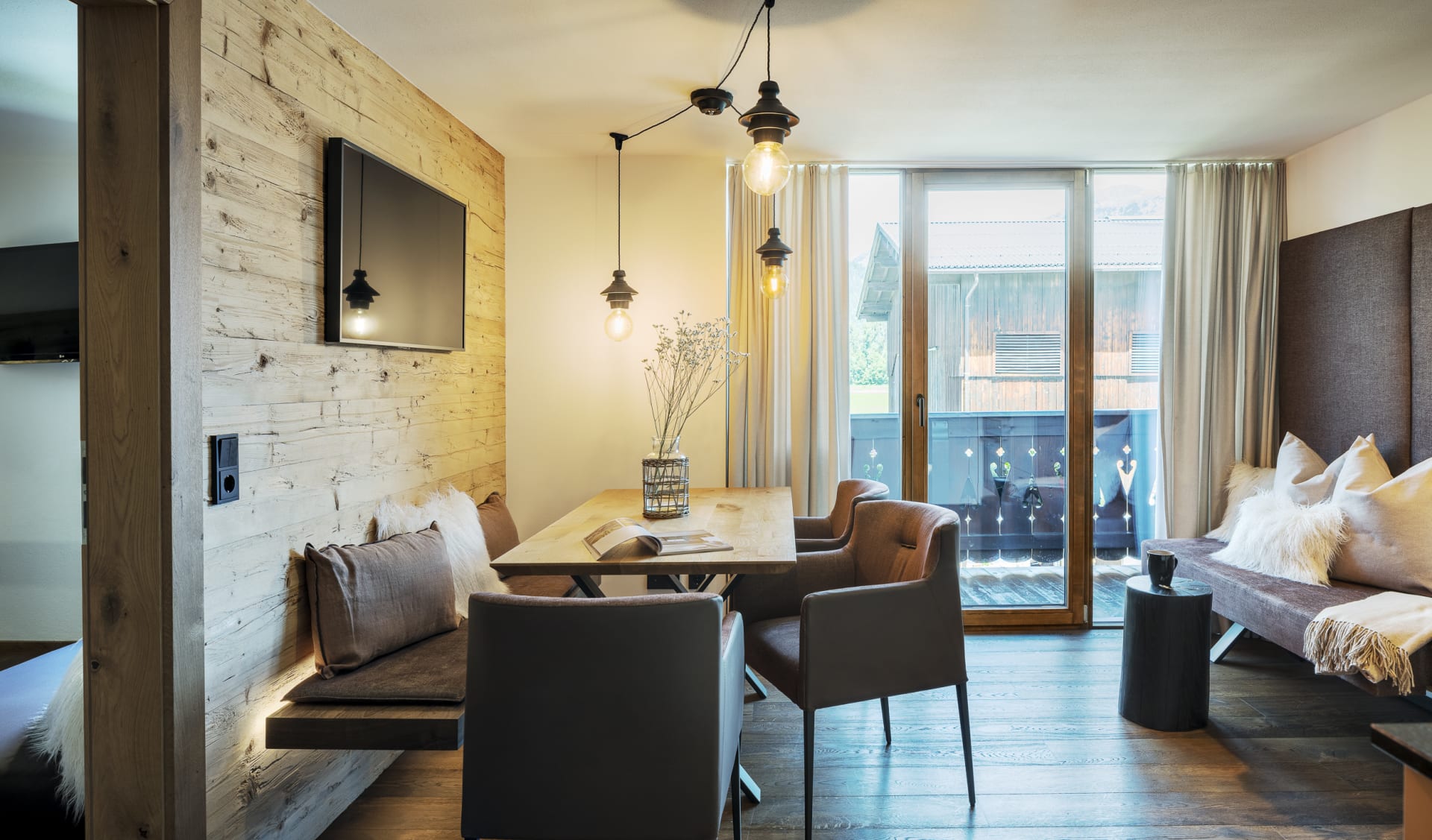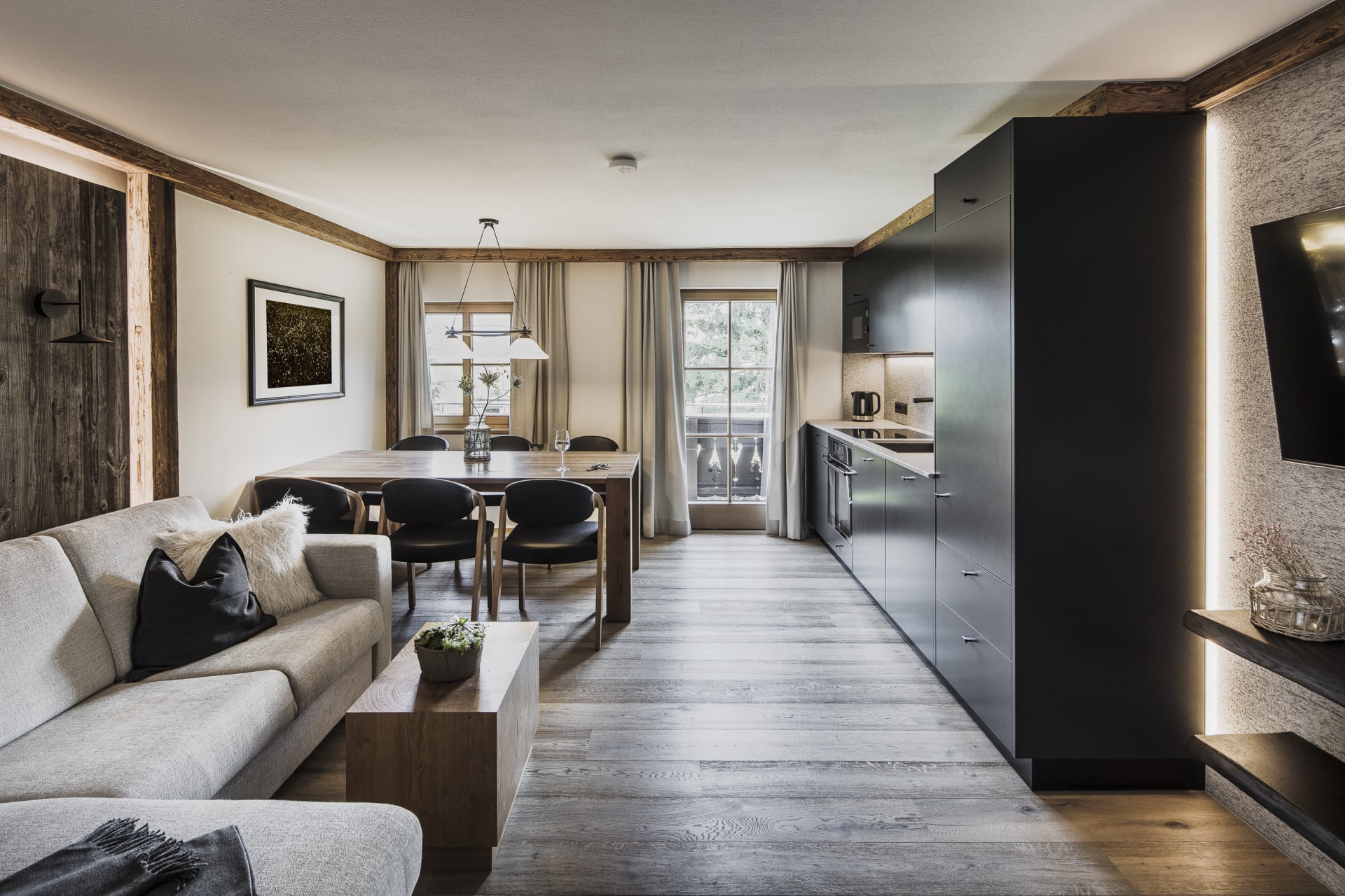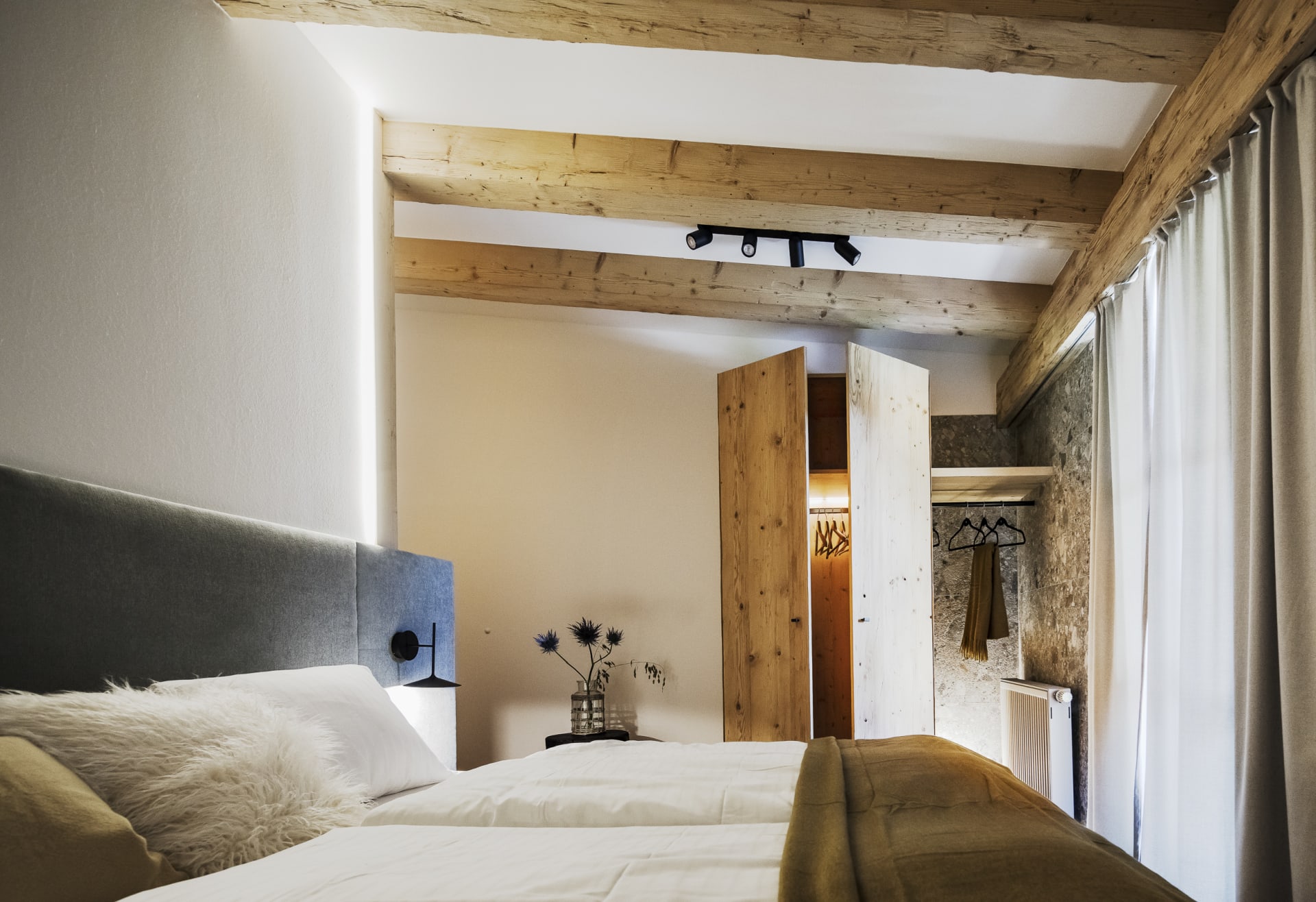 Willkommen in unseren einladenden Apartments, wo helles Holz auf hochwertige Ausstattung und herzliche Gastfreundschaft trifft. Auf großzügigen 60-65 m² erwartet Sie ein harmonisches Zuhause mit atemberaubendem Blick auf die umliegende Berglandschaft. Jedes Apartment bietet Wohlfühlatmosphäre mit zwei getrennten Schlafzimmern, ausgestattet mit zwei komfortablen Kingsize-Betten und einem Couchbett, ideal für bis zu 5 Personen.