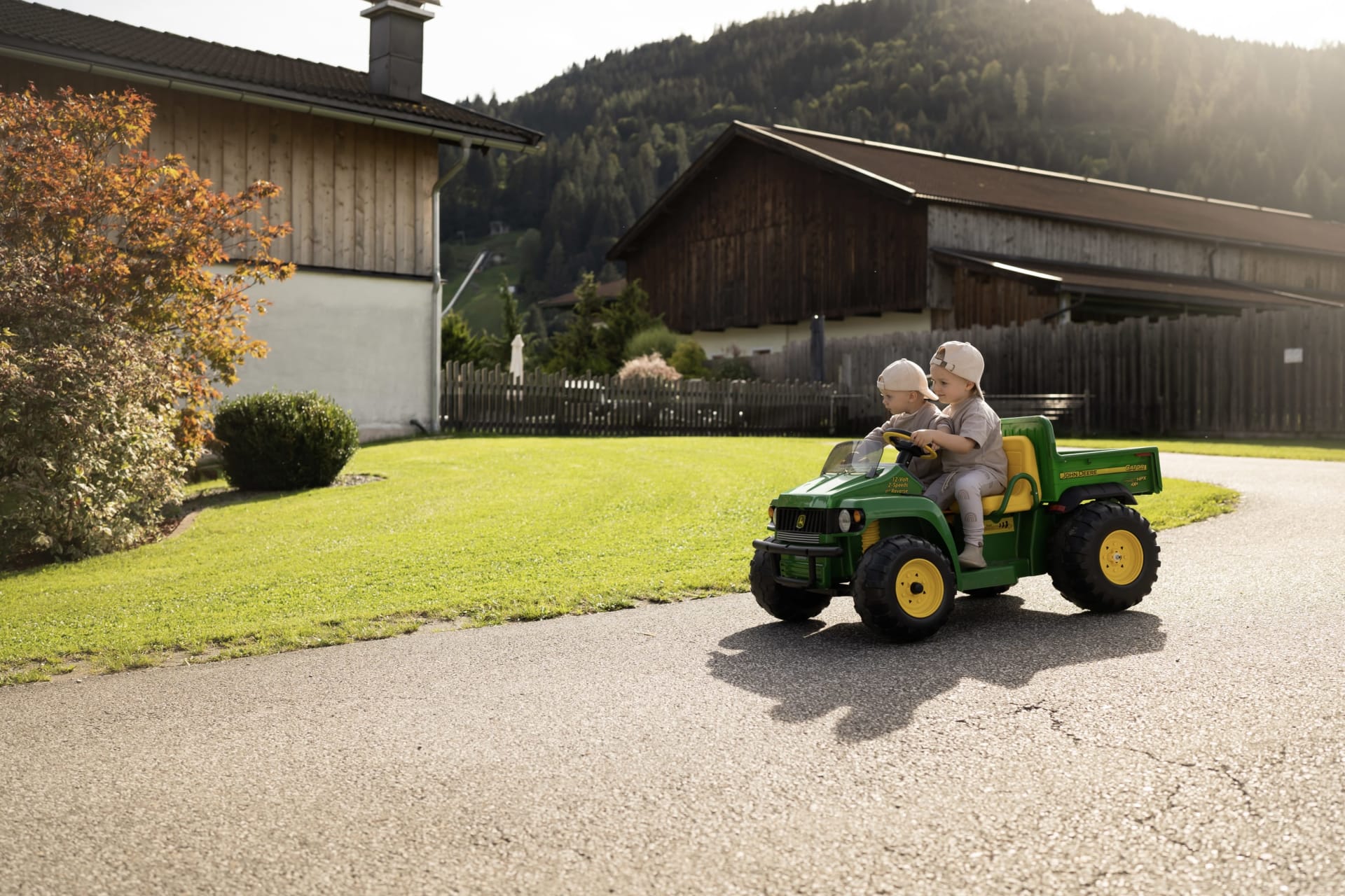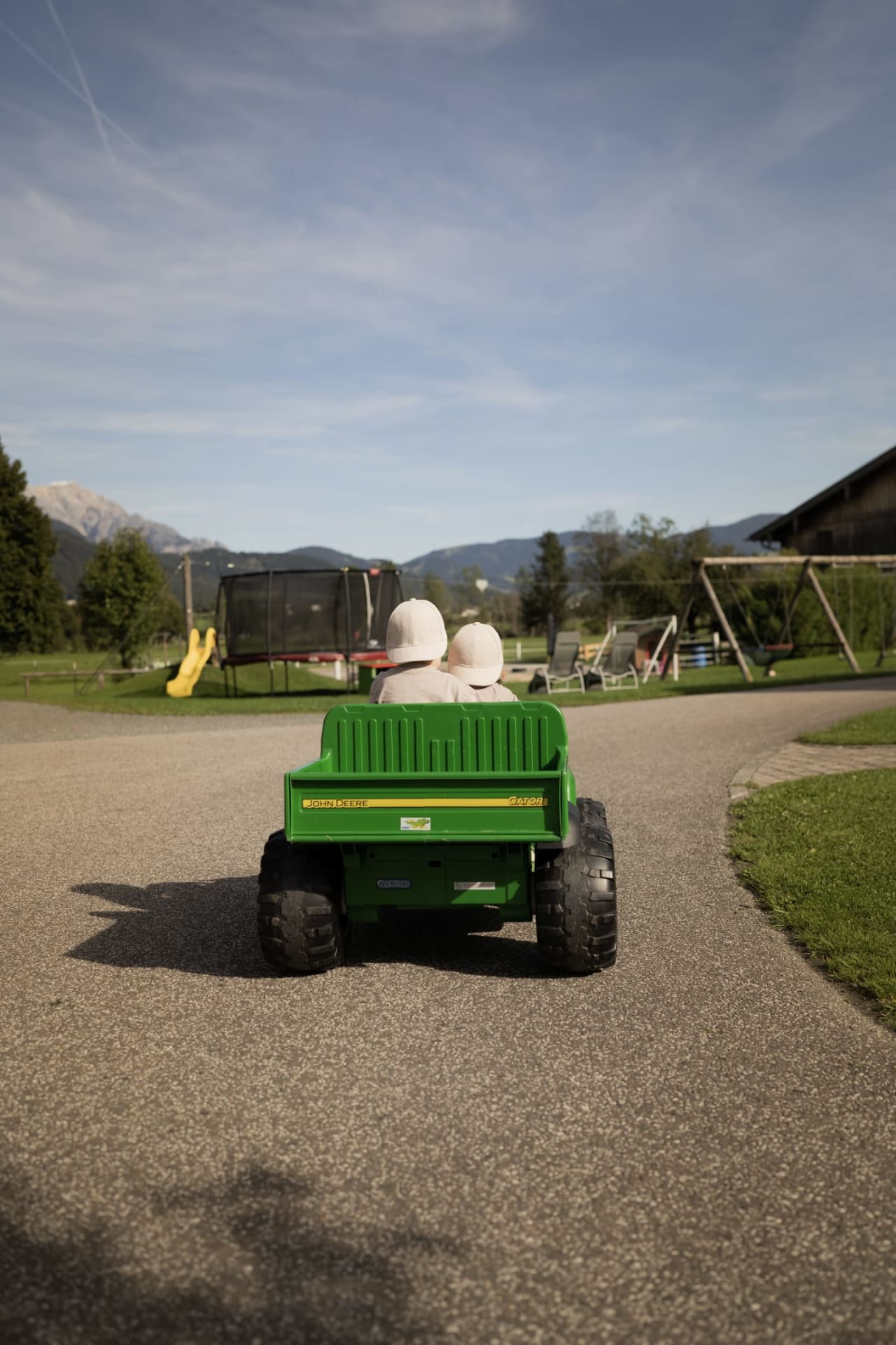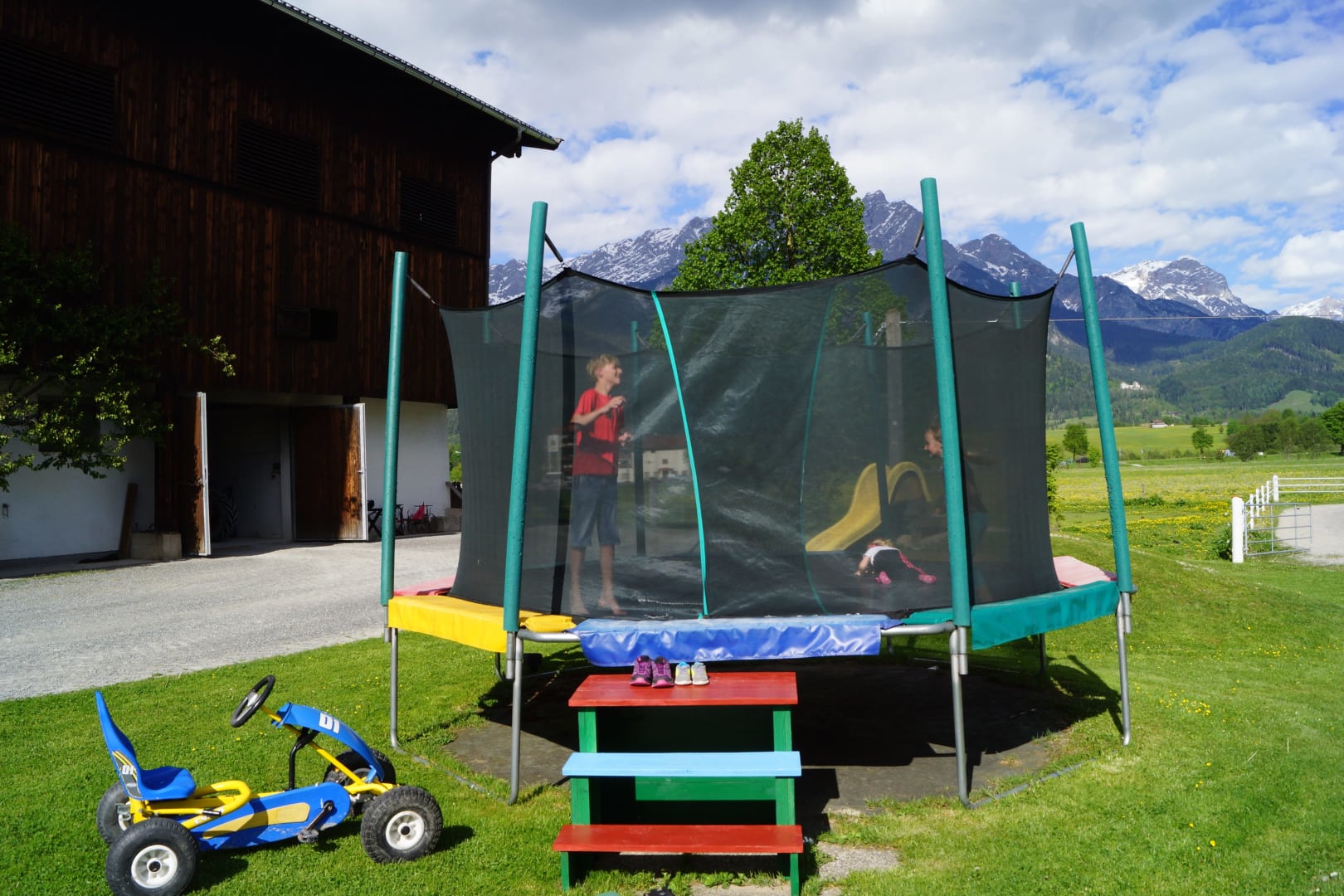 Unseren kleinen Urlaubsgästen wird besondere Aufmerksamkeit zuteil, sie haben bei uns die Möglichkeit, fernab vom Straßenverkehr zu spielen: Spielplatz, Lagerfeuer, Tischtennis, Fußballspielen, Trampolinspringen, Fahrräder, Spielraum, mit den heiß beliebten Elektro-Autos, Gokarts oder den Trettraktor über unseren Hof rollen lassen sowie mit anderen Kindern über die Wiesen toben – es ist bestimmt für jedes Kind etwas dabei! Auf dem Thomanhof tummeln sich Kühe, Kälber, Pferde, Ziegen, Kaninchen, Meerschweinchen, Katzen und Hühner. Gerne können Ihre Kinder beim Tiere füttern, Eier holen und der Stallarbeit helfen! Für Aktivitäten abseits des Bauernhofes erhalten unsere Gäste die Saalfelden-Leogang-Card mit vielen gratis Leitungen.