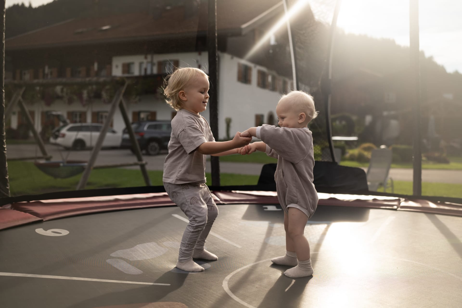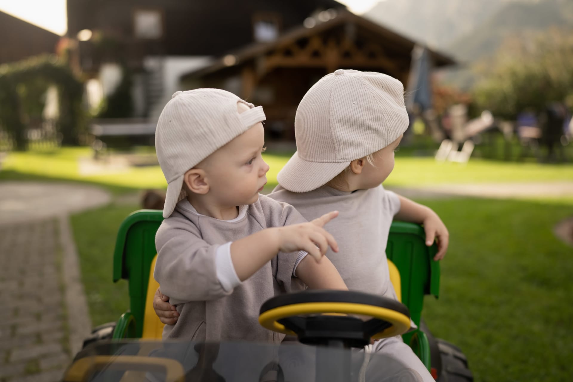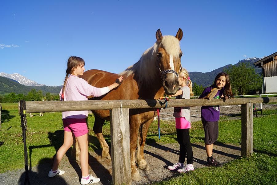 Unseren kleinen Urlaubsgästen wird besondere Aufmerksamkeit zuteil, sie haben bei uns die Möglichkeit, fernab vom Straßenverkehr zu spielen: Spielplatz, Lagerfeuer, Tischtennis, Fußballspielen, Trampolinspringen, Fahrräder, Spielraum, mit den heiß beliebten Elektro-Autos, Gokarts oder den Trettraktor über unseren Hof rollen lassen sowie mit anderen Kindern über die Wiesen toben – es ist bestimmt für jedes Kind etwas dabei! Auf dem Thomanhof tummeln sich Kühe, Kälber, Pferde, Ziegen, Kaninchen, Meerschweinchen, Katzen und Hühner. Gerne können Ihre Kinder beim Tiere füttern, Eier holen und der Stallarbeit helfen! Für Aktivitäten abseits des Bauernhofes erhalten unsere Gäste die Saalfelden-Leogang-Card mit vielen gratis Leitungen.