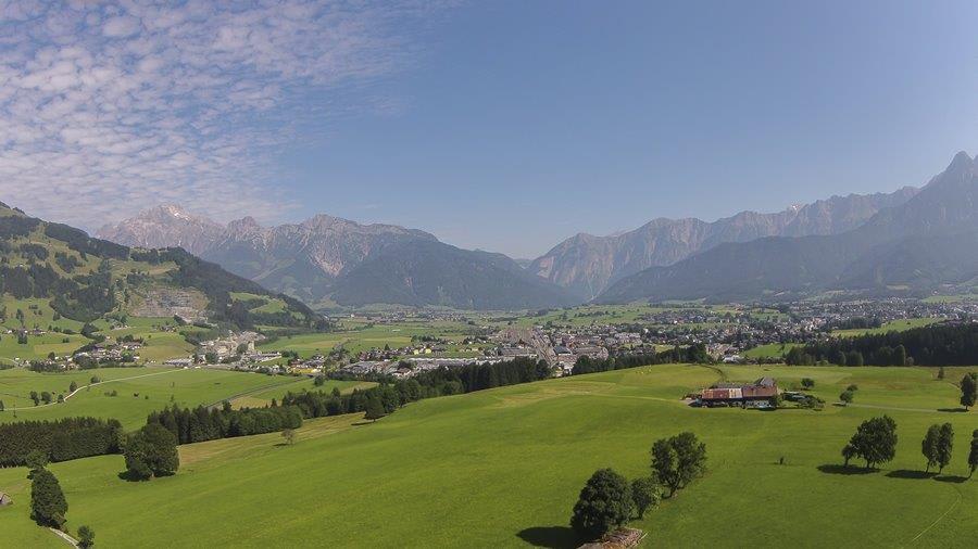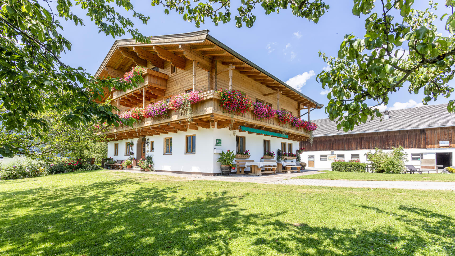 Unser Biobauernhof mit 2 gemütlichen Ferienwohnungen liegt inmitten des Saalfeldener Beckens auf einer kleinen Anhöhe und bietet ein herrliches Panorama auf die umliegenden Gebirgszüge.