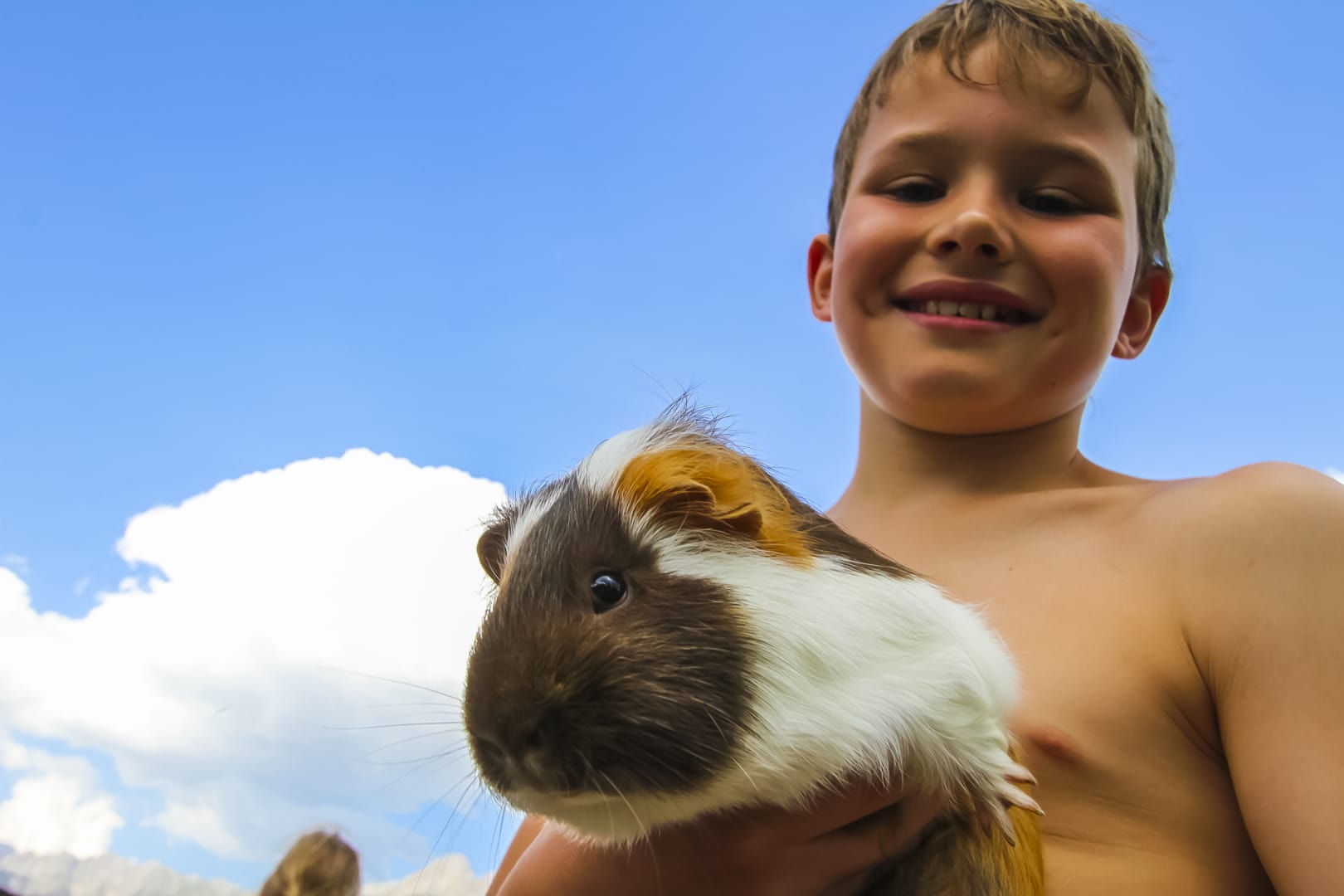 Die Kinder sind mit ihren Eltern im Stall gern gesehene Gäste und können das Hofleben kennenlernen, einige Streicheltiere warten auf Betreuung - Katzen, Pony Stella, 2 Hasen und 1 Meerschweinchen, etliche Hühner und 2 Enten und natürlich immer wieder ein kleines Kälbchen. Ganz besonders begeistert ist unser Australian Shepherdhund Kira, wenn Besuch kommt!