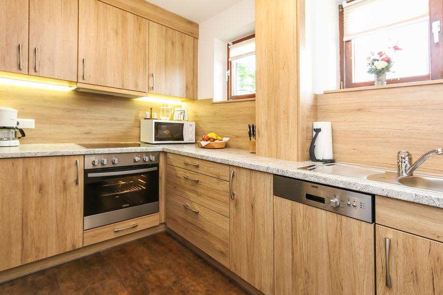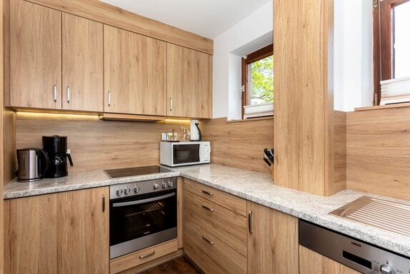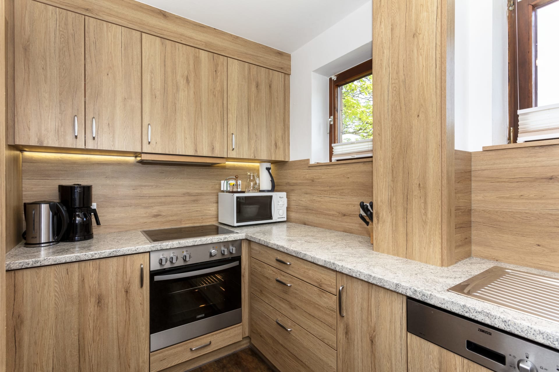 • 1 separate Küche mit komplettem Geschirr, Geschirrspülmaschine, Kühlschrank, Ceranfeld mit Backrohr, Kaffeemaschine, Mixer, Wasserkocher Eierkocher. Toaster auf Anfrage