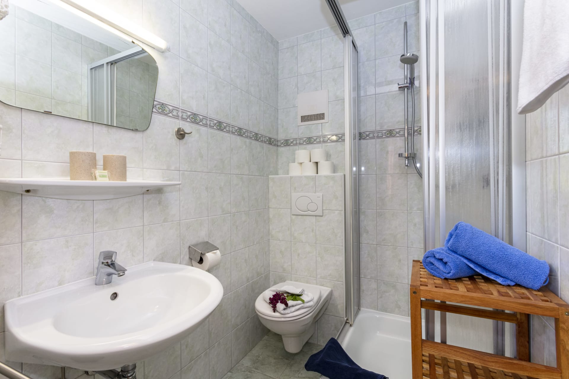 • 1 Dreibettzimmer mit Dusche/WC, Balkon