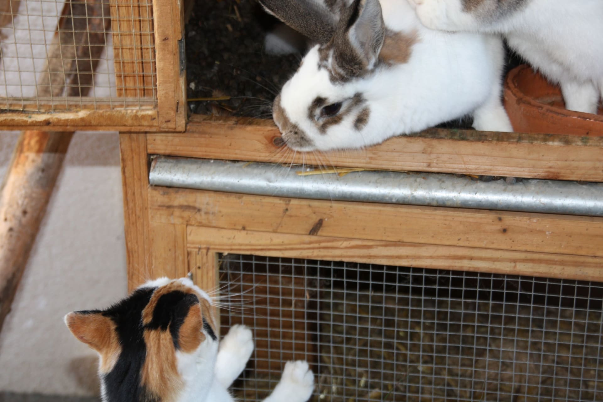 Die Kinder sind mit ihren Eltern im Stall gern gesehene Gäste und können das Hofleben kennenlernen, einige Streicheltiere warten auf Betreuung - Katzen, Pony Stella, 2 Hasen und 1 Meerschweinchen, etliche Hühner und 2 Enten und natürlich immer wieder ein kleines Kälbchen. Ganz besonders begeistert ist unser Australian Shepherdhund Kira, wenn Besuch kommt!
