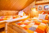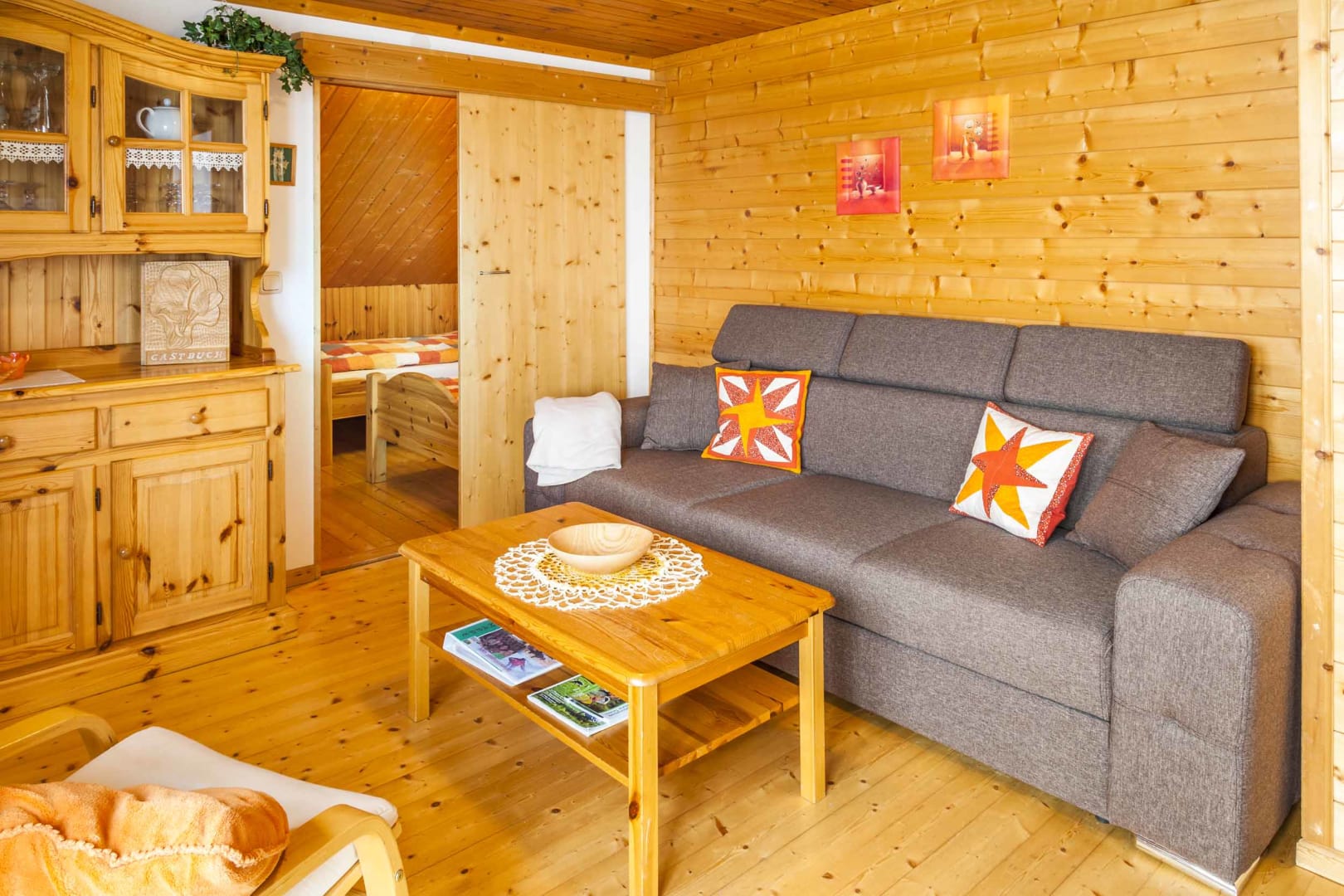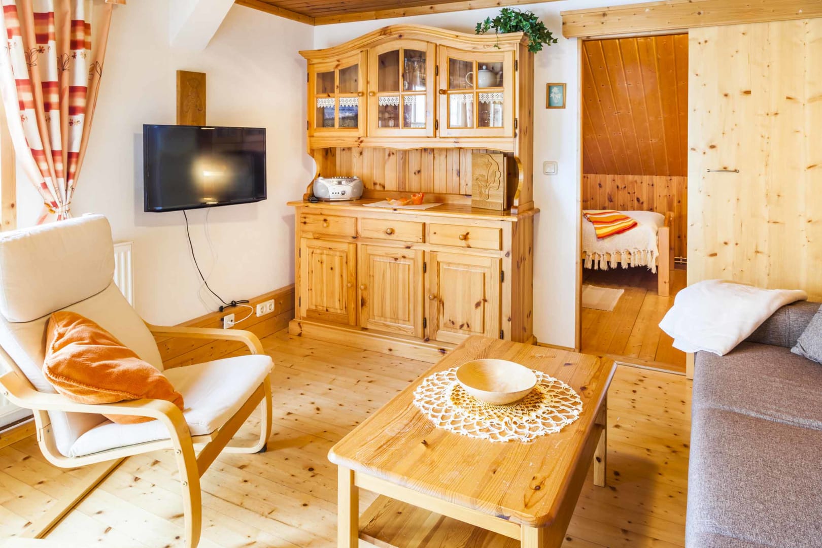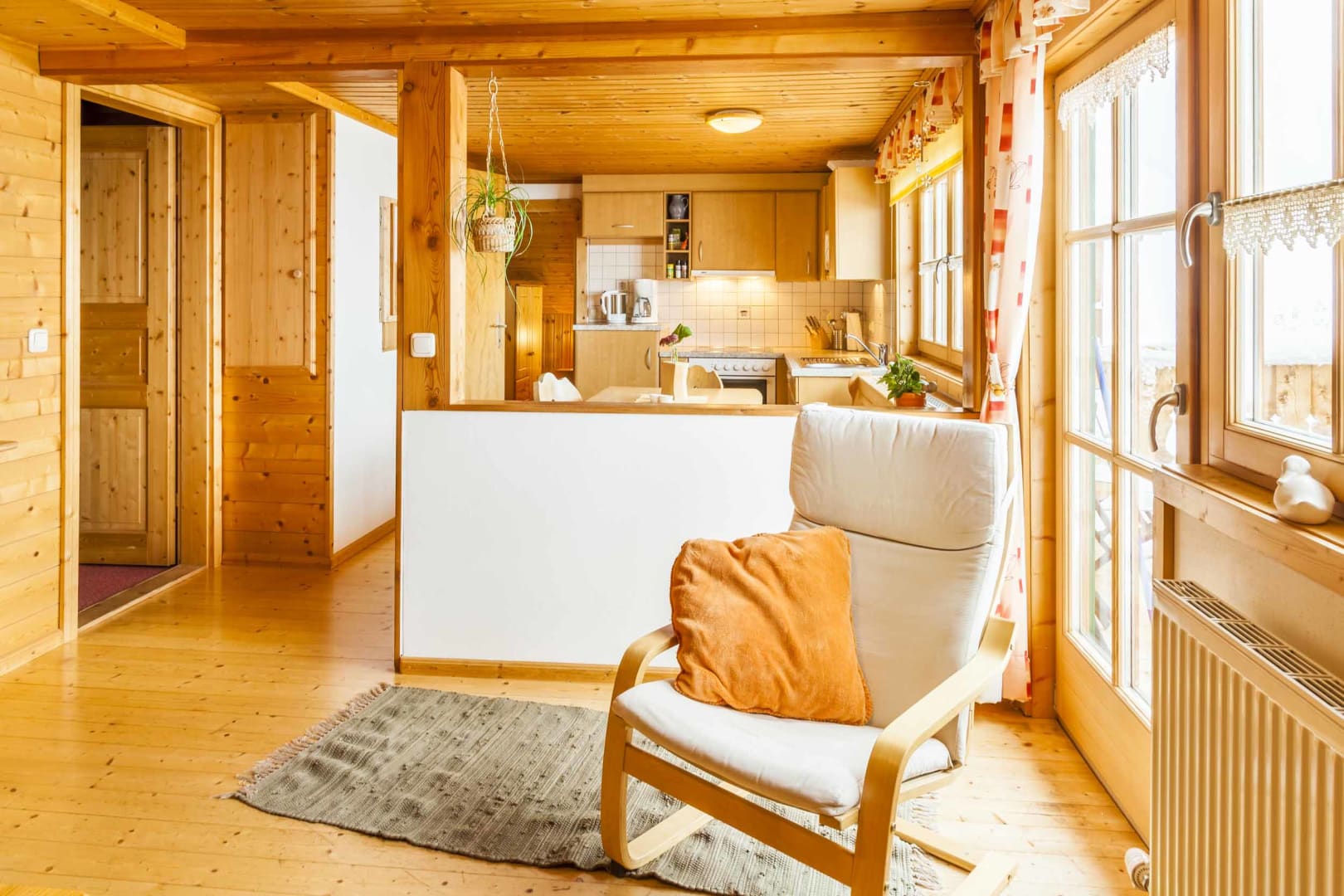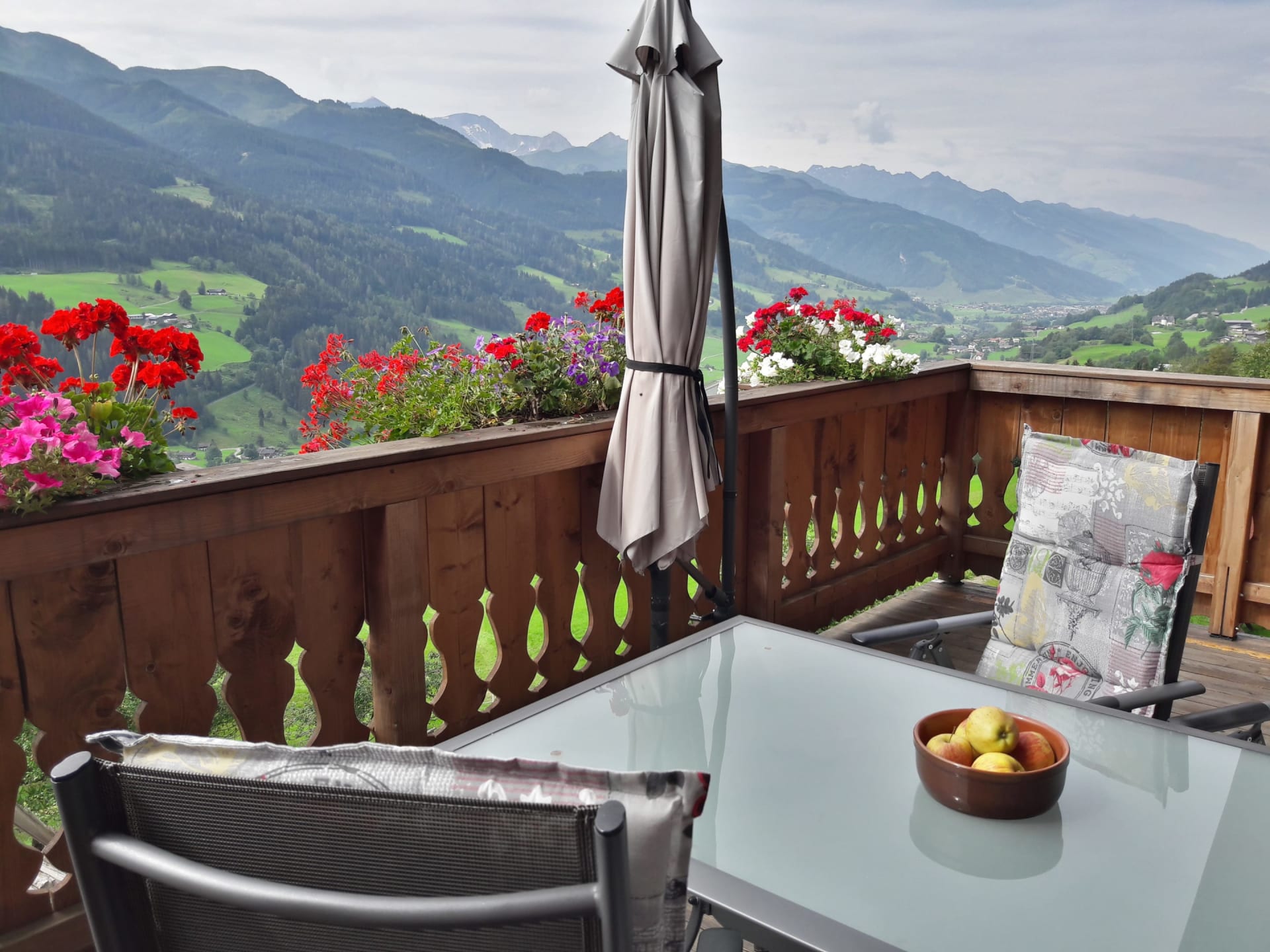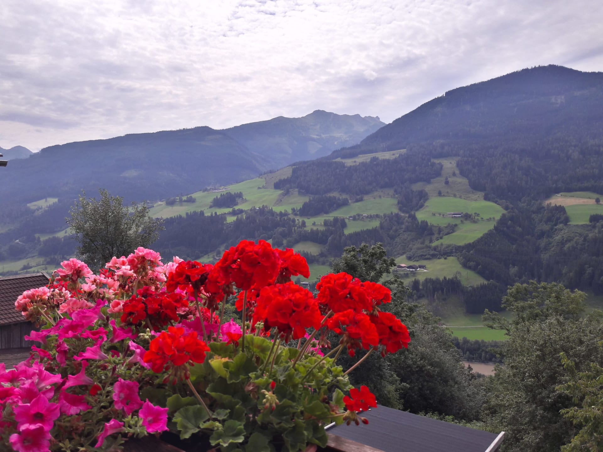 Schöne helle Ferienwohnung im Bauernhaus für 2-6 Personen. Freier Ausblick auf die Bergwelt der Hohen Tauern und das Salzachtal. Küche mit Essecke. Wohnzimmer mit Couch und Radio/TV, 1 Schlafzimmer mit Doppelbett, 1 Schlafzimmer mit 3-4 Einzelbetten, Du/WC, großer Balkon.