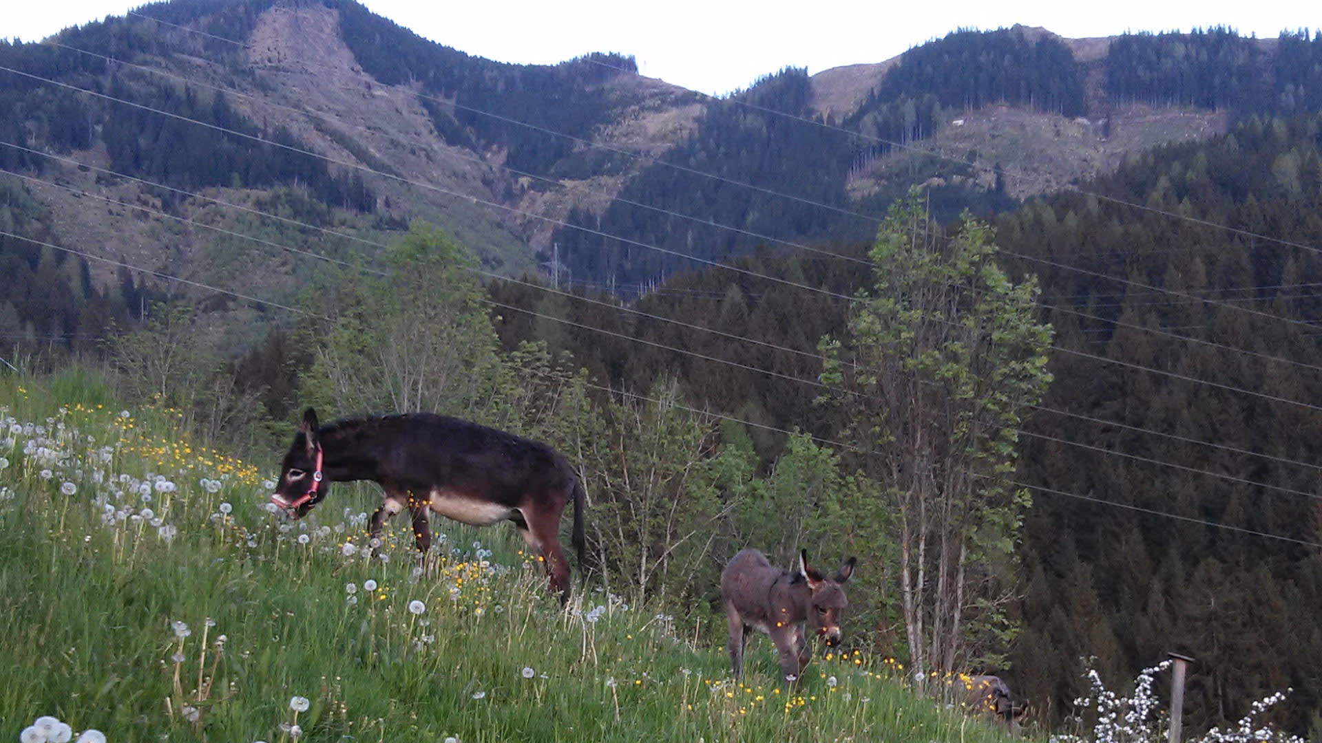 Im Winter sind unsere Mutterkühe mit ihren Kälbern bei uns im Stall außerdem leben bei uns einige Kleintiere sowie unsere Esel.