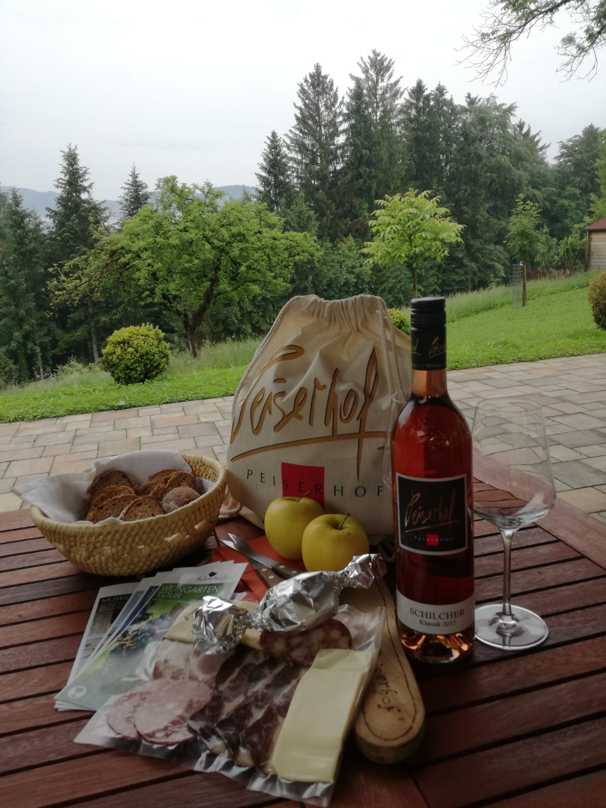 Das Kalorienzählen hat Urlaubspause und die Geschmacksnerven feiern mit unseren selbsterzeugten Produkten wie Marmeladen, Joghurt, Wurst und Geselchtes, Fruchtsäfte, frisches Gemüse vom eigenem Garten, Kürbiskernöl, Sekt, Steirischen Wein und Schnäpse ein Fest.