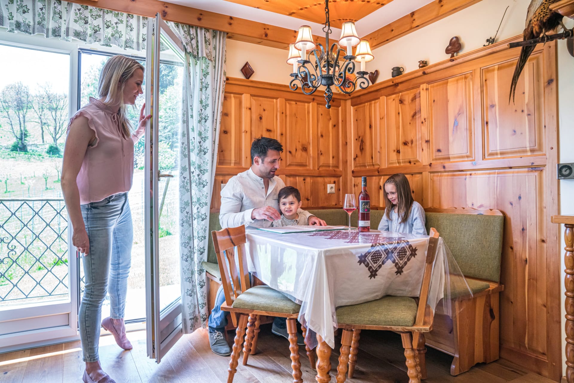 Teil der Weingarten-Suite sind außerdem eine Zirbenstube, eine komplett ausgestattete Kochnische, Sat-TV und Radio. Im Badezimmer finden Sie einen Kosmetikspiegel und einen Haartrockner.