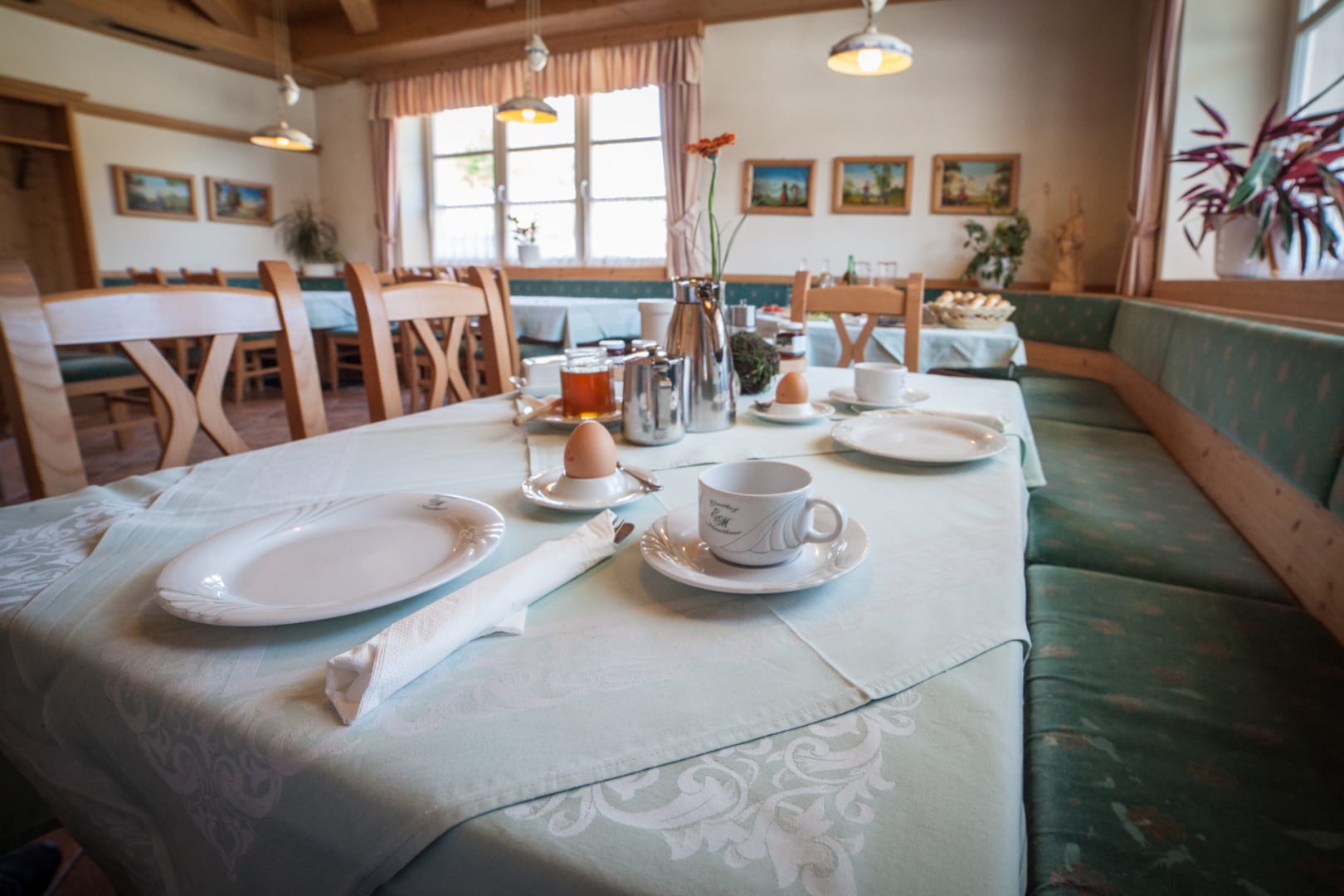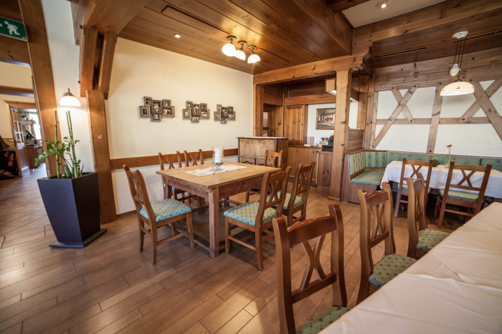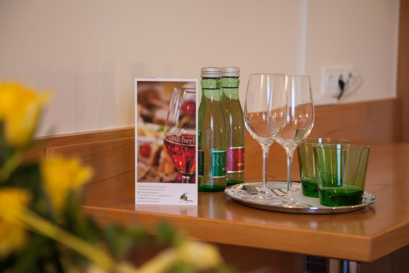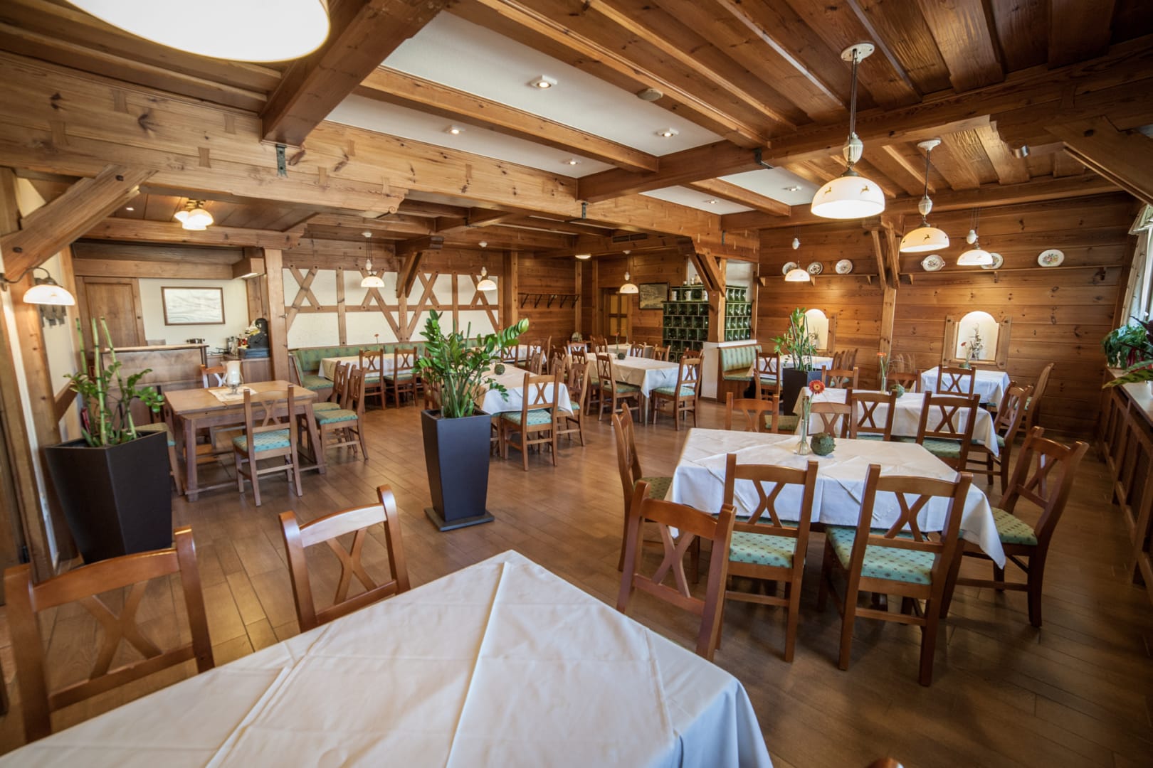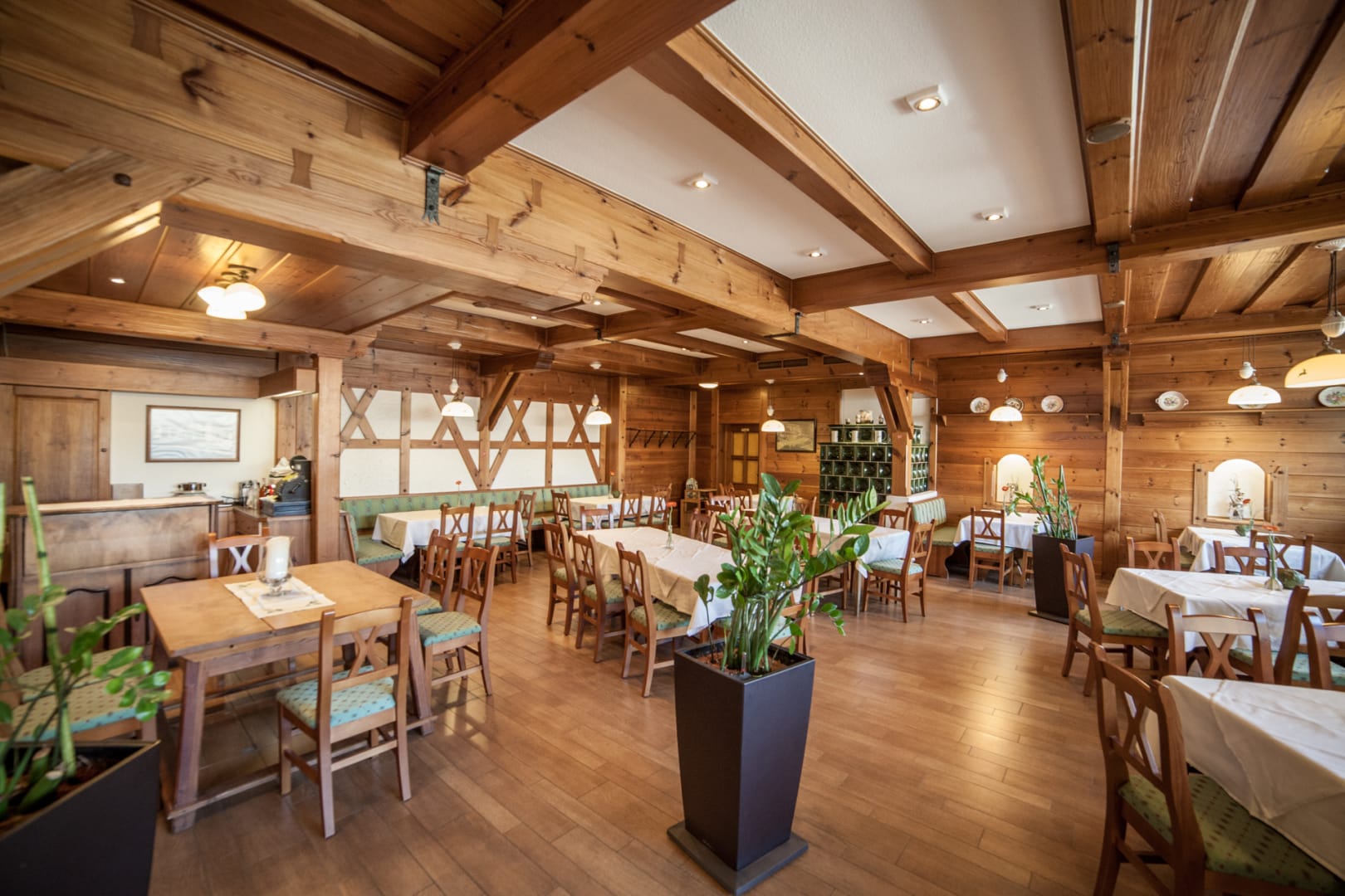 Am Marktplatz direkt gegenüber der mächtigen barocken Wallfahrtskirche Zum gegeißtelten Heiland auf der Wies gelegen, trägt das Haus seit Generationen zu Recht den Beinamen Kirchenwirt.