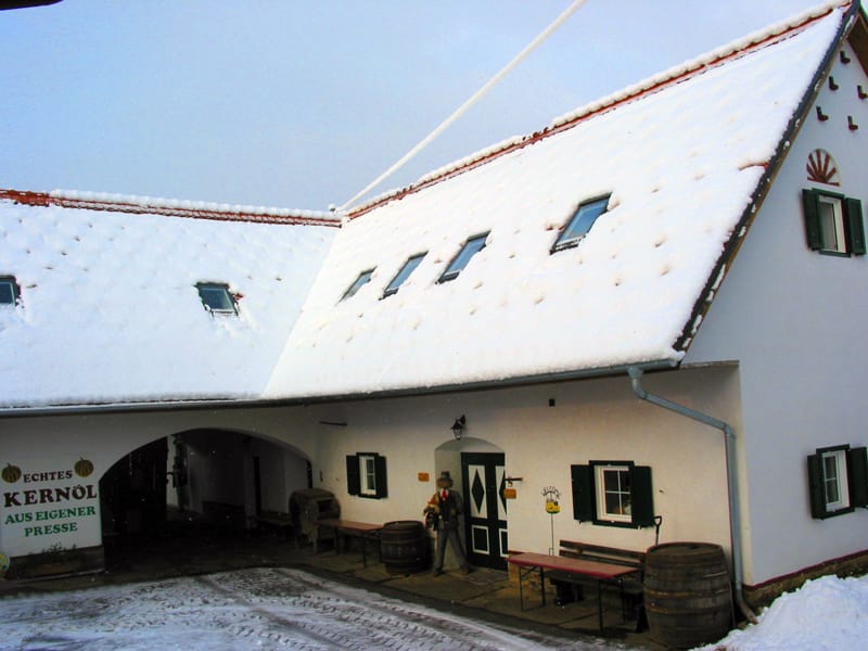 Hofeigene Ölpresse mit Schaupressen! Alle Produkte rund um den Kürbis genießen - Kürbiskernöl für die Gesundheit und Schönheit - Kernölkosmetik - Knabberkerne - Schilcherwanderung! Im über 130 Jahre alten, renovierten, im Erzherzog-Johann-Stil erbauten Bauernhaus kann eine reichhaltige Ausstellung von bäuerlichem Handwerk besichtigt werden. 35 Bäuerinnen und Bauern stellen hier ihre Arbeiten und Spezialitäten aus. Im gleichen Haus bieten 20 Bauern in einem wunderschön adaptierten, gewölbten Keller, dem Schilcherkeller, Schilcherweine, Liköre und Edelbrände aus der Region an. Und vielleicht zum Abschluss des gelungenen Tages ein Glaserl Schilcher aus unserem Schilcherkeller. - Der neue Tag beginnt mit einem ausreichenden Frühstücksbuffet.