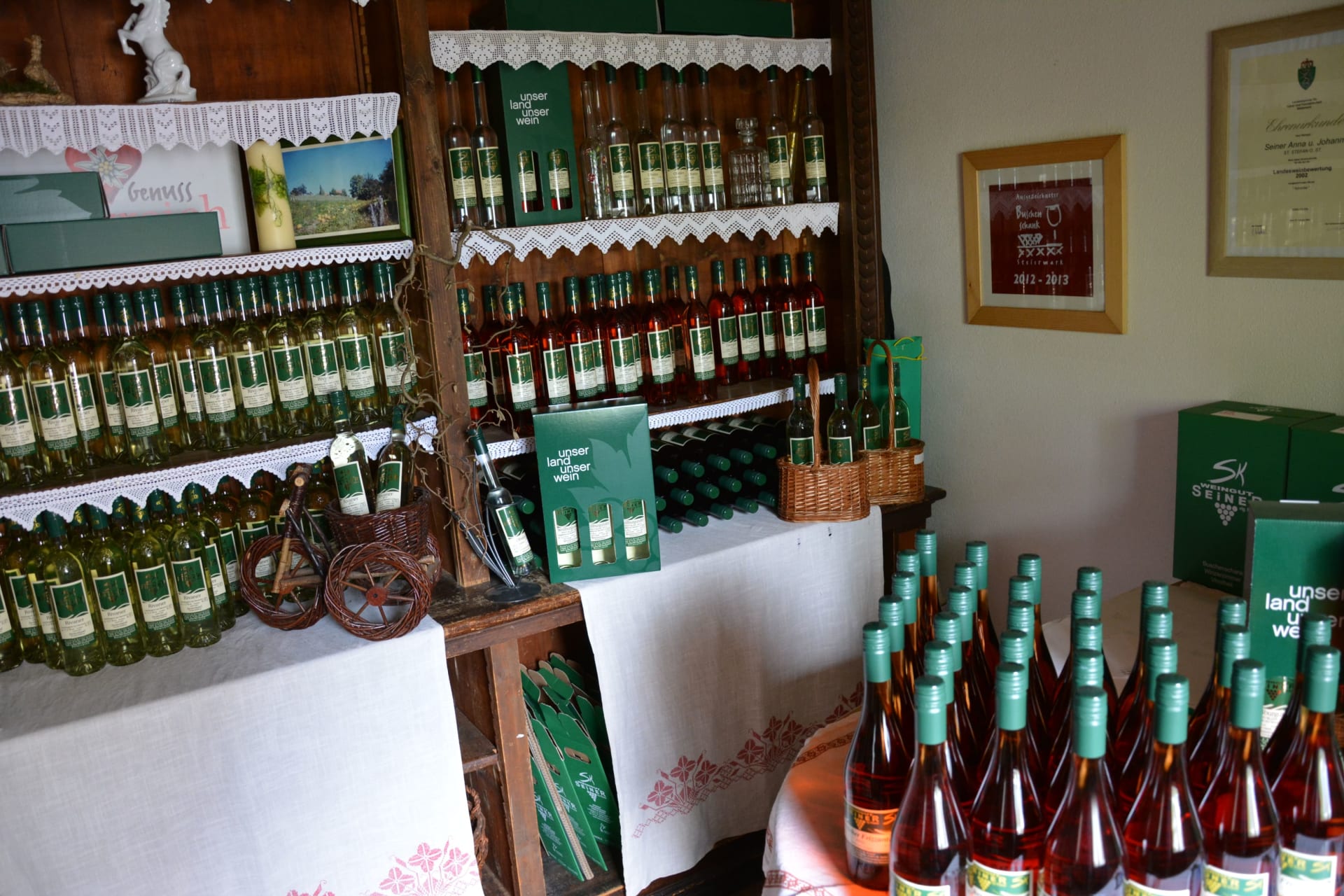 Im Verkaufsraum bieten wir verschiedene selbstgemachte Schilcherspezialitäten. Wir produzieren Qualitätsweine der Sorten Schilcher, Weißburgunder, Morillon, Zweigelt und Rivaner.