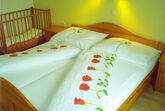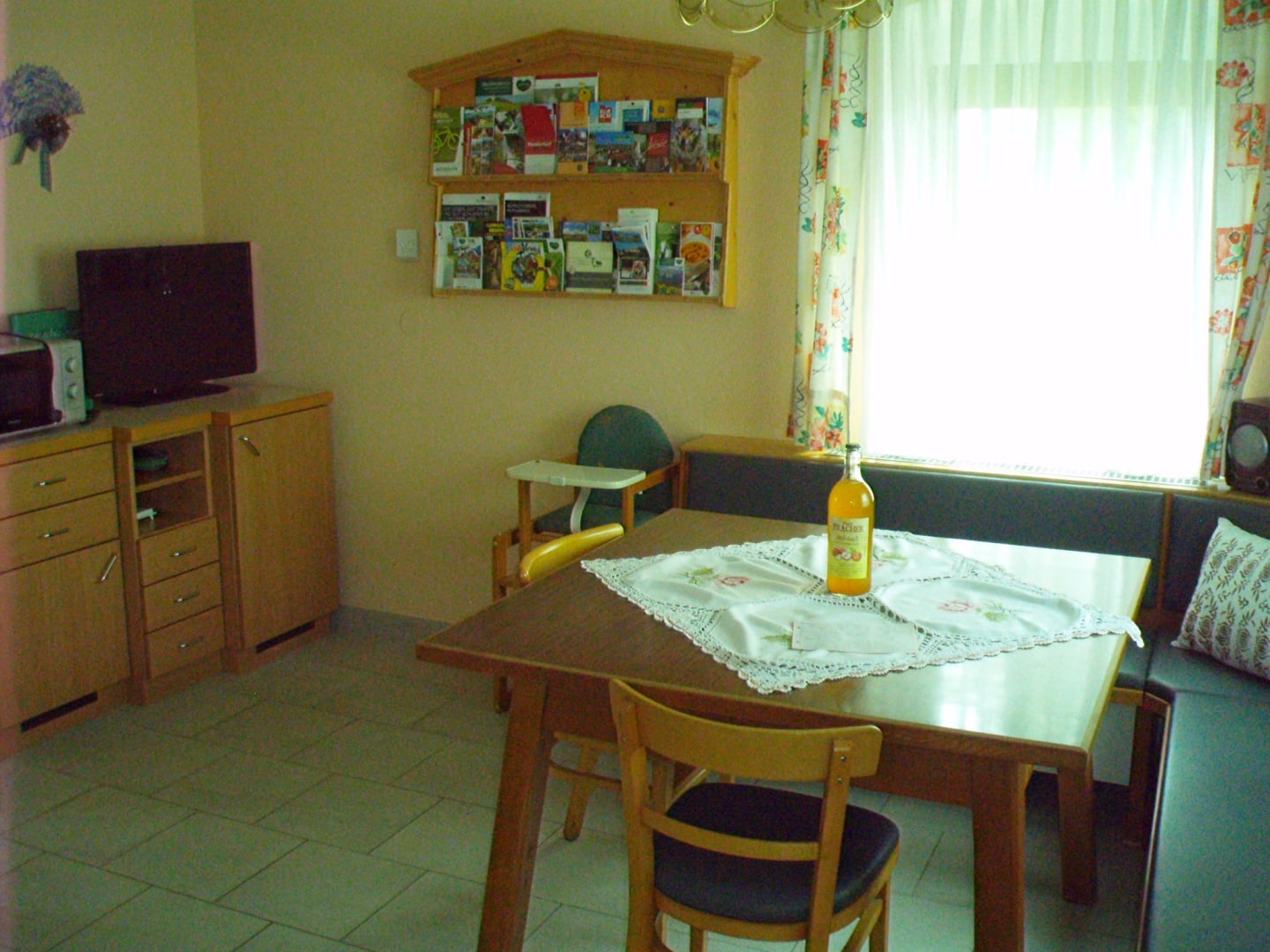 Charmantes Ferienhaus mit Bergblick & Obstgarten (60m²) Unser Nichtraucher-Ferienhaus, ein charmantes Altbau-Juwel von 60m², heißt Sie und bis zu 5 Personen herzlich willkommen. Idyllisch eingebettet in einen blühenden Obstgarten, umgeben von purer Natur, genießen Sie hier absolute Ruhe und einen malerischen Blick auf die umliegende Berglandschaft. Trotz der idyllischen Lage erreichen Sie das Ortszentrum bequem in nur einem Kilometer. Das Haus verfügt über zwei gemütliche Schlafzimmer wobei eines mit Doppelbett das andere mit zwei Einzelbetten ausgestattet ist. Eine zusätzliche ausziehbare Schlafcouch in einem Zimmer sowie ein Gitterbett (auf Anfrage) bieten flexible Schlafmöglichkeiten für Familien und Gruppen. Das Herzstück bildet die geräumige Wohnküche, die zum gemeinsamen Kochen und Verweilen einlädt. Sie ist voll ausgestattet mit einem 4-Plattenherd, Backofen, Mikrowelle, Kaffeemaschine, Wasserkocher, Kühlschrank sowie allen notwendigen Küchenutensilien. Ein großer Esstisch und ein gemütlicher Sitzbereich mit Fernseher und Radio sorgen für entspannte Stunden. Selbstverständlich steht Ihnen kostenfreies WLAN zur Verfügung. Das Badezimmer ist mit einer Dusche, WC und einem Haartrockner ausgestattet. Frische Handtücher sind für Ihren Komfort vorhanden. Genießen Sie die Sonne und frische Luft auf Ihrer privaten Terrasse im Nebengebäude oder entspannen Sie im weitläufigen Garten. Für behagliche Wärme sorgt eine effiziente Heizung. Ihre geliebten Haustiere sind nach Absprache ebenfalls herzlich willkommen. Pro Tag verrechnen wir EURO 14,-.